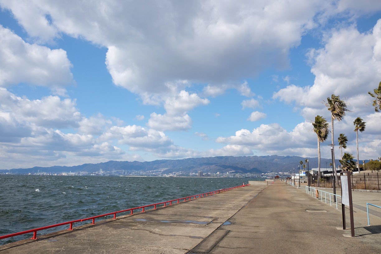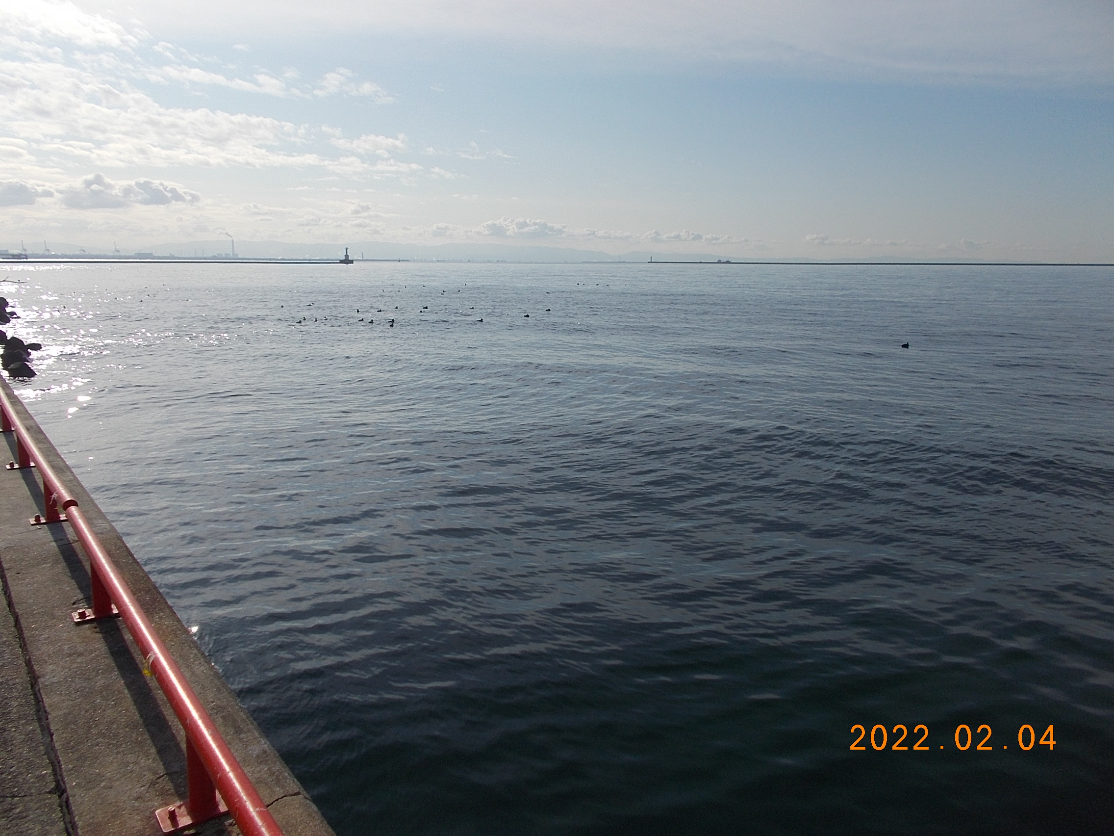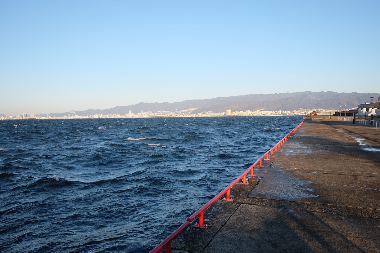 この週末は大変寒く海も大荒れでしたが、今日は打って変わってとても穏やかな鳴尾浜です。気温は低いのですが風は無く、よく晴れ渡っています。