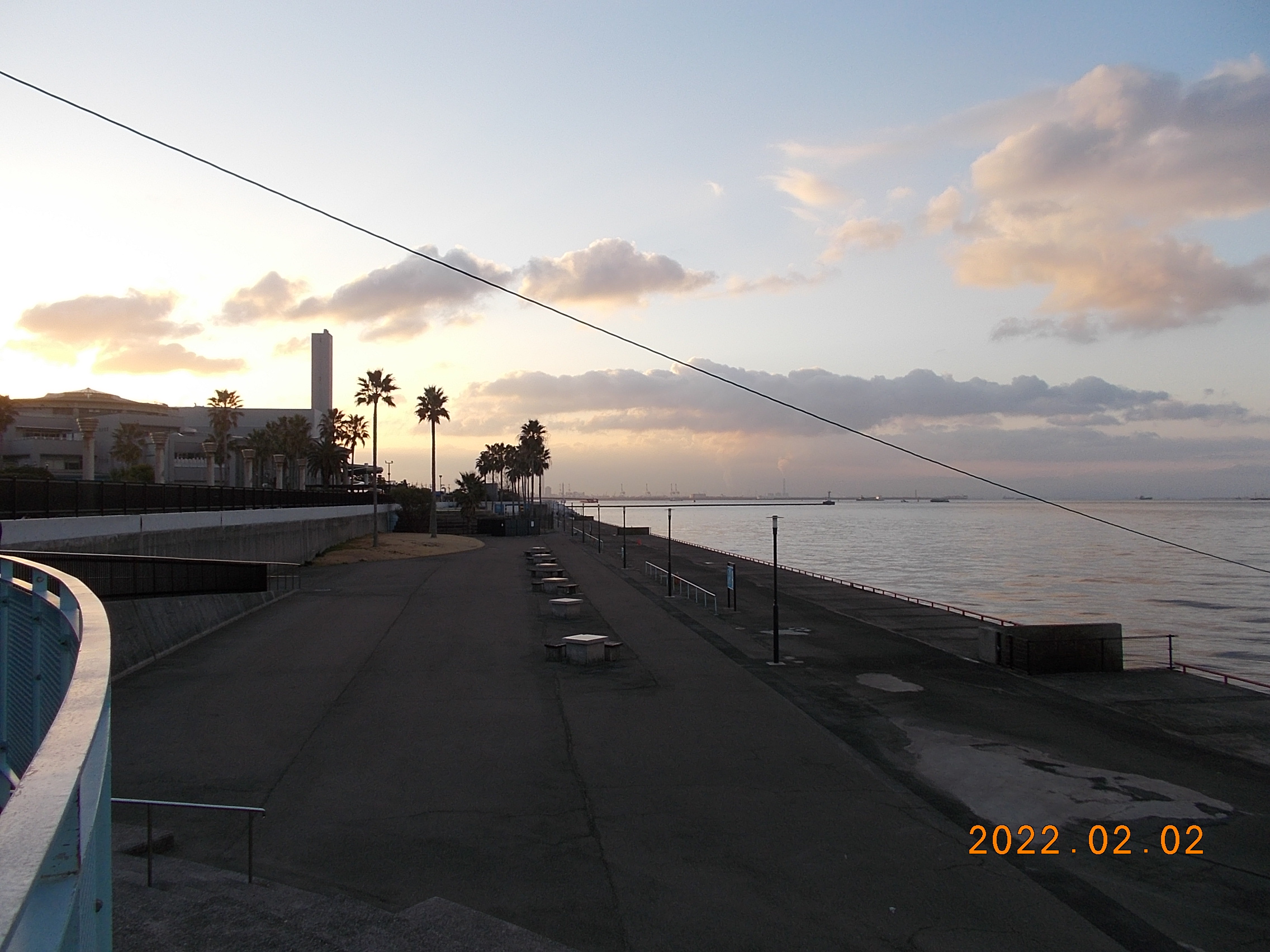 開園時、風もなく波も穏やかで、よく晴れた気持の良い朝の鳴尾浜です。