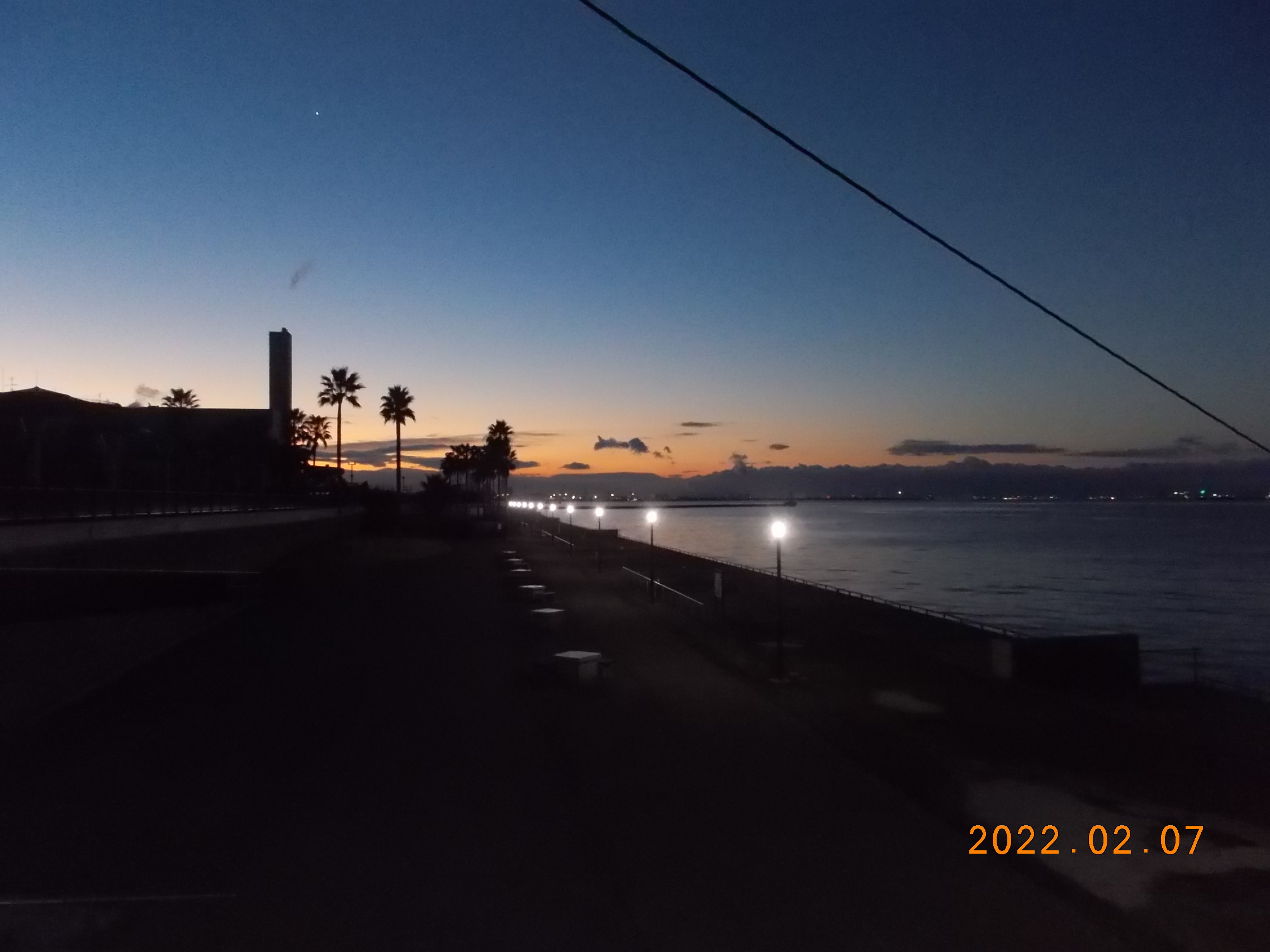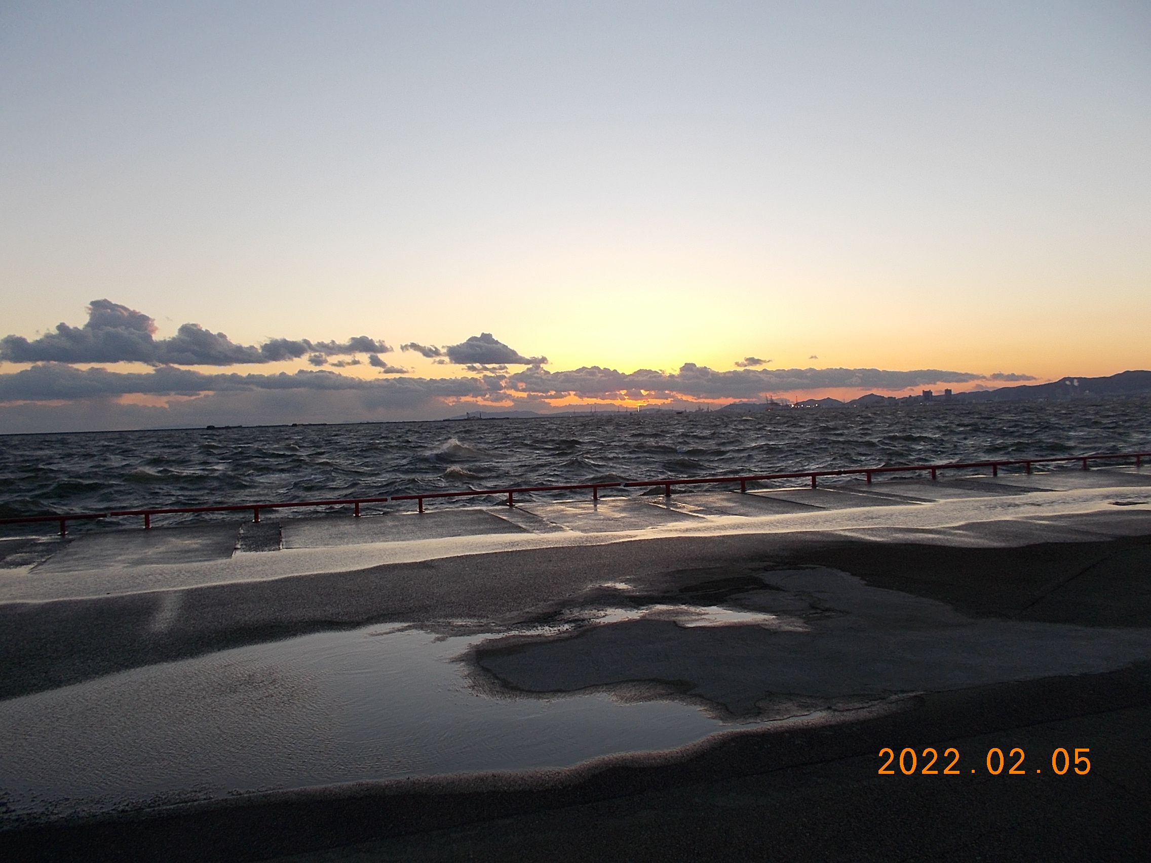 午後5時半日没、風が止んで久しぶりの静かな夕暮れ。釣り人お一人のみ。