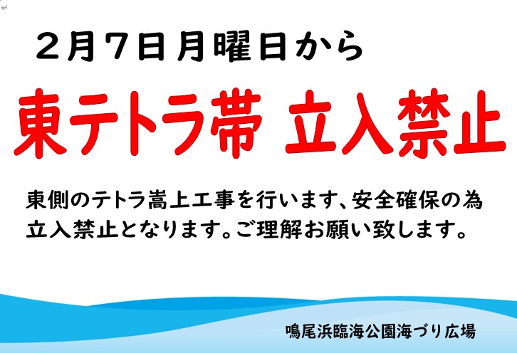 【 明日2月7日より東側テトラ帯立入禁止 】
