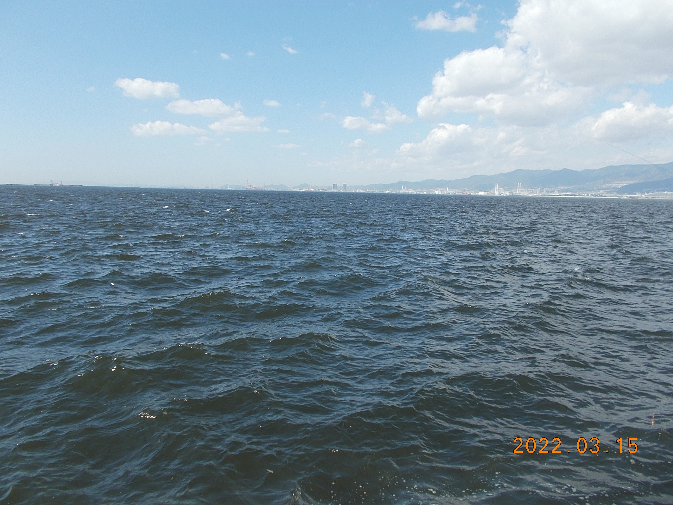 11時頃から風が強くなり始め、それに伴い波も立って来ました。所々で白波も見えます。向かい風のため大変釣りづらい状況です。