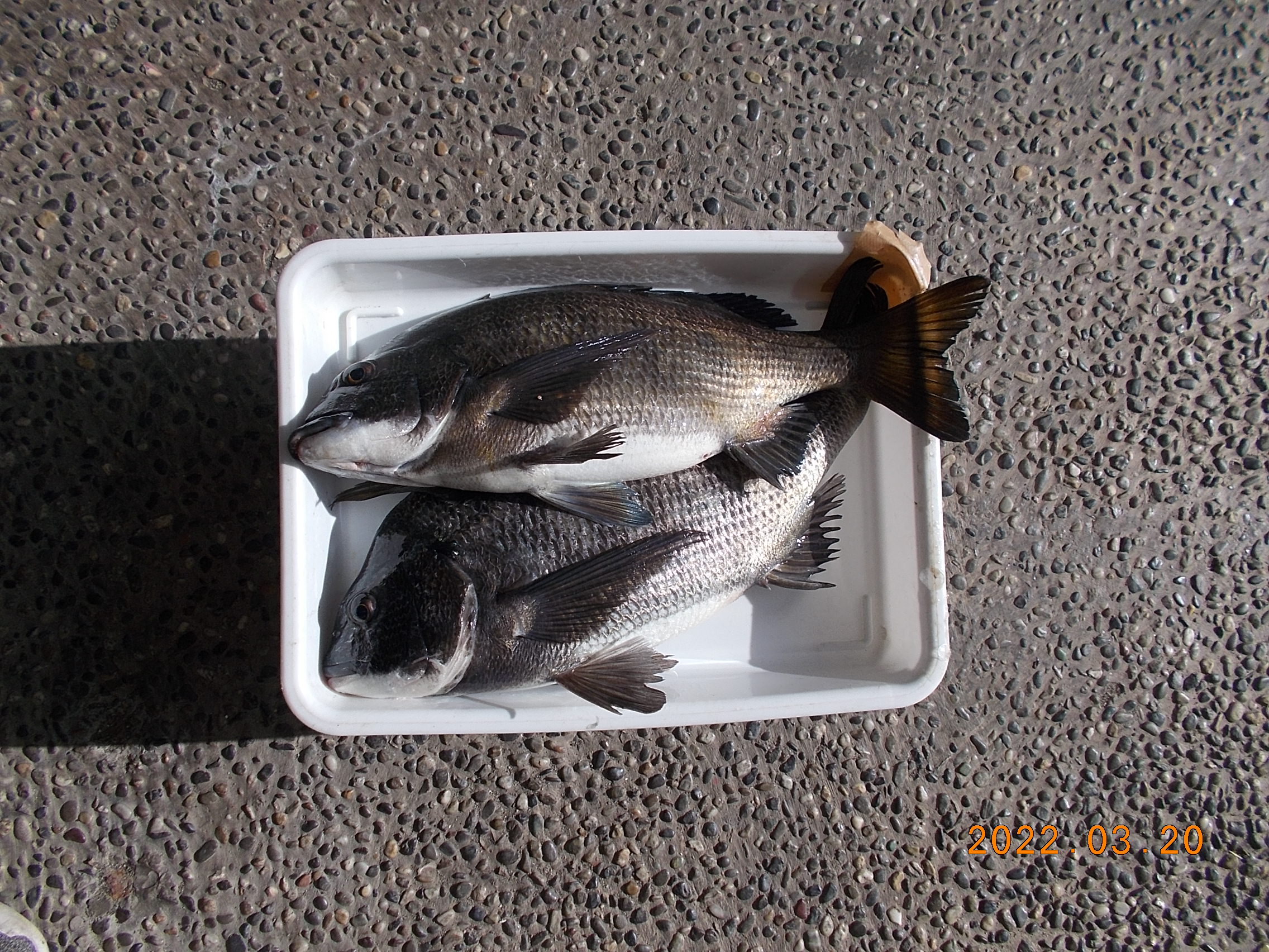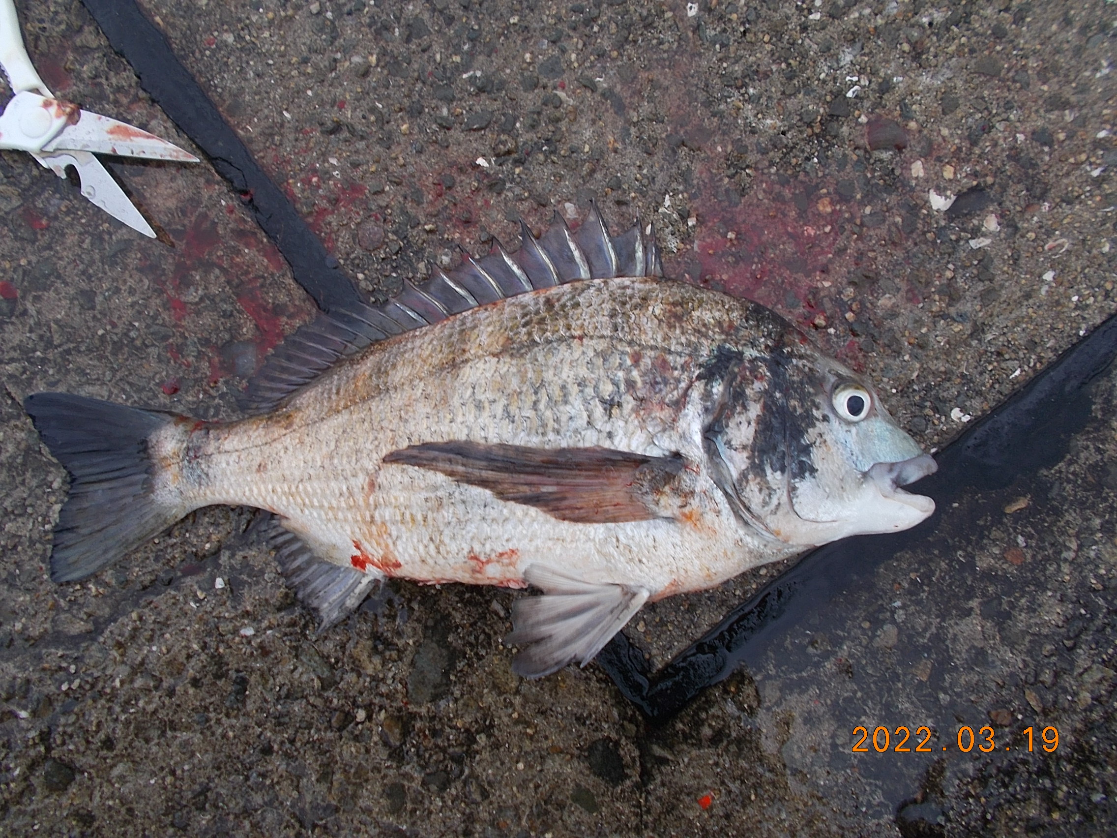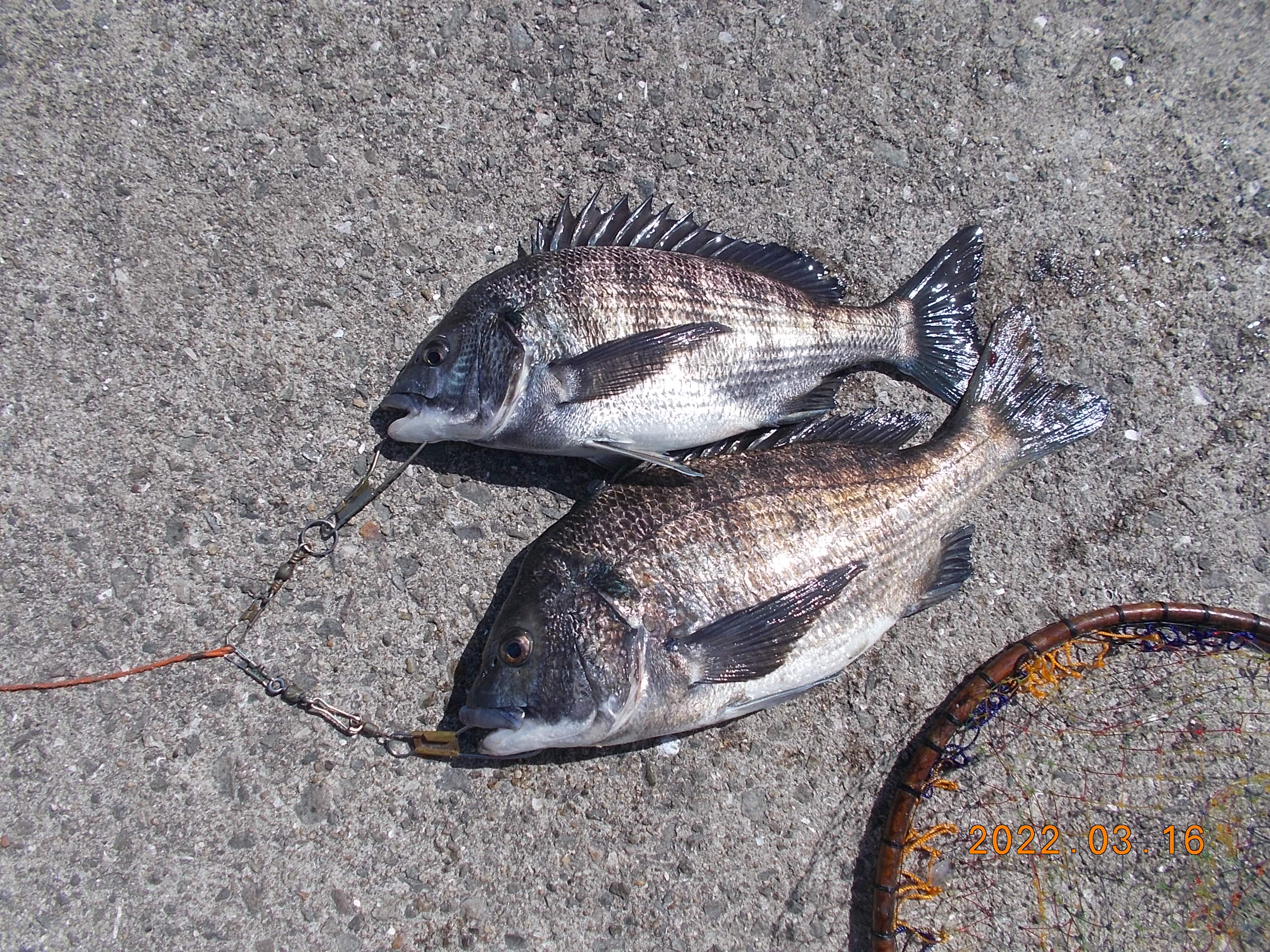 午後6時過ぎ日の入りとなりました。風は止みましたが陽が落ちるとまだ肌寒いです。午後の釣果で確認されたのは上記のチヌ1枚でした。
