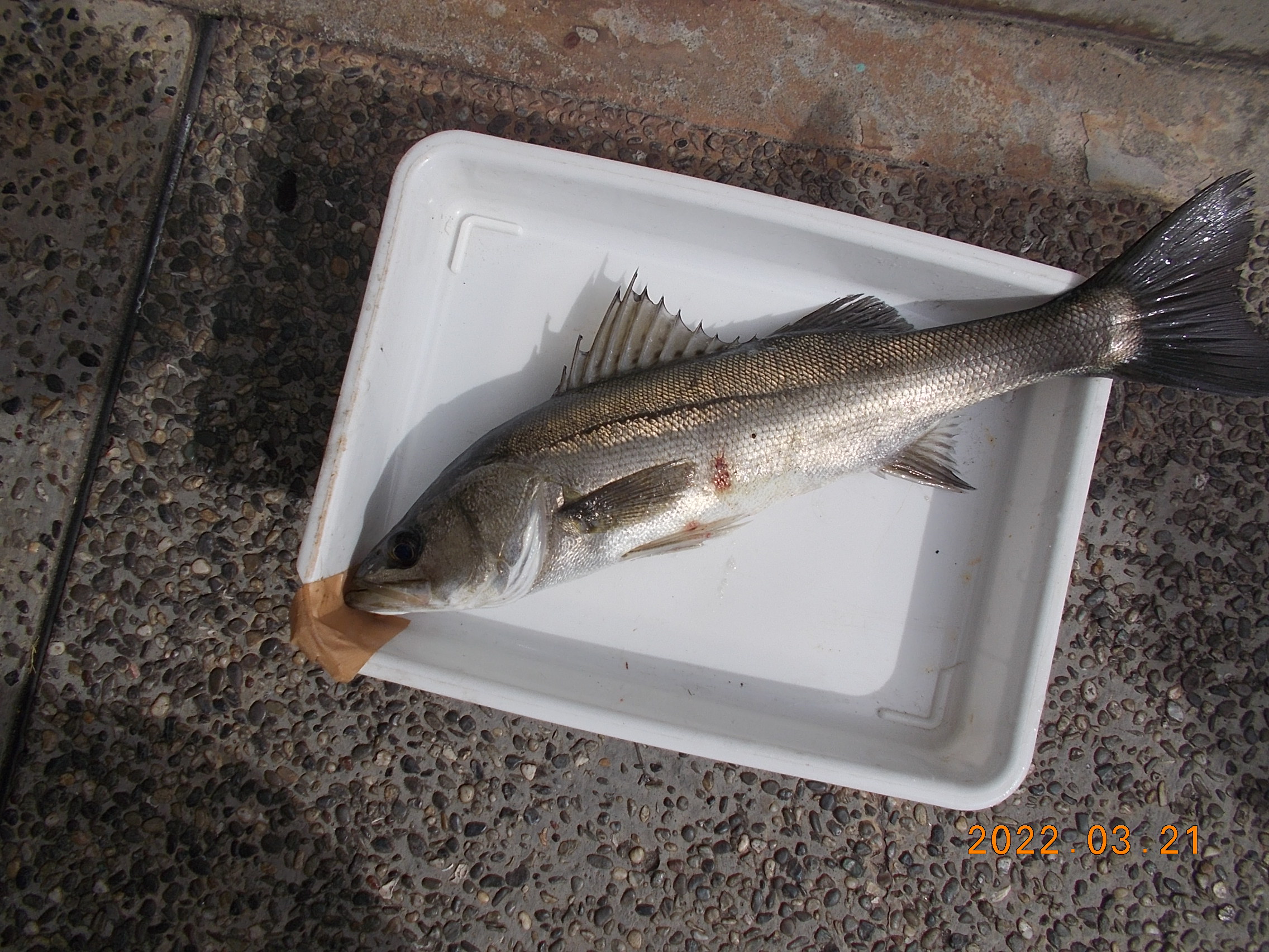 13時前頃にスズキ 61cm が上がったと報告を受けました。リリース後だったので写真はありませんが、ご本人様のスマホの写真を見せていただきましたら立派なスズキでした。場所は東側でシラサエビを使ったエビ撒き釣り、タナは底を少し切ったあたりとの事です。久しぶりの釣果にホッとします。