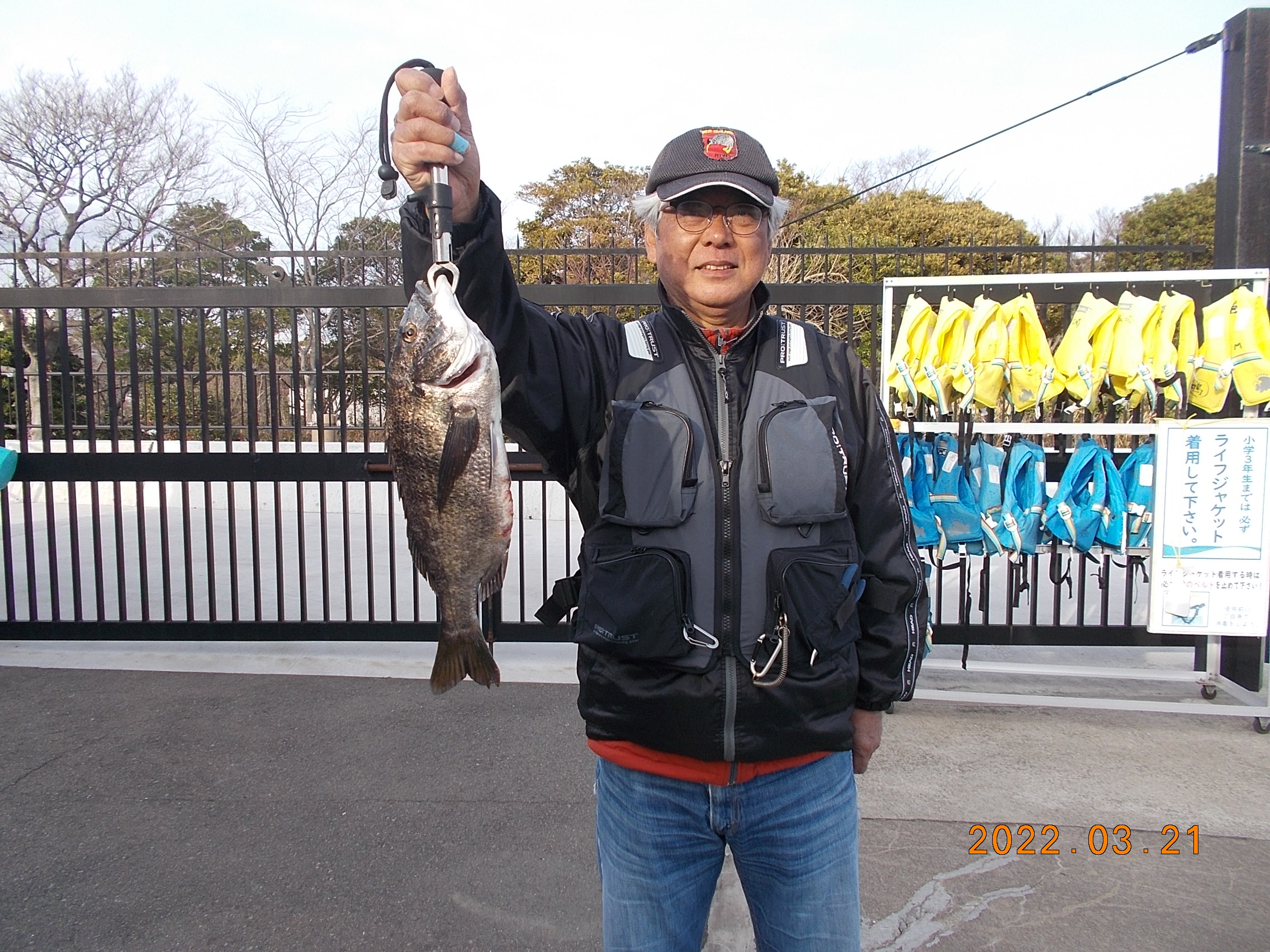 今日は、陽射しもあり穏やかな1日になりそうです。そんな陽気に誘われてか?今日はお客様が多く、釣りを楽しまれています。8時30分頃に、東側でエビ撒き釣りの方が42・44cmのチヌを上げられていました。10時前には47.5cmのチヌ(月間大物賞更新)が上がりました。