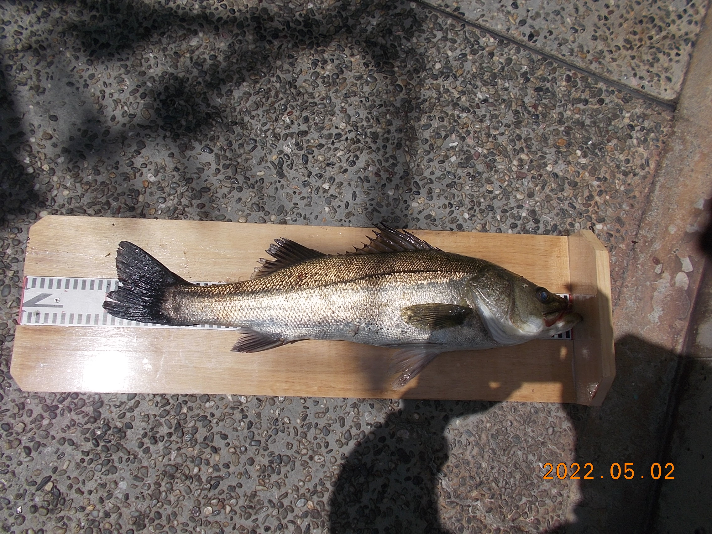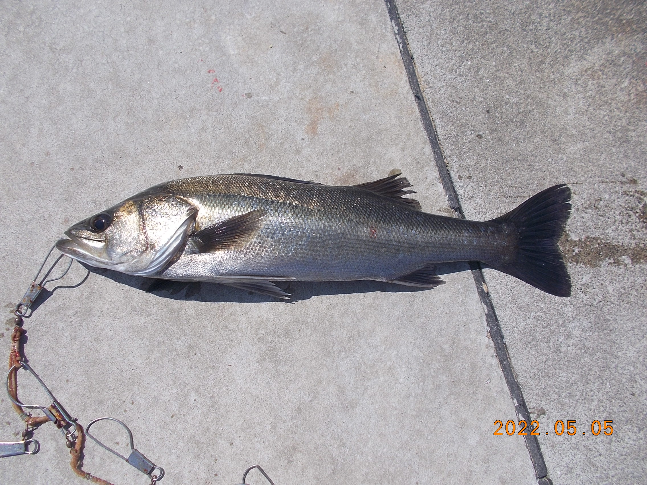 午後はサビキなども不振でしたが、午後6時前に餌シラサでハネ48cmが釣れました。その後同じ方がよく似たサイズを追加。ズボ釣り。