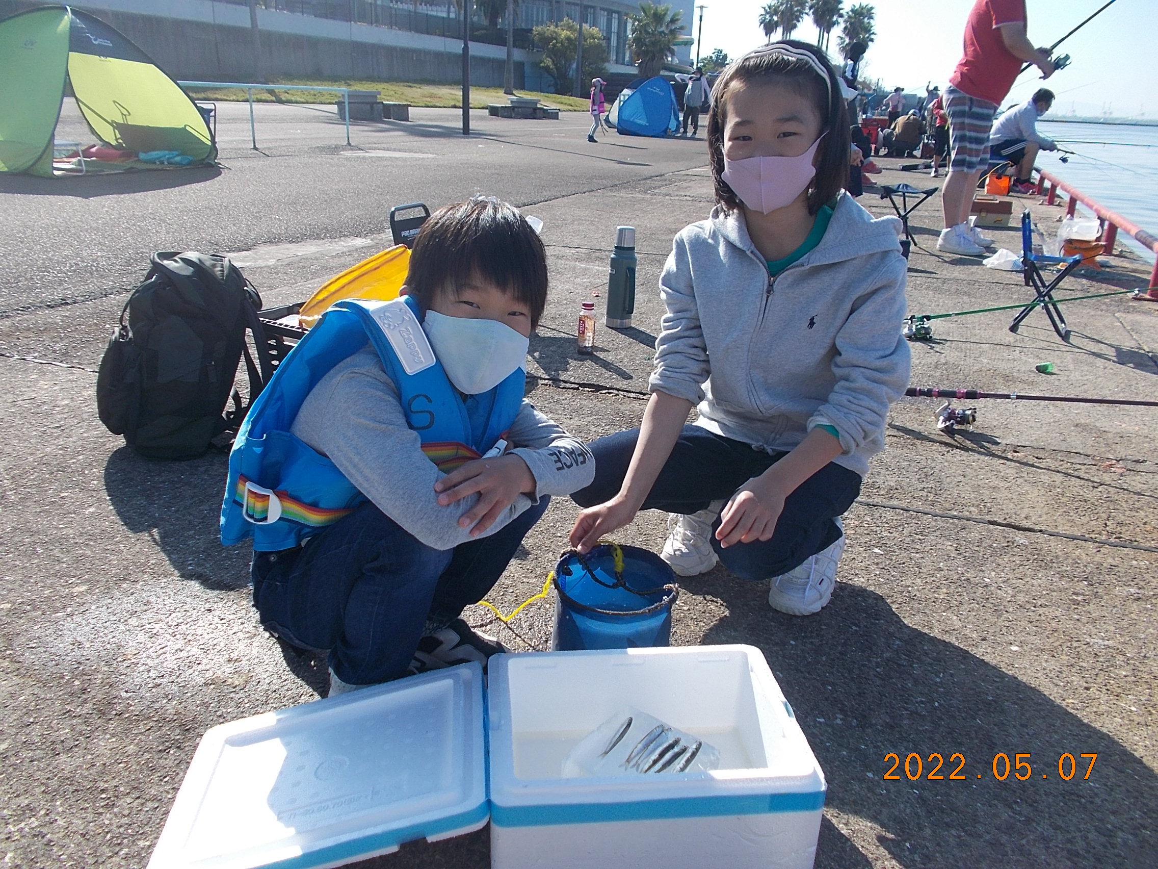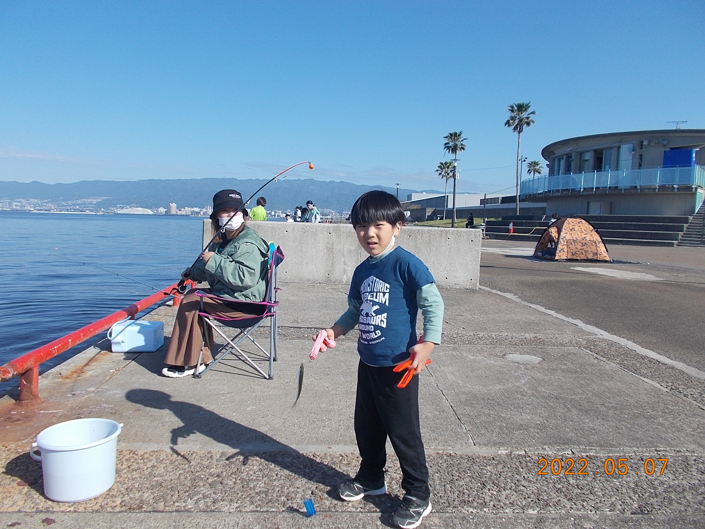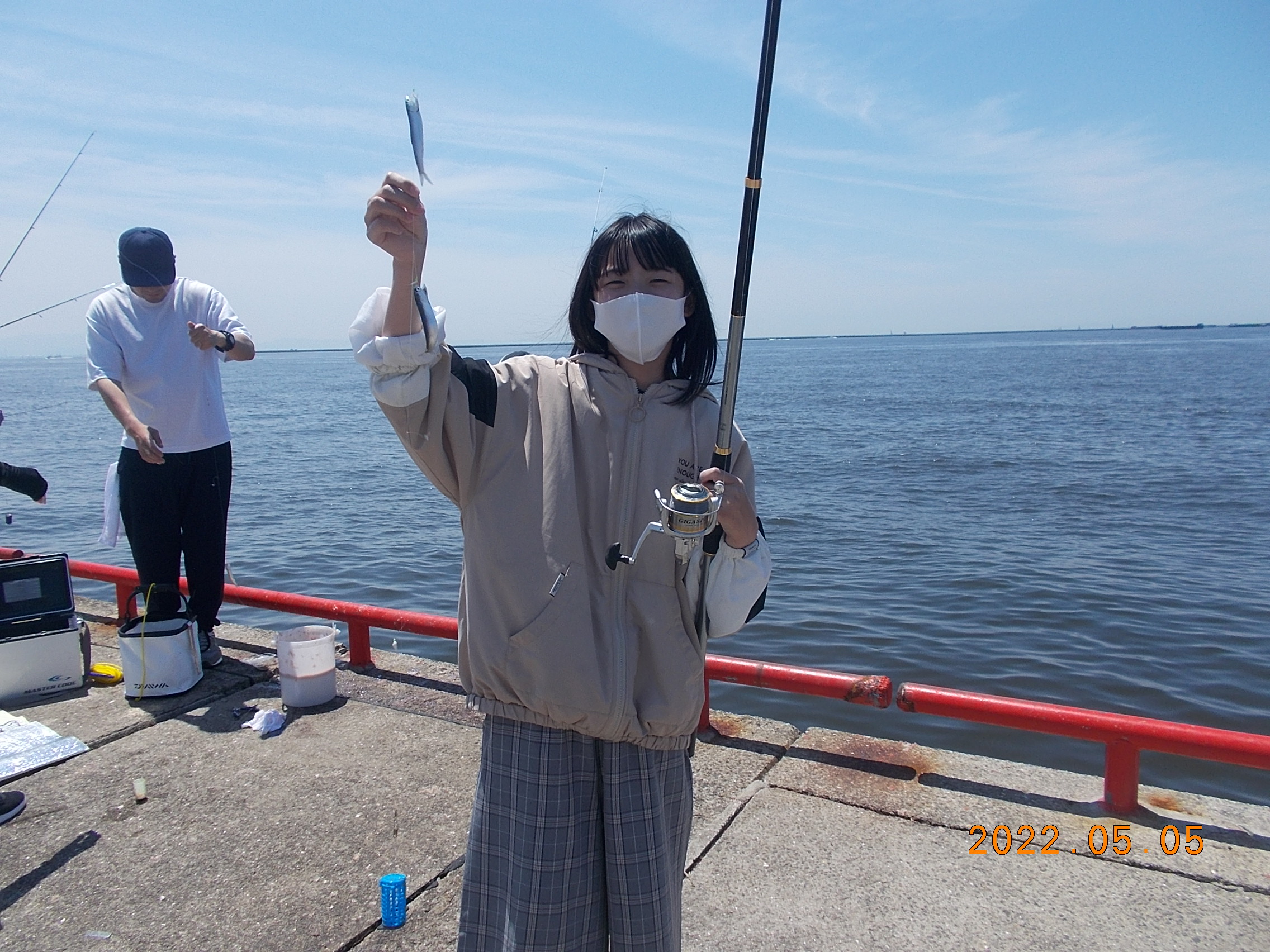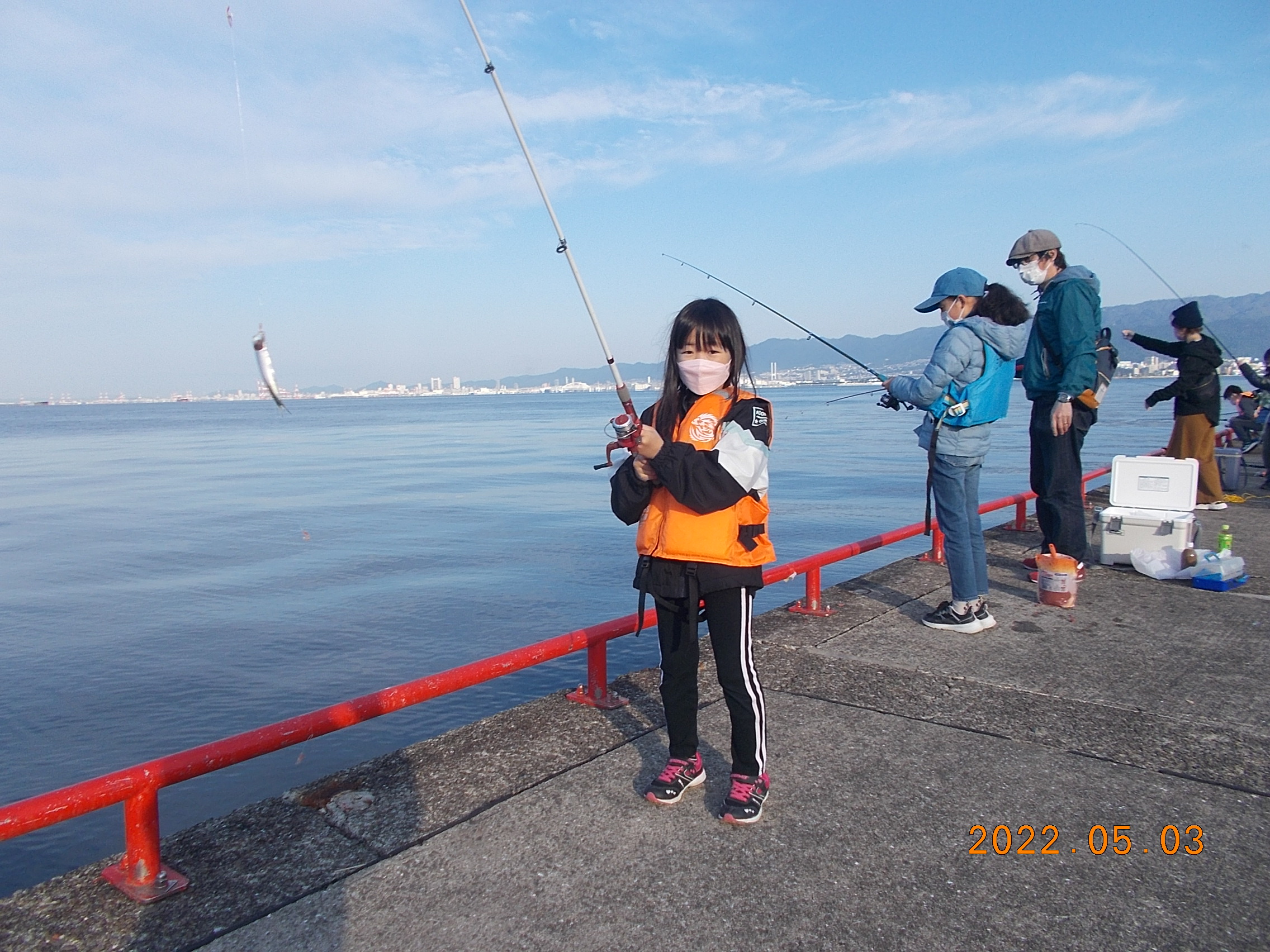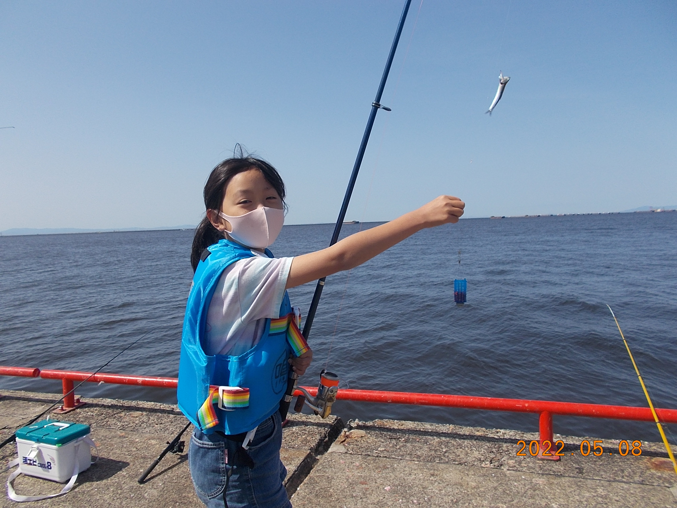 開園時、弱い北東からの風、波静か。9時現在、気温が上がり初夏を思わせるような気候になっております、日中に掛けてもう少し気温も上がりますので暑さ対策をしてお越しください。只今、沢山のご家族の皆様が釣をされています朝からカタクチイワシがポツリポツリ、サッパがたまに混じる程度で釣れていますが昨日より釣果の方は良くありません家族で10匹前後の釣果になっております。午後12時過ぎ現在、南西の風3m/s、向い風で釣りにくい状況ですが涼しい風が吹いています釣果の方はカタクチイワシが切れ目なく釣れて子供さんは大喜びしています。
