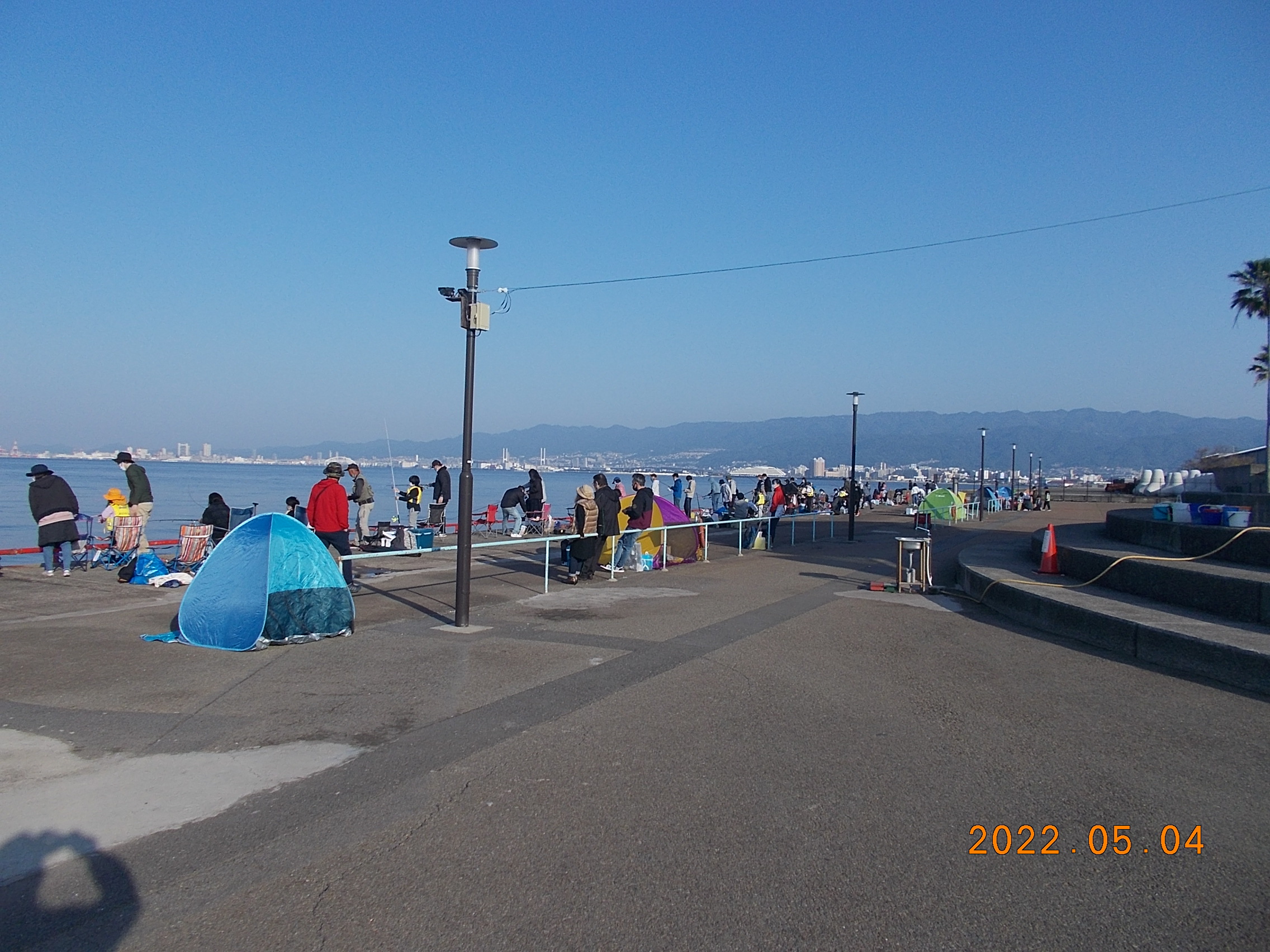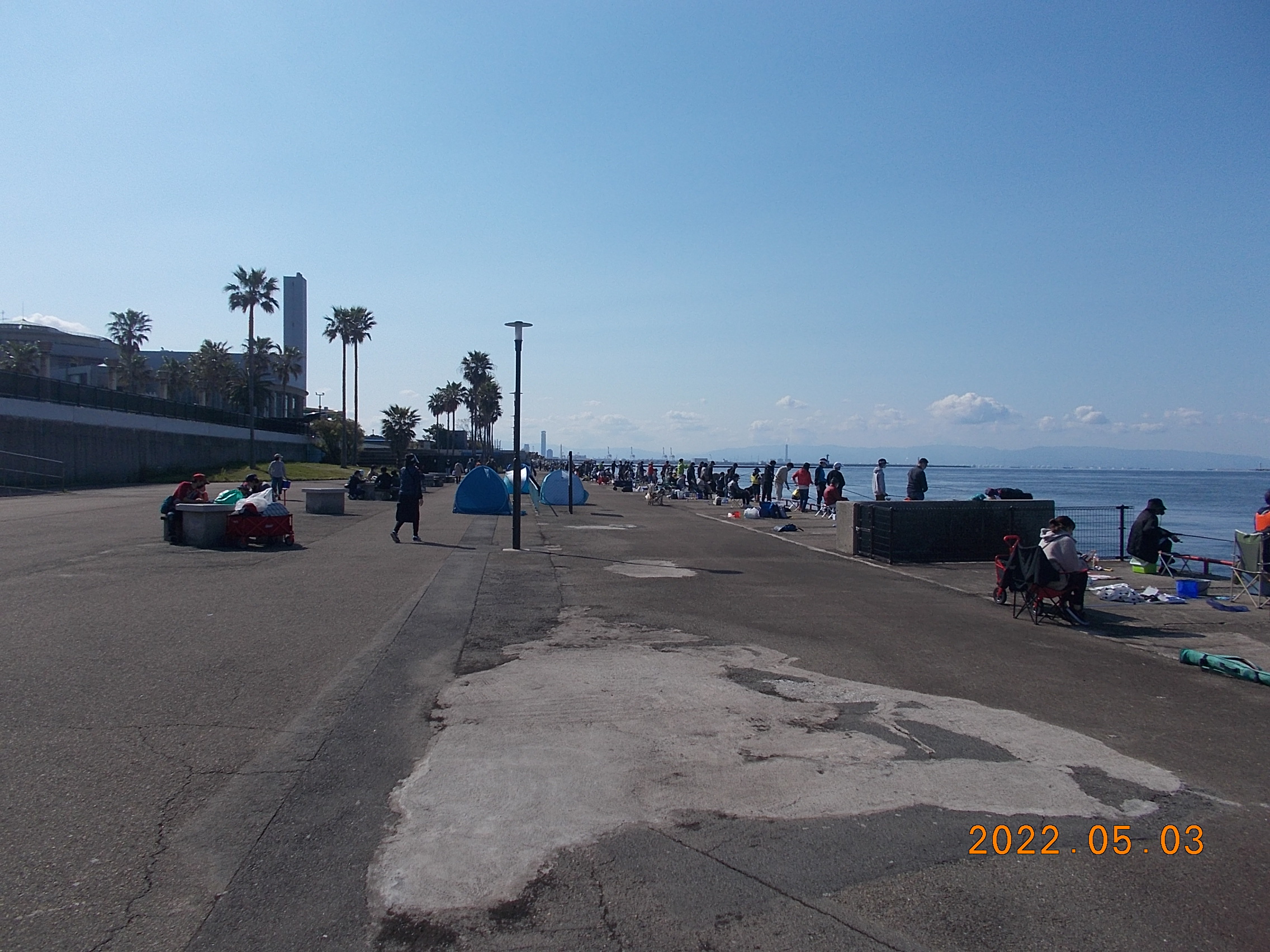 15時過ぎ、気温が上がり半袖でも大丈夫の鳴尾浜です。只今、100人を超えています。今日は土曜日と言う事で家族連れが多いようです。皆さん楽しそうに釣りを楽しんでいらっしゃいます。