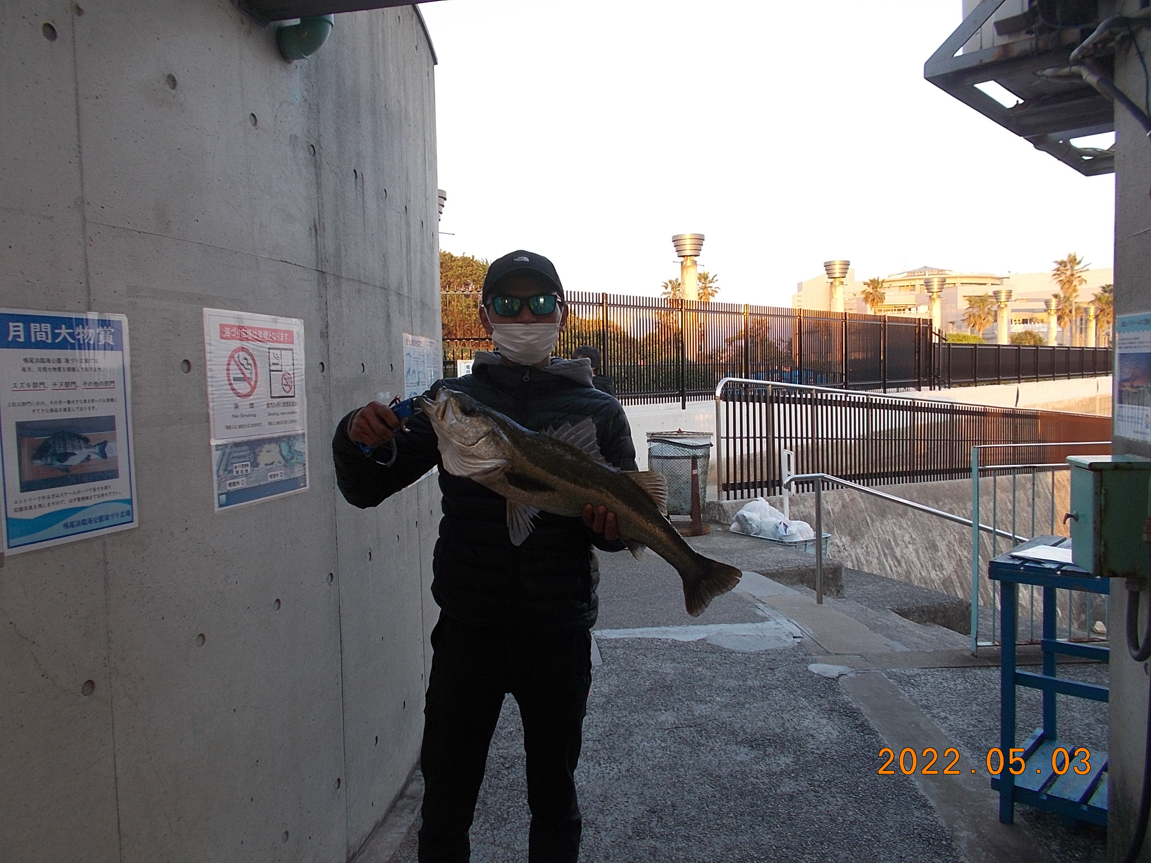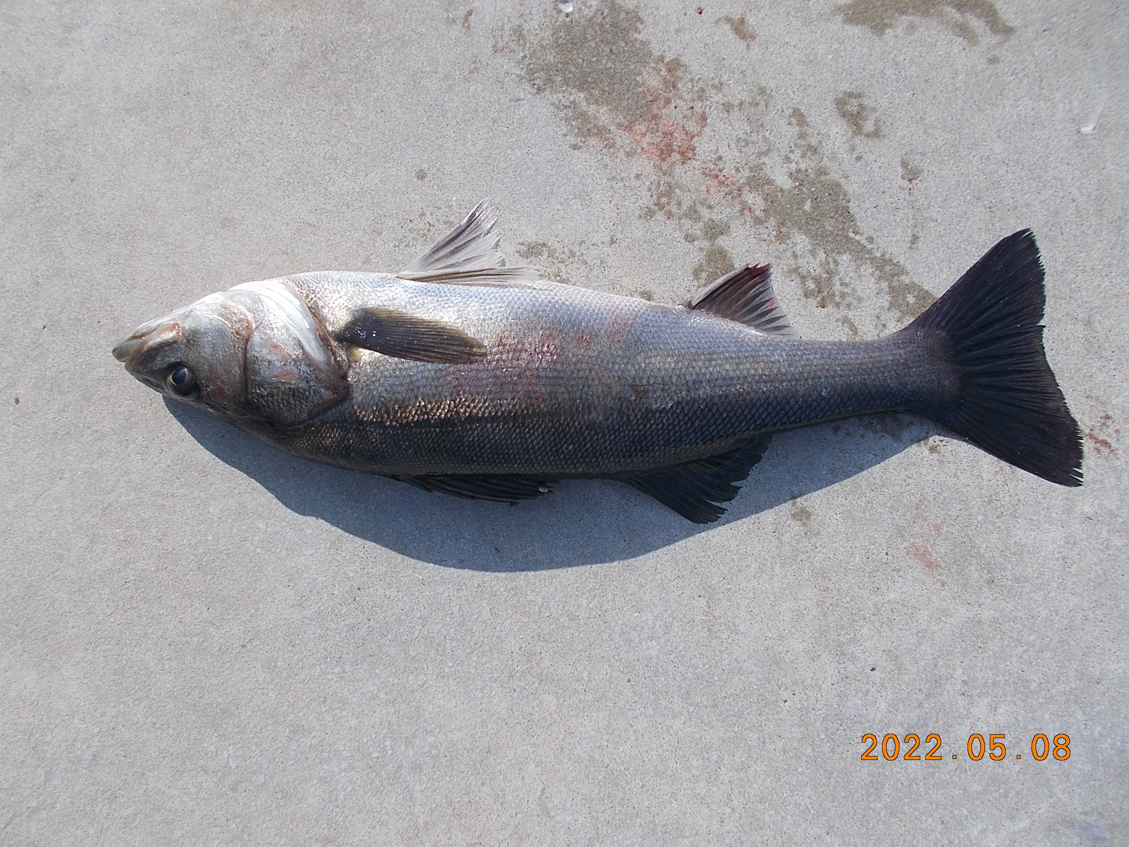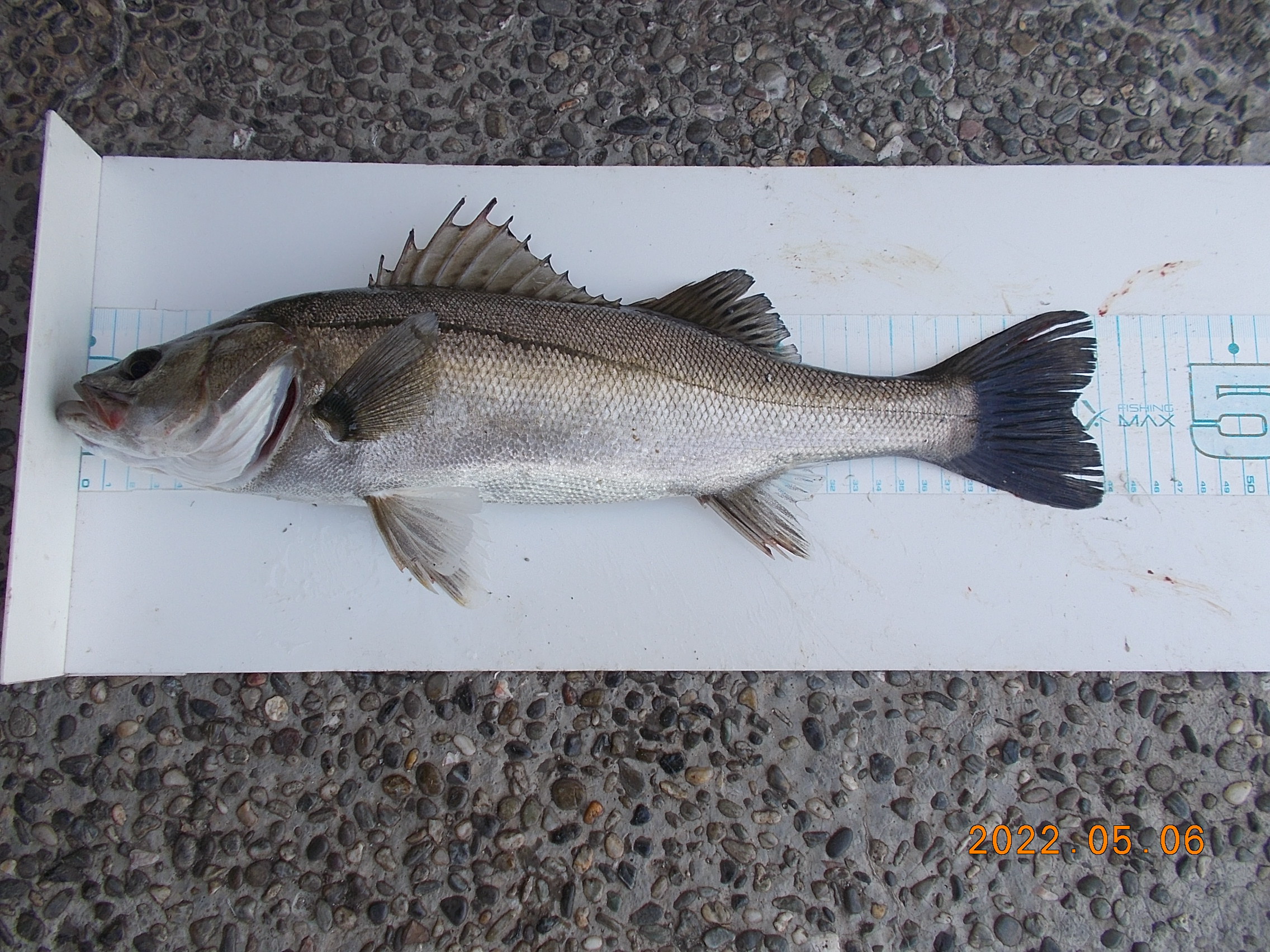 AM7;30頃にベテランさんがハネ57cmを上げられました。シラサエビを使ったエビ撒き釣りです。その後も3本の追加があり、一番大きい魚で69cmの立派なスズキでした。