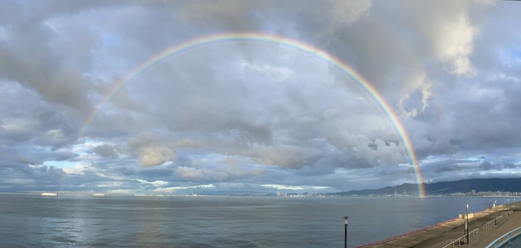 10時を過ぎた頃から、急に風が強くなって来ました、その風に伴い海も荒れています。六甲山上空には大きな雲が発生しており、急な雨があるかもしれませんね。