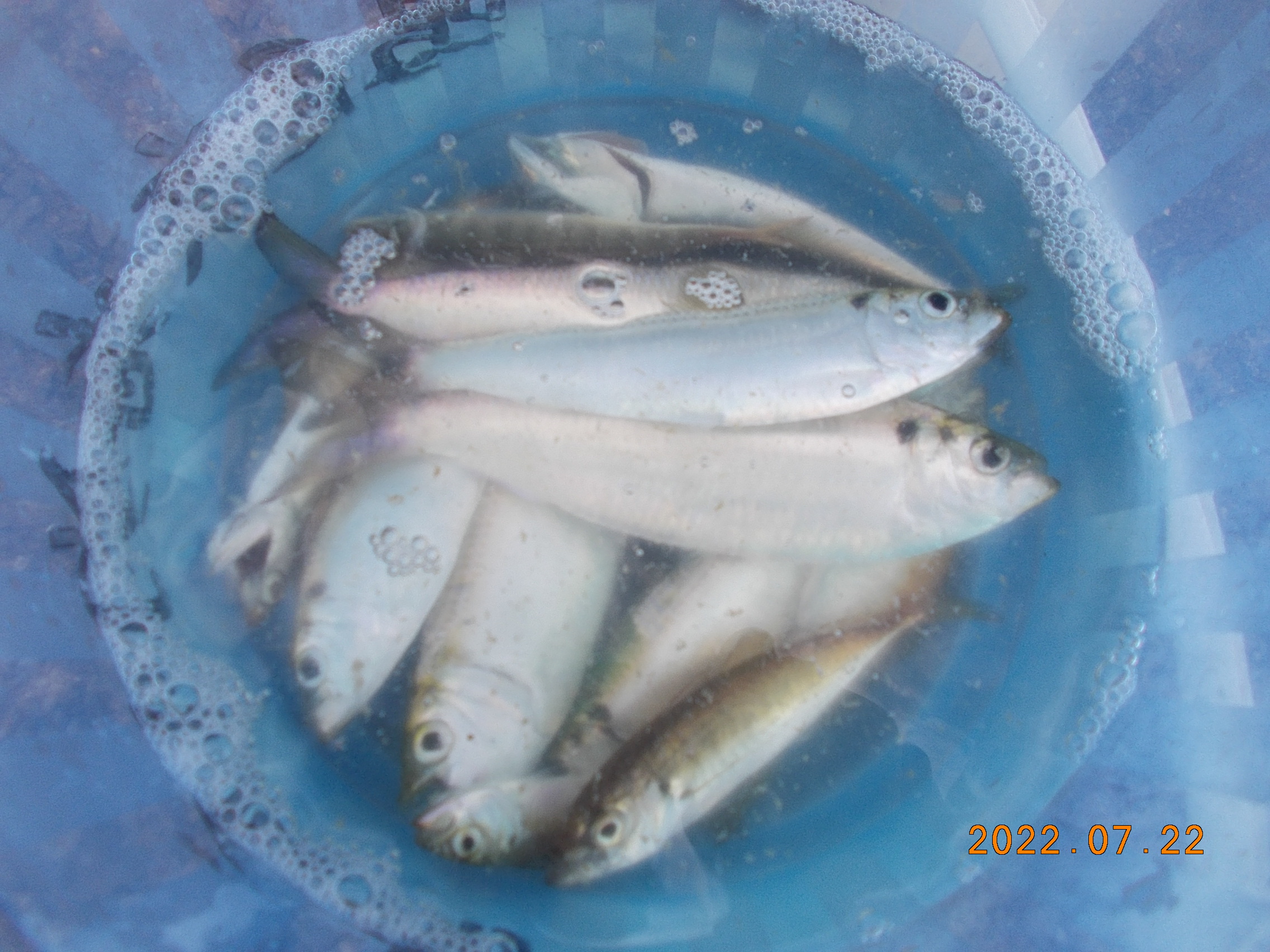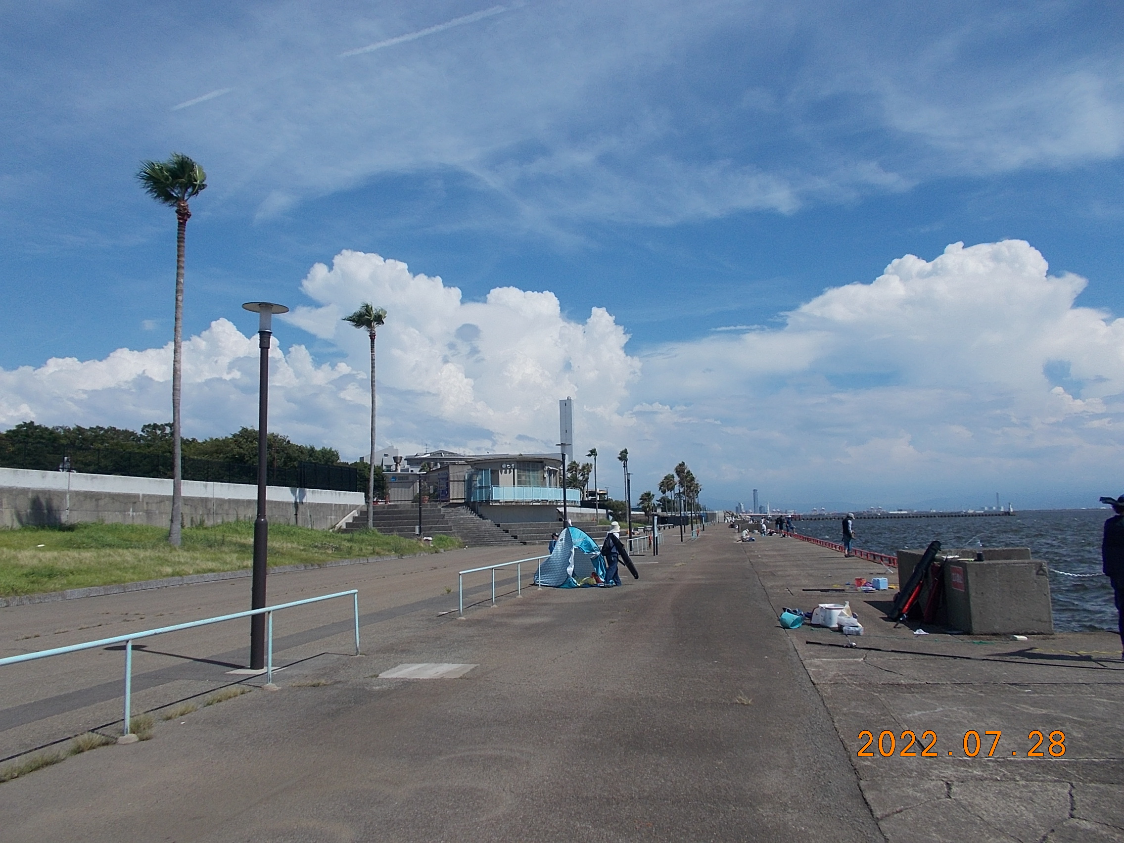 只今、18時半、鳴尾浜は気温30℃、風速南西2m/sとなっています。ゴロゴロとなり始め雷がもうすぐ来るのか?と思っていましたが、レーダーを見ると横に逸れたみたいです。でも、まだまだ、油断は禁物です。今の鳴尾浜ですが,丁度20名のお客様がいらっしゃいます。釣果の方はサビキが中心で、サバ、サッパ。そして、少し少ないですが、カタクチイワシと言った所でしょうか?18時半に、落とし込みのお客様にチヌが釣れました。餌はイガイでした。