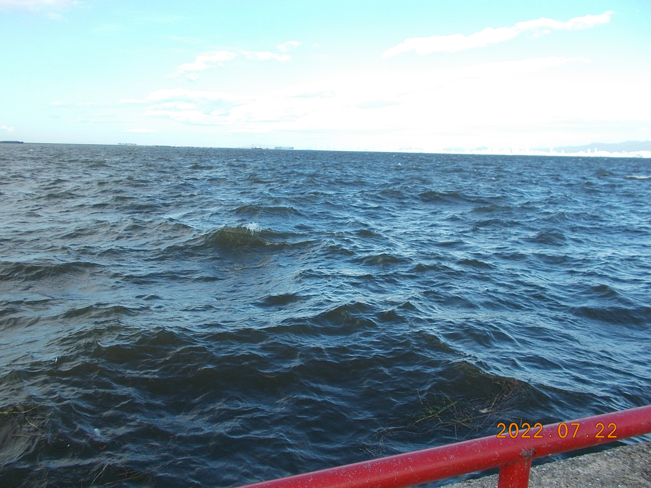 午後3時半現在、西の風2.0m、薄曇り、35℃。うねりあり。サビキでサッパ、さばなどがポツリポツリと釣れています。
