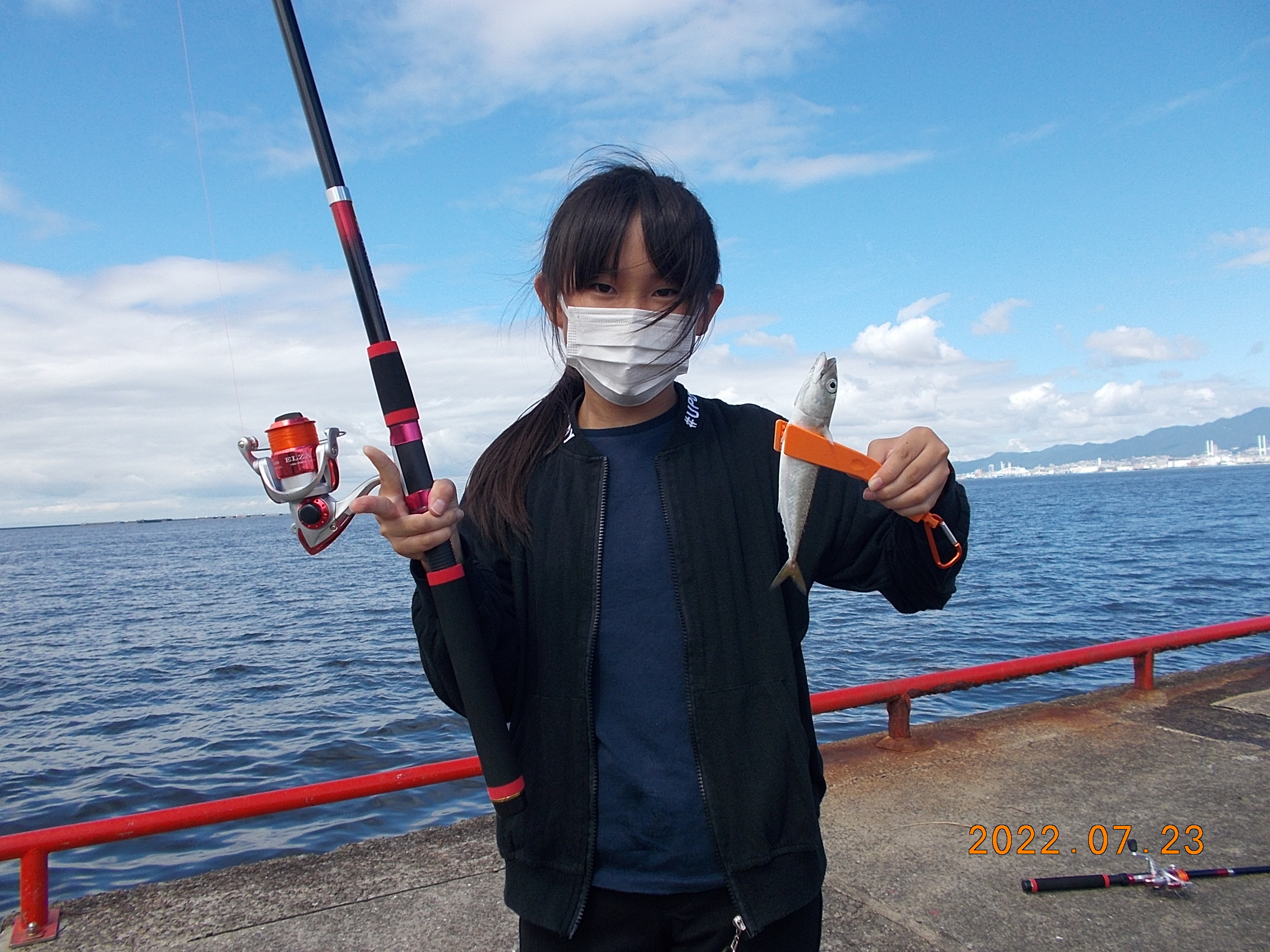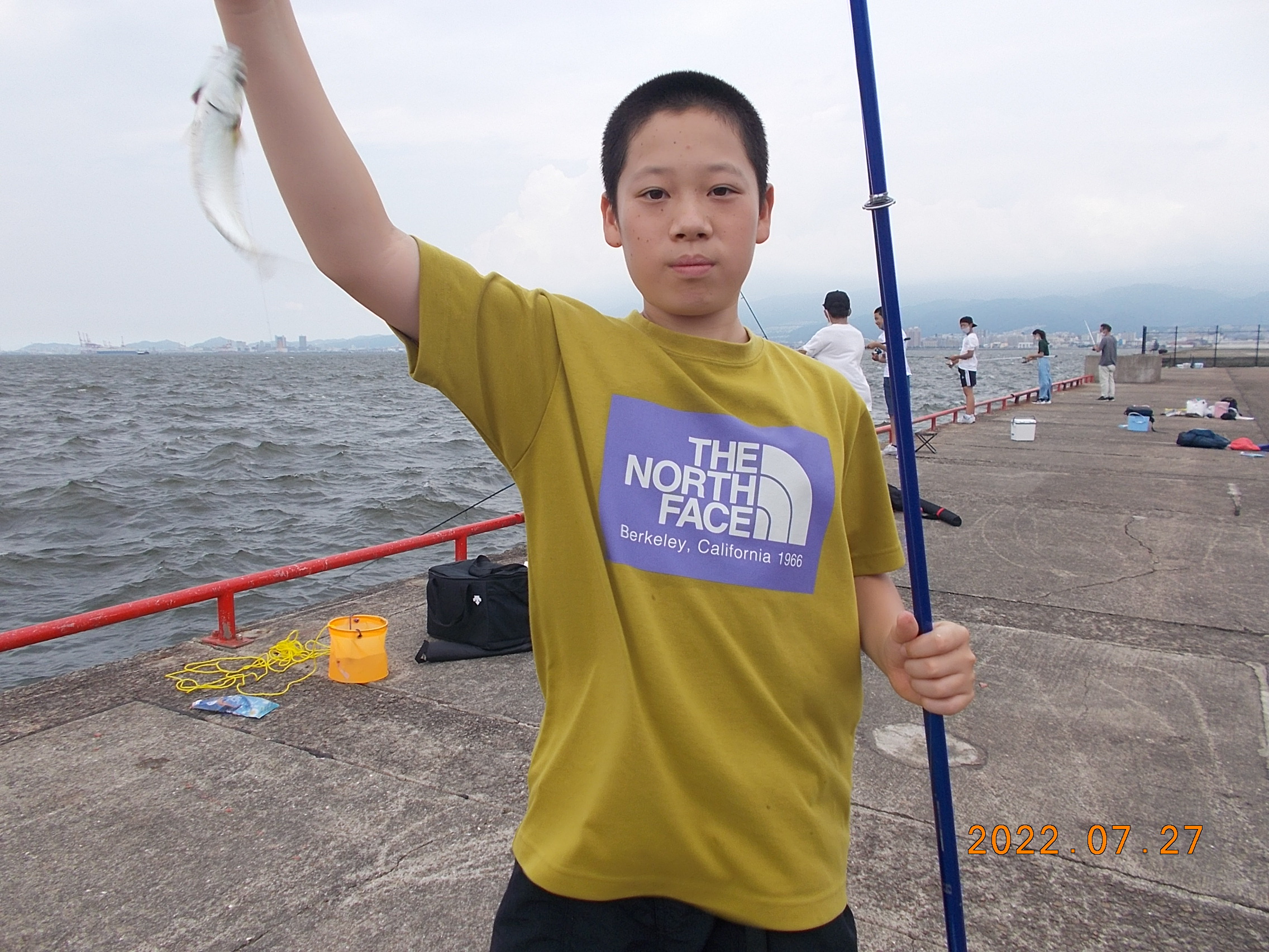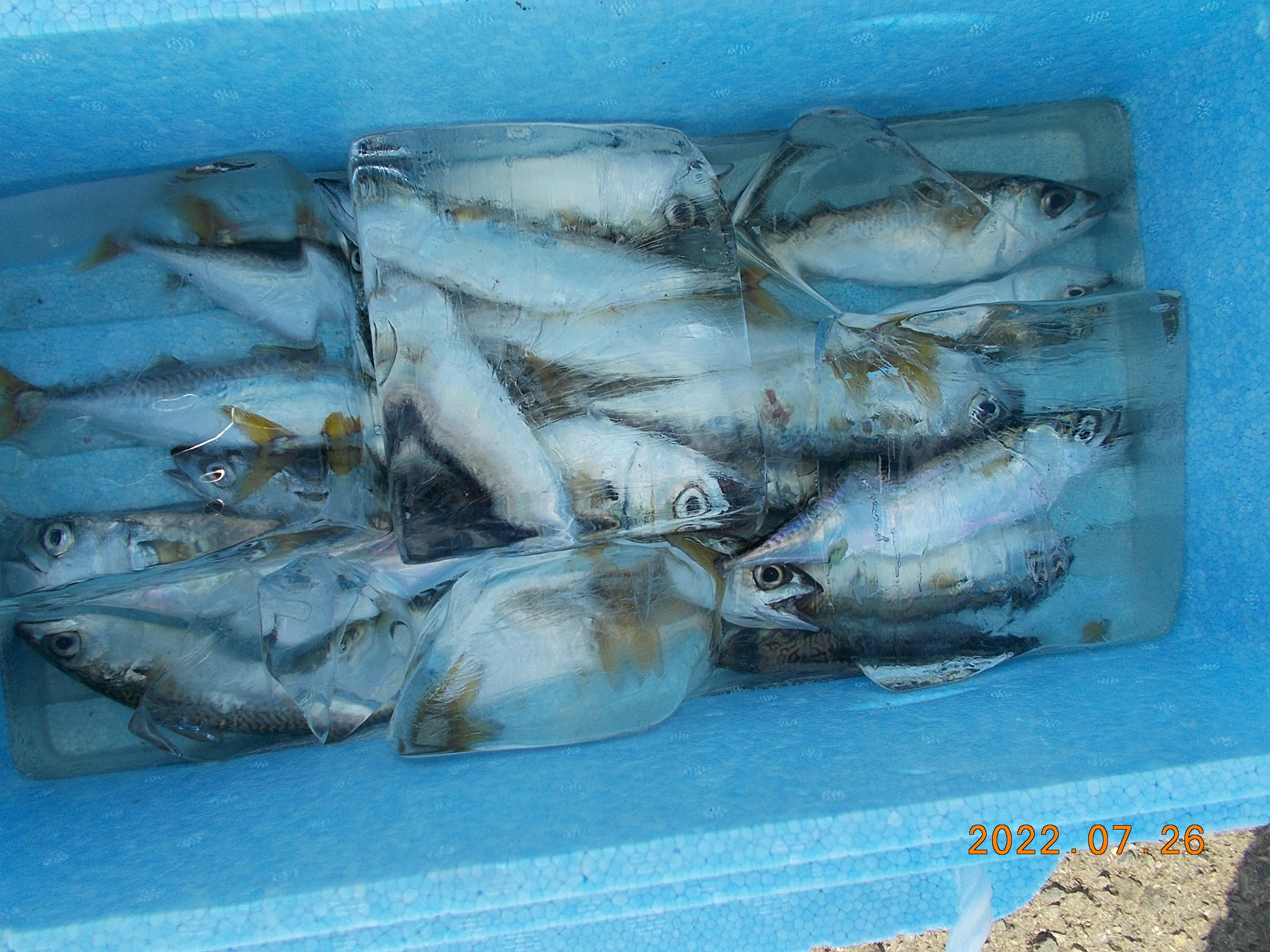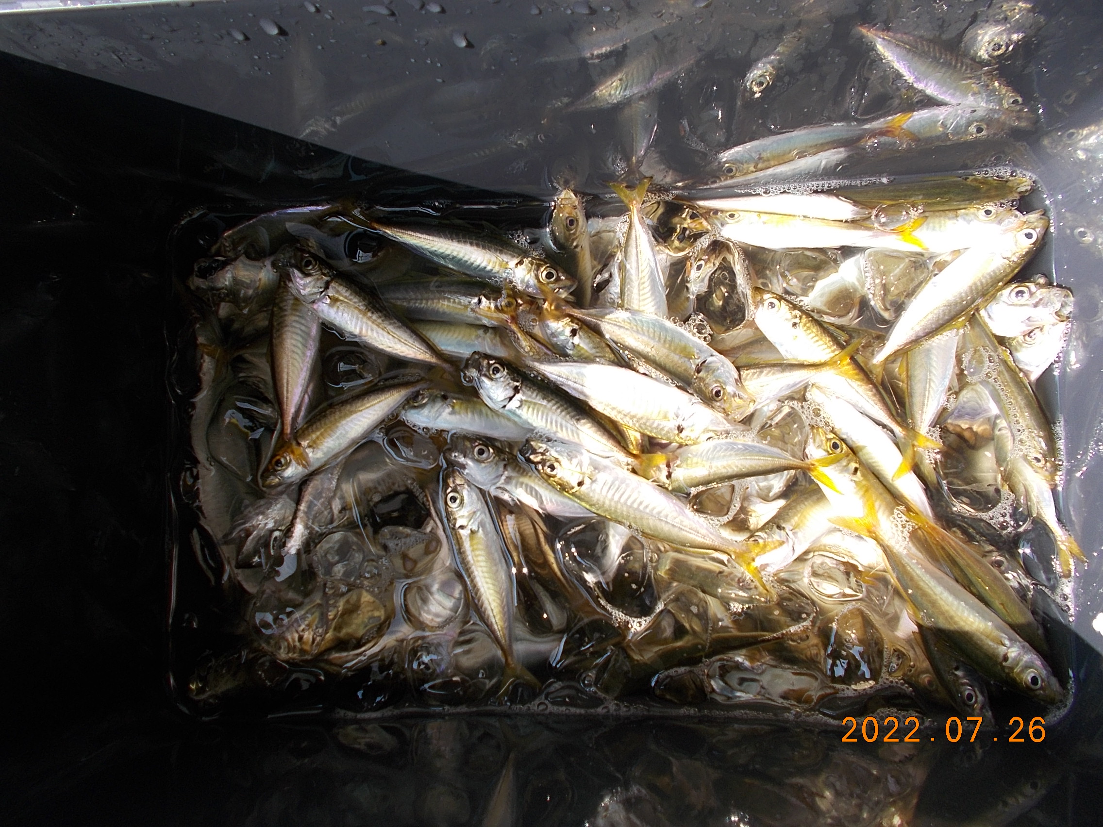 今日は朝から好天に恵まれ沢山のご家族の皆様が大会に参加されサバ、豆アジ、カタクチイワシ等たくさん釣果があり子供の歓声が響いていました。大会は無事9時に終了致しました。午後1時半現在、気温35℃厳しい暑さになっています、只今30名程のお客様が釣を楽しんでおられますがくれぐれも熱中症には気をつけてください。釣果の方は豆アジ、カタクチイワシは釣れなくなり今はサバ中心にポツリポツリと釣れています。