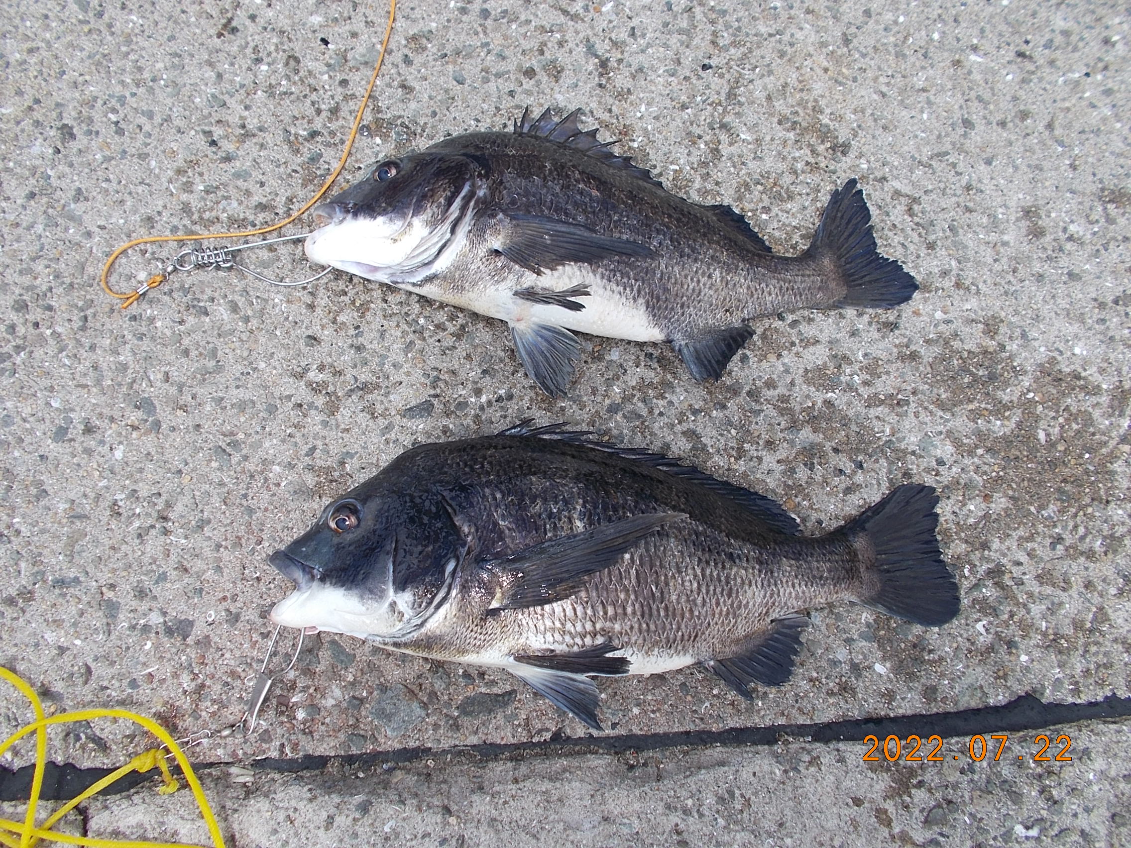 チヌが2枚上りました。1枚は48cm落とし込みイガイ、もう一匹は41cmウキ釣り青イソメ。