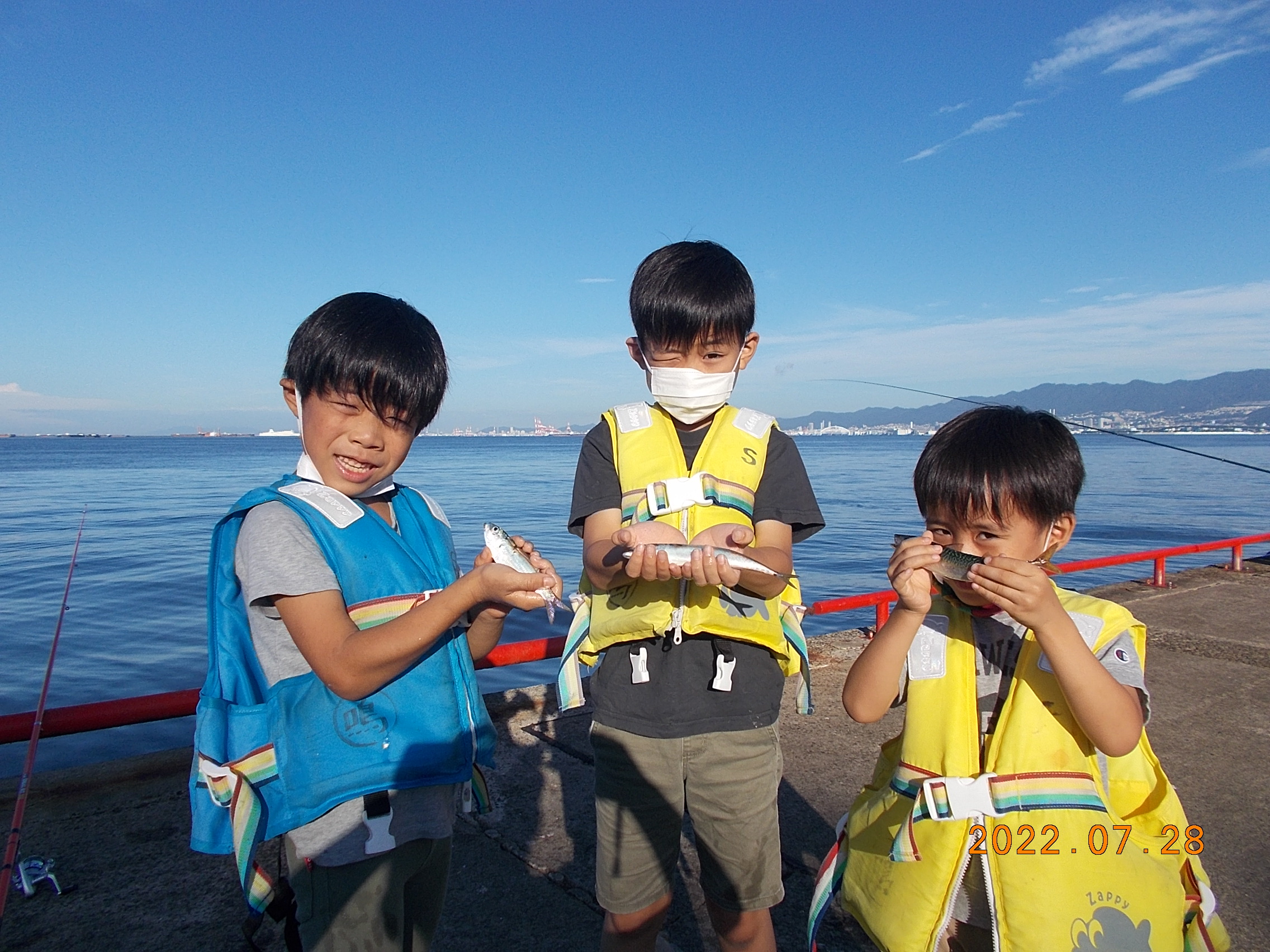 本日は6時から9時迄「夏休み子供サビキ釣り大会」を開催いたします。※熱中症対策の為終了を10時から一時間前倒しし9時迄といたします。