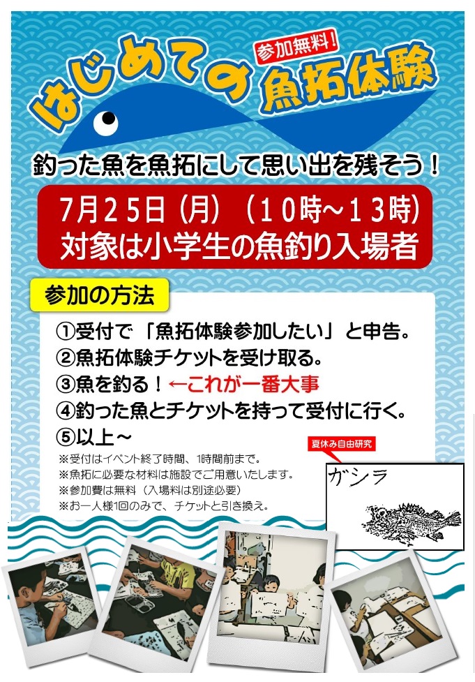 【 7月25日(月)「魚拓教室」の様子と「魚拓制作方法」 】を更新しました。