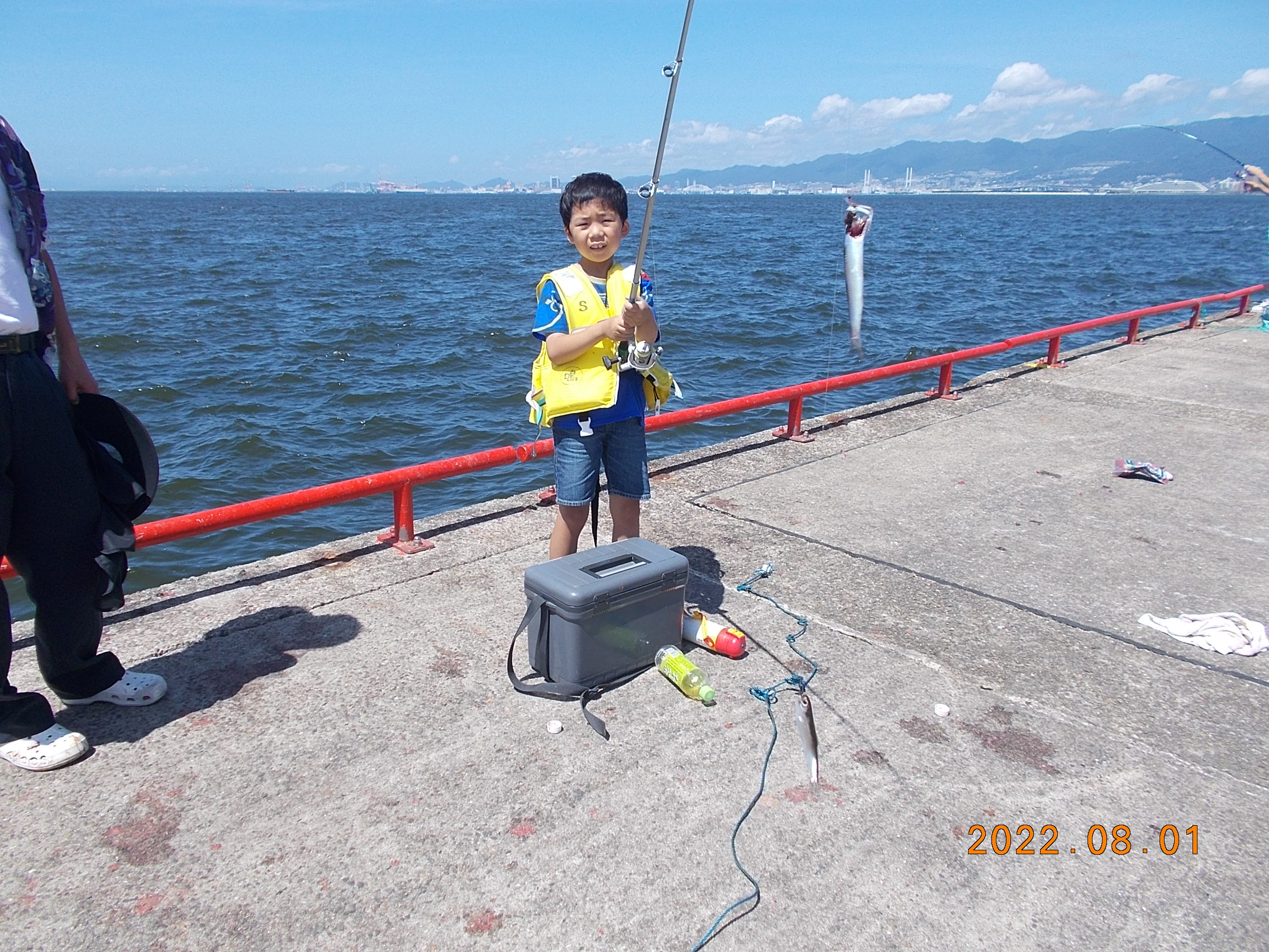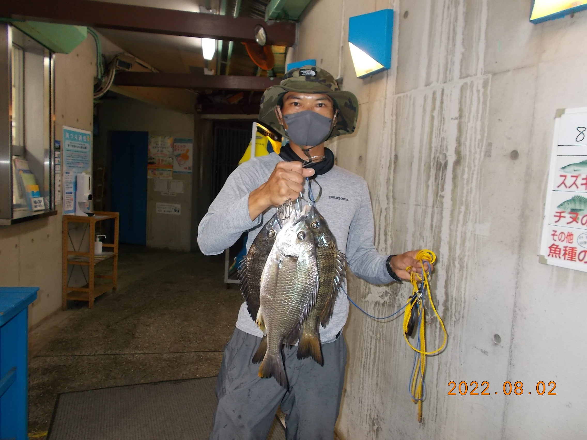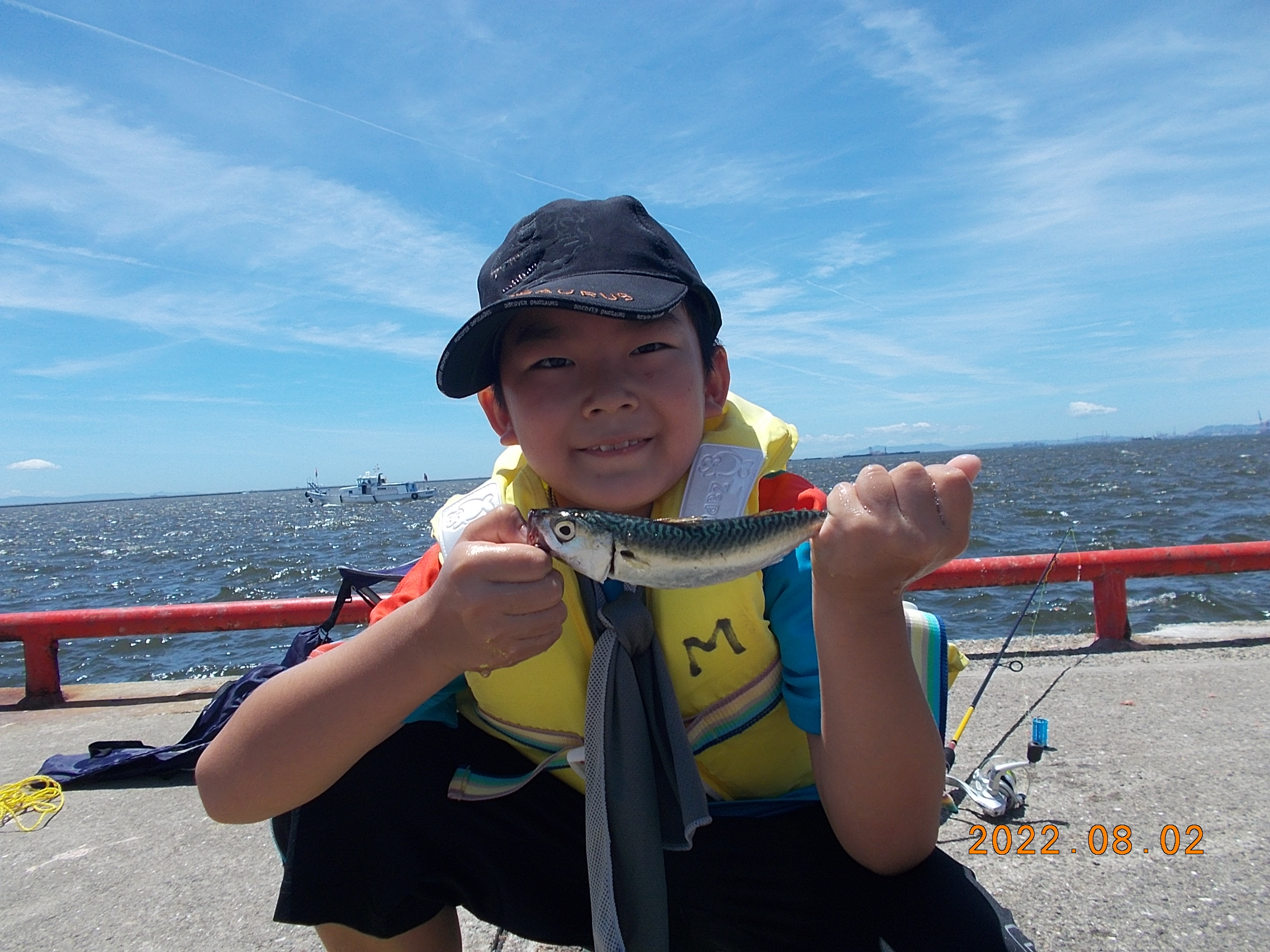 今日から朝5時の開場となり、いつもより多くのお客様が来られています。日が昇る前の涼しい時に釣りを楽しむのと、アジの釣果を上げる為かと思われます。順調にイワシ・サバは釣れていますが、残念ながらアジはまだ上がっていません。朝から落とし込み(餌:イガイ)をされている方が43cmのチヌを上げられています。昼にかけて、まだまだサバ・カタクチイワシは釣れています。11時頃から風が強く吹き始め白波が立つぐらいで釣りづらくなってきました。13時10分に強風の中落とし込みで(餌:イガイ)40cmのチヌが上がりました。おめでとうございます!!