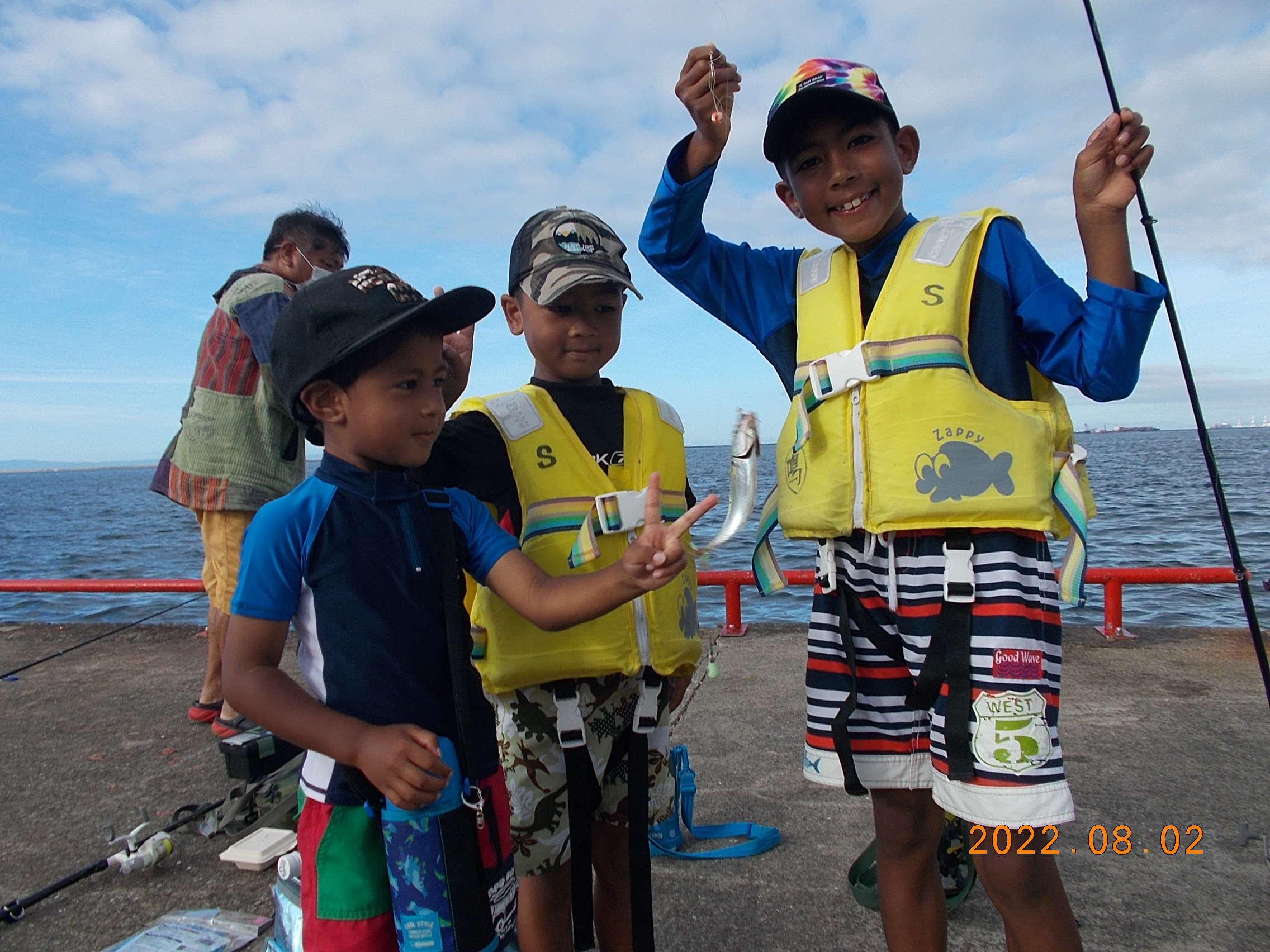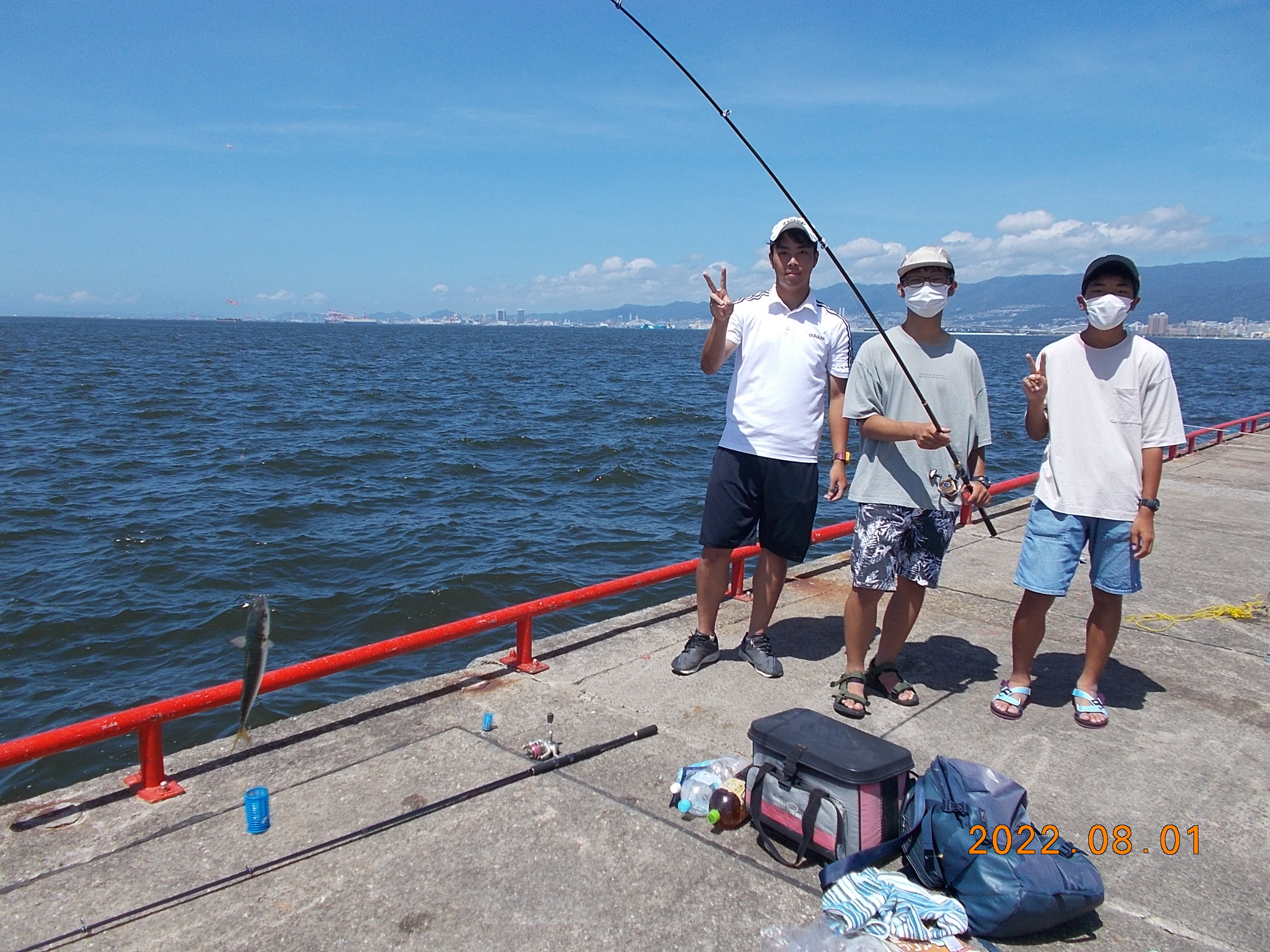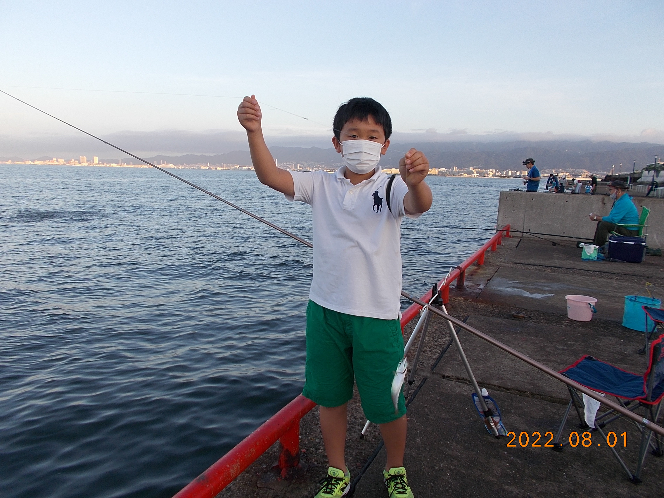 今日から朝5時の開場となり、いつもより多くのお客様が来られています。日が昇る前の涼しい時に釣りを楽しむのと、アジの釣果を上げる為かと思われます。順調にイワシ・サバは釣れていますが、残念ながらアジはまだ上がっていません。朝から落とし込み(餌:イガイ)をされている方が43cmのチヌを上げられています。昼にかけて、まだまだサバ・カタクチイワシは釣れています。11時頃から風が強く吹き始め白波が立つぐらいで釣りづらくなってきました。13時10分に強風の中落とし込みで(餌:イガイ)40cmのチヌが上がりました。おめでとうございます!!