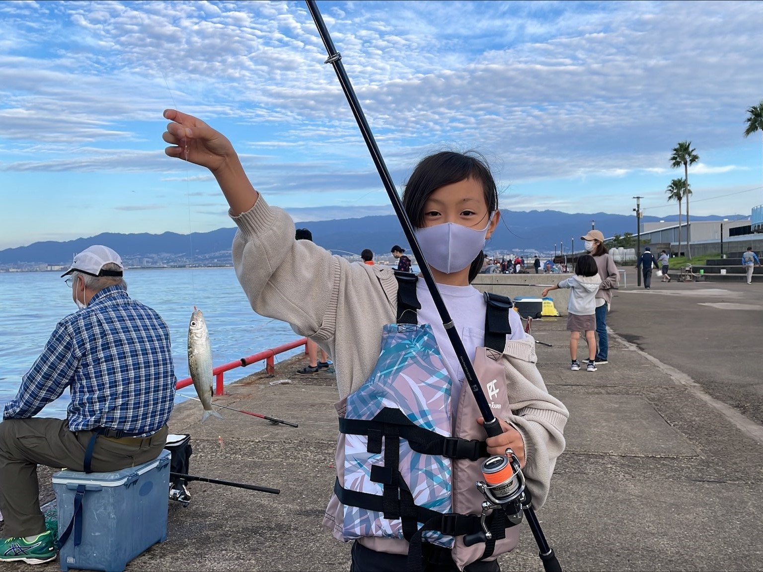 本日のサヨリは遠くに居るようで、近くで狙われている方はアタリも少なくなっていました。少し力を入れて前に飛ばさないといけませんので、引っ掛からないように後方など周囲の安全を確認し飛ばすようにして下さい。