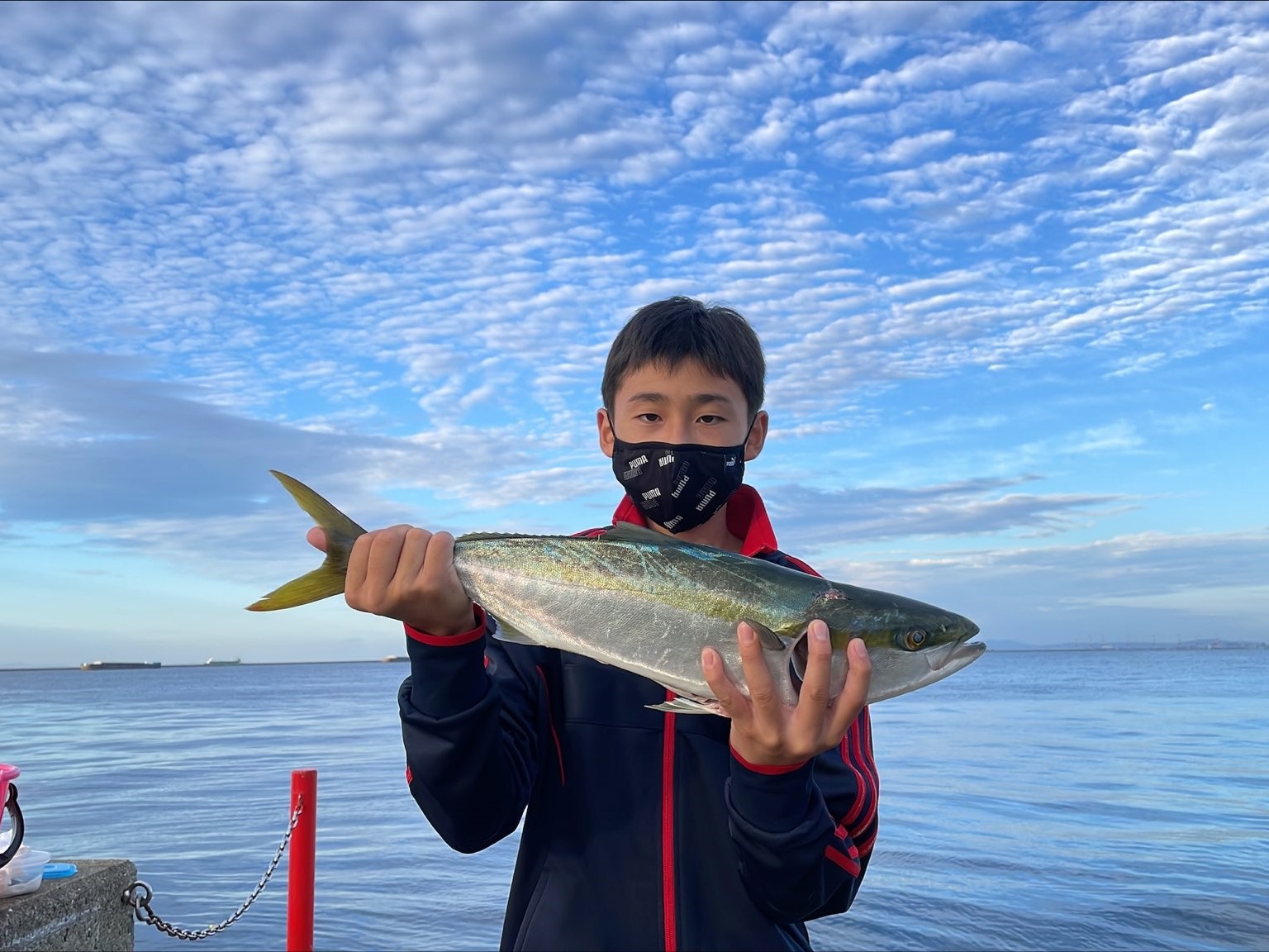 今日は朝早い時間に70cm,78cmのメジロが立て続きに2本上がりました。お二人ともエサはサビキで釣ったサバで、大きい物よりも小さめを選んだそうです。この秋は青物が面白くなりそうです。