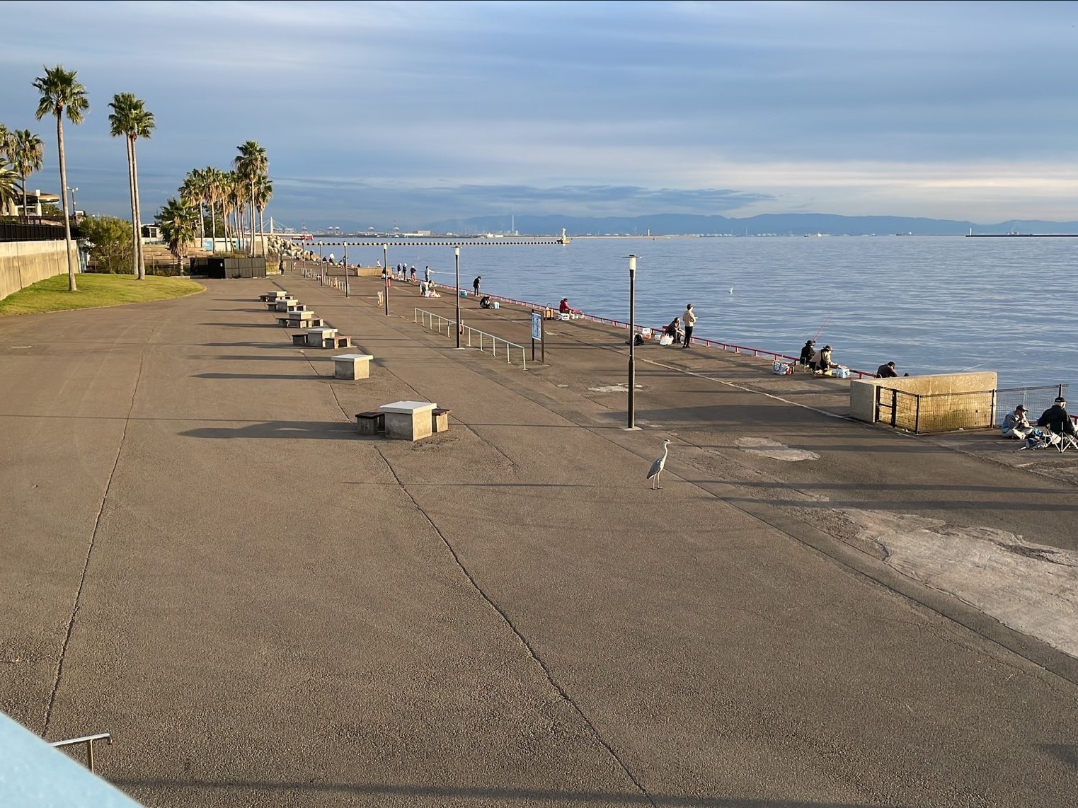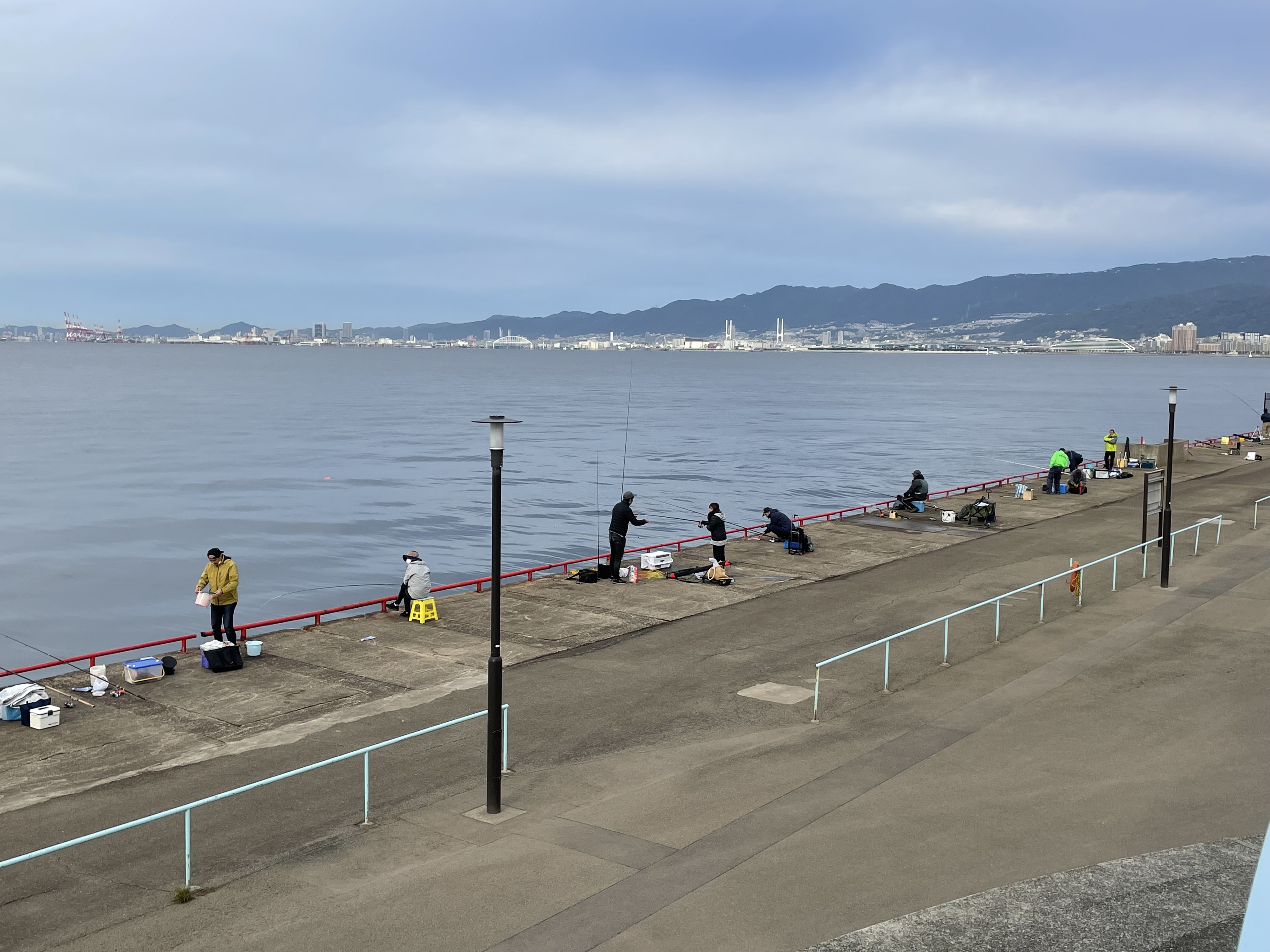 16時半、いっこうに魚は釣れない状態の為、皆さんシビレをきらしていらっしいます。只今、風北4m/s、気温18℃の鳴尾浜です。今、100名の方がいらっしゃいます。