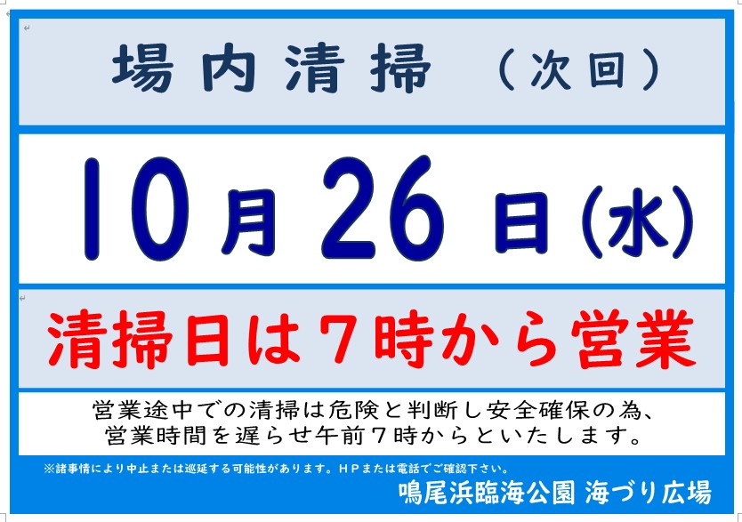 本日の清掃作業は終了しました。次回は11月2日(水)となります。