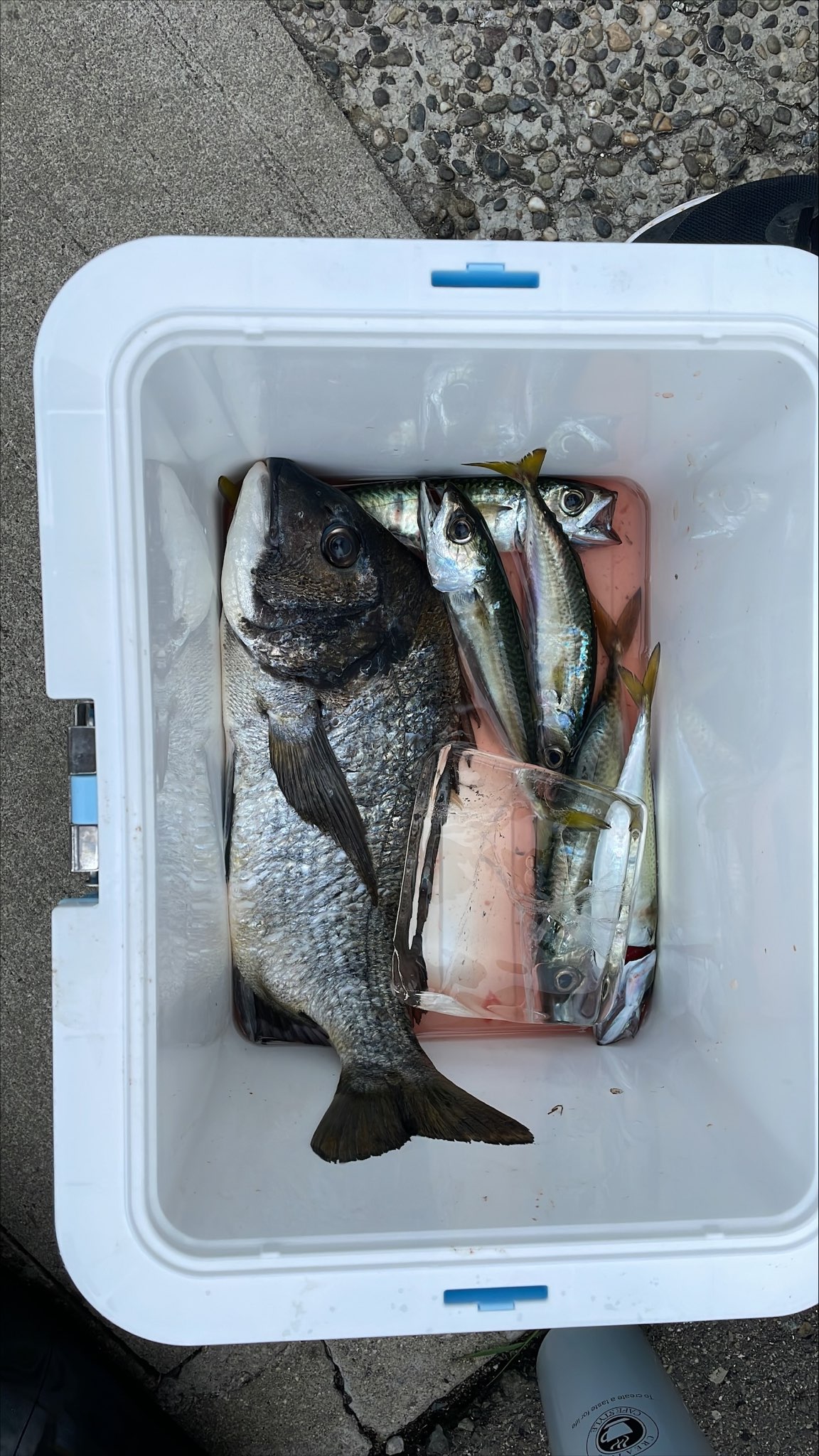 朝、暗いうちからサバの群れが入ってきたみたいで釣果が上がり、初めて来られたという方も喜ばれていました。その後に、マイワシが釣れ出しサバより大きな物も上がっています。お客様がマイワシがたくさん釣れたので良かったと笑顔で帰られていました。