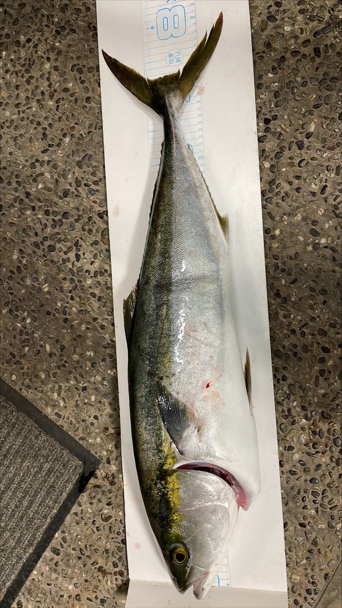 早朝からマイワシが好調で、それも、20cmを超すような良型が釣れていました。その後はひと回りサイズダウンしたものの、マイワシは良く釣れています。サバも好調で、サイズも23cm位と良いため、なかなか釣り応えがあります。他には、ブリ83cmが上がっています。