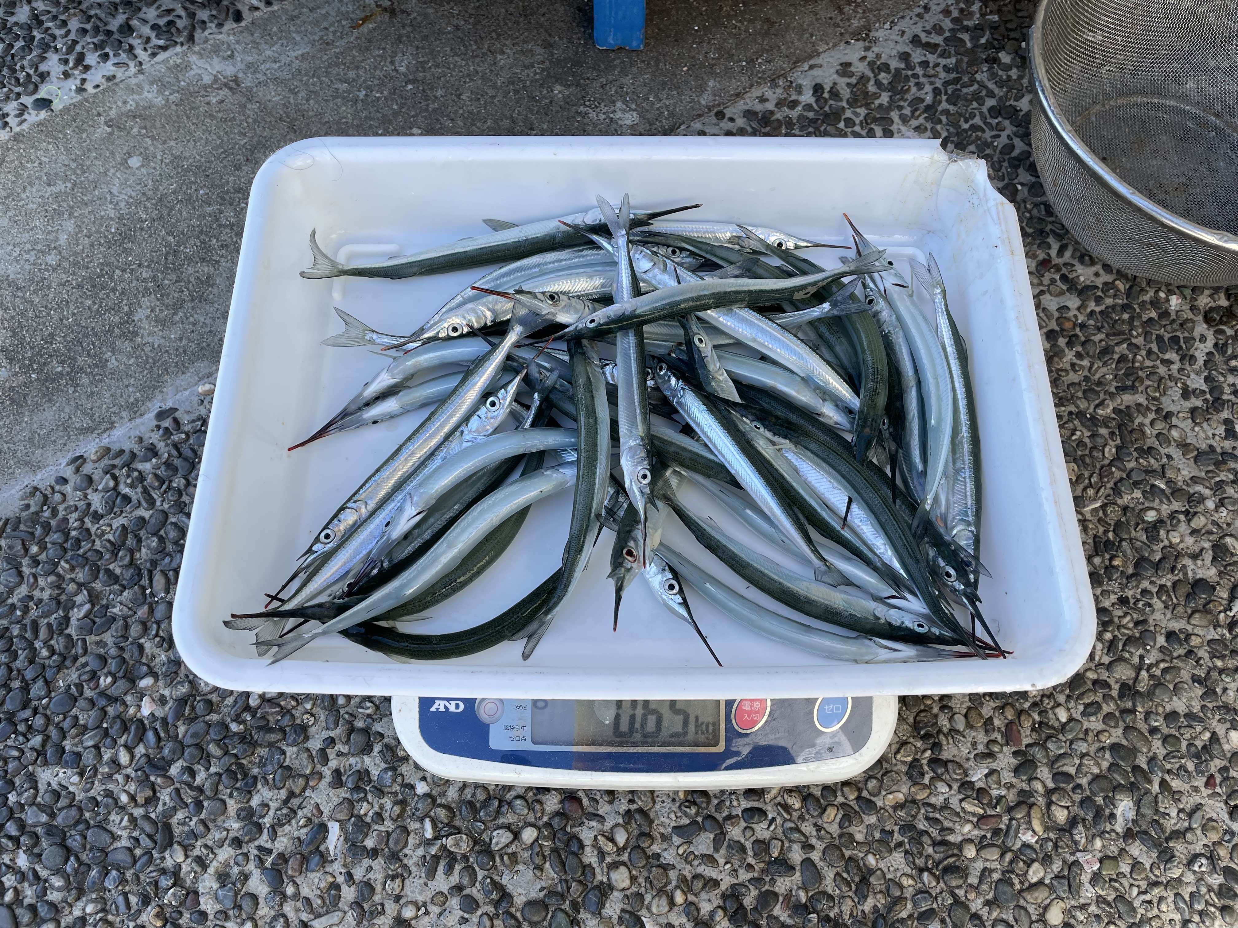 只今、18時半、今日から、サヨリンピックが開催されました。サヨリンピックとは、サヨリが釣れたら、期間中の最大、3日分の重量を競うものです。今日から始まりました。皆さん頑張ってサヨリを釣ってられました。