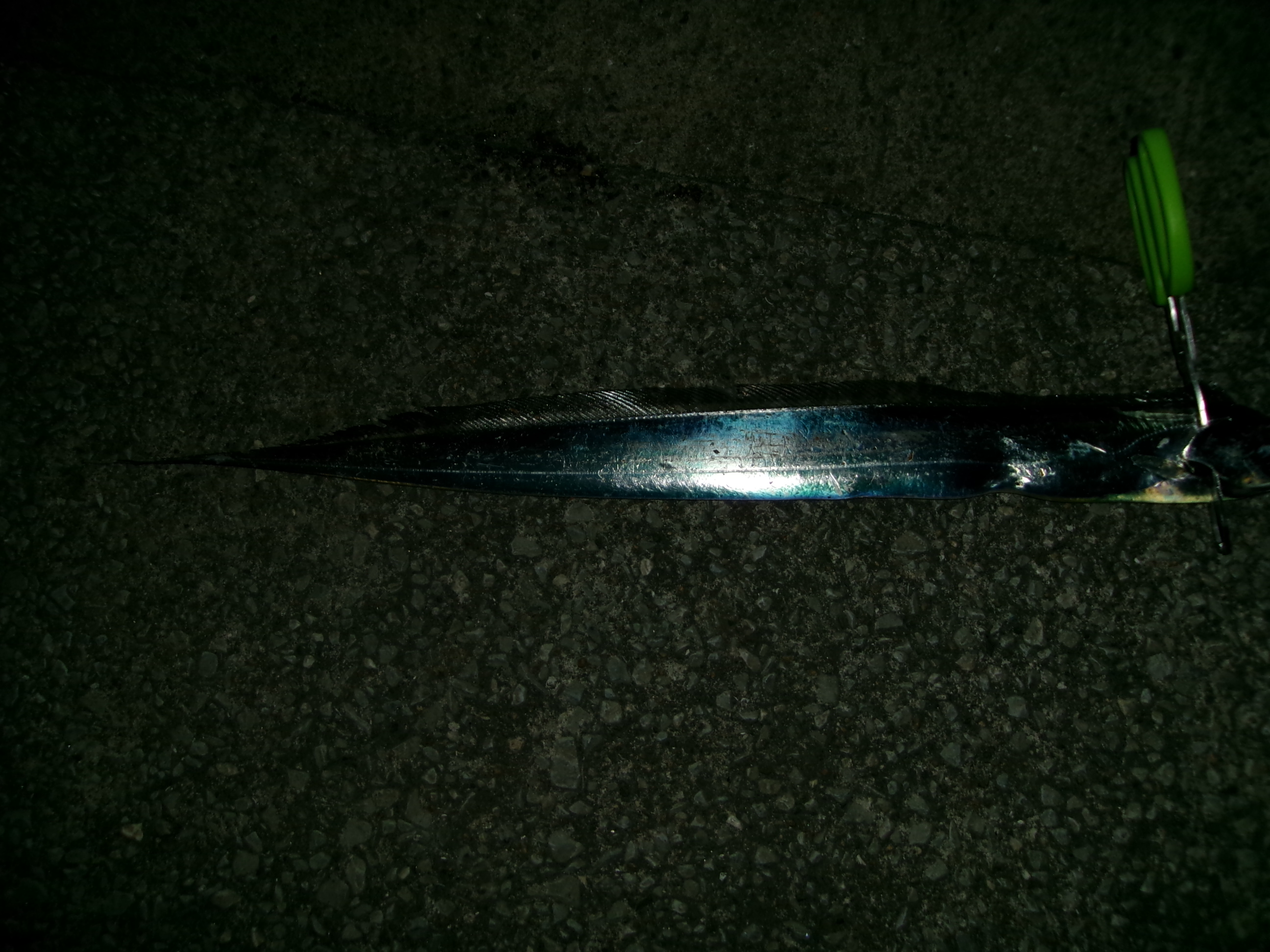 午後8時半、偶然釣れた一匹のカタクチで78.5cmタチウオが釣れました。 -