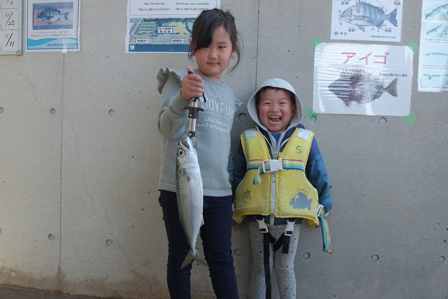 12時を過ぎた頃から曇天模様、13時から北西の風が一段強く吹き出したと同時に、フカセの方は本命ではありませんが大きなサバ2匹、サビキ釣りの方々にも3匹釣りあがり、大きなサバに驚いていらっしゃいました。