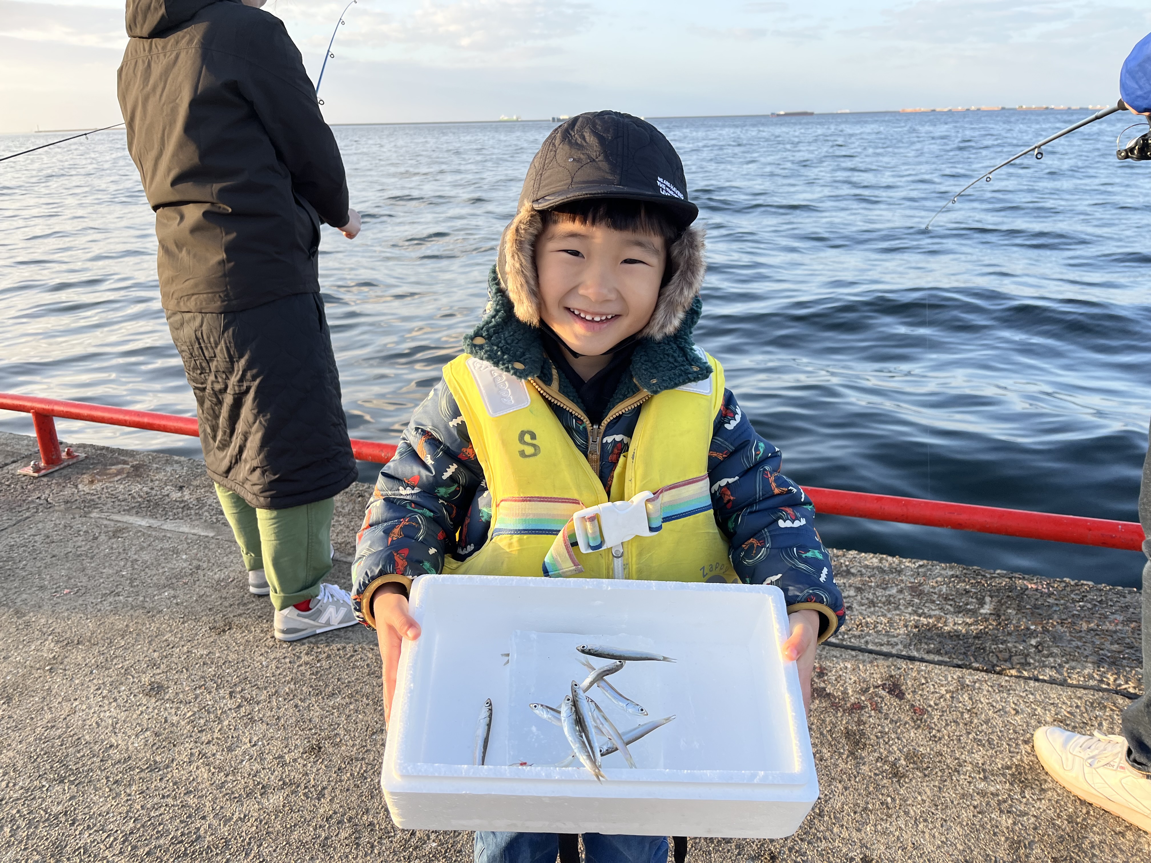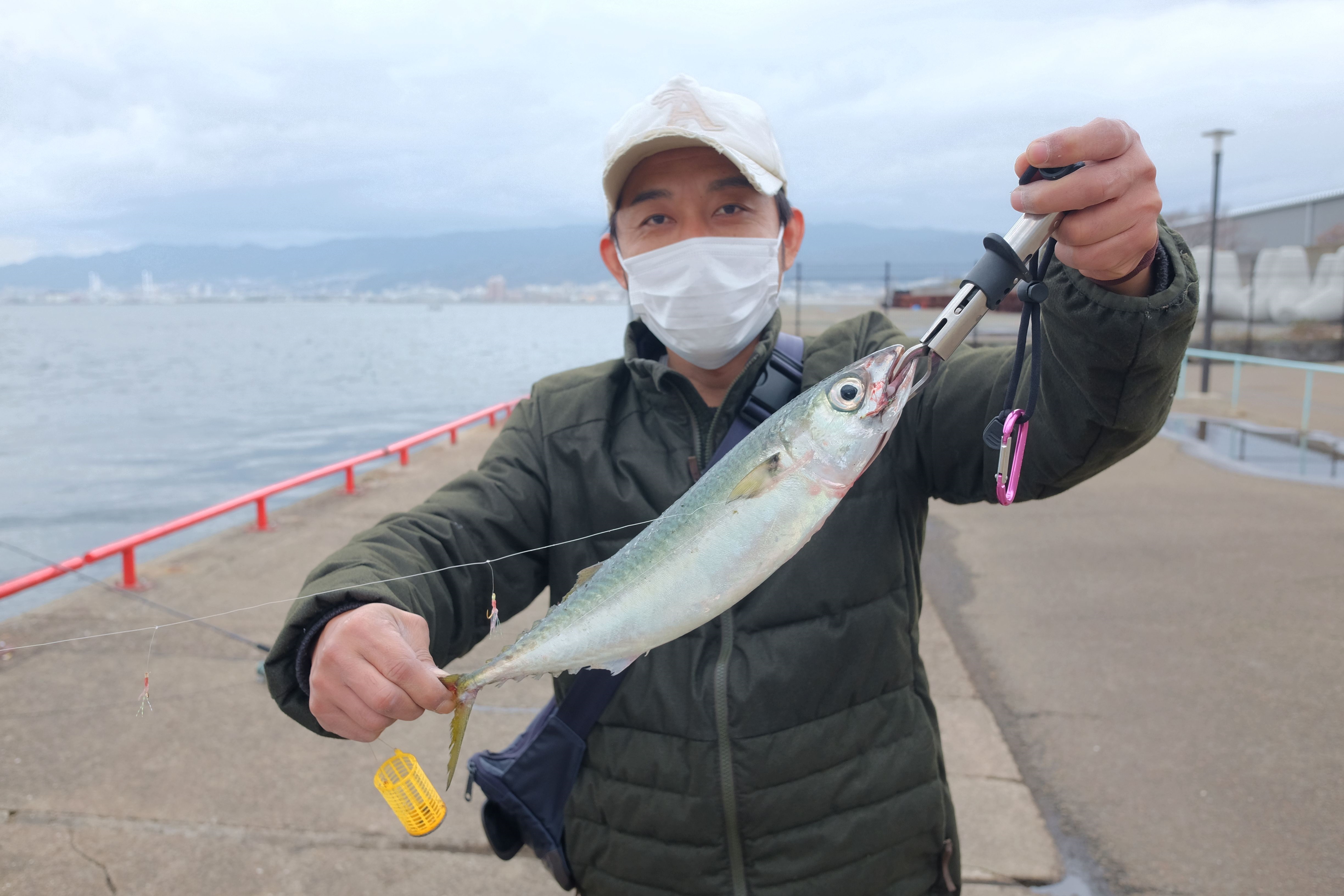 管理棟の前で、カタクチイワシが釣れました。少しではありますが、釣れて来ています。風速、3m/s気温、18℃と暖かい鳴尾浜です。