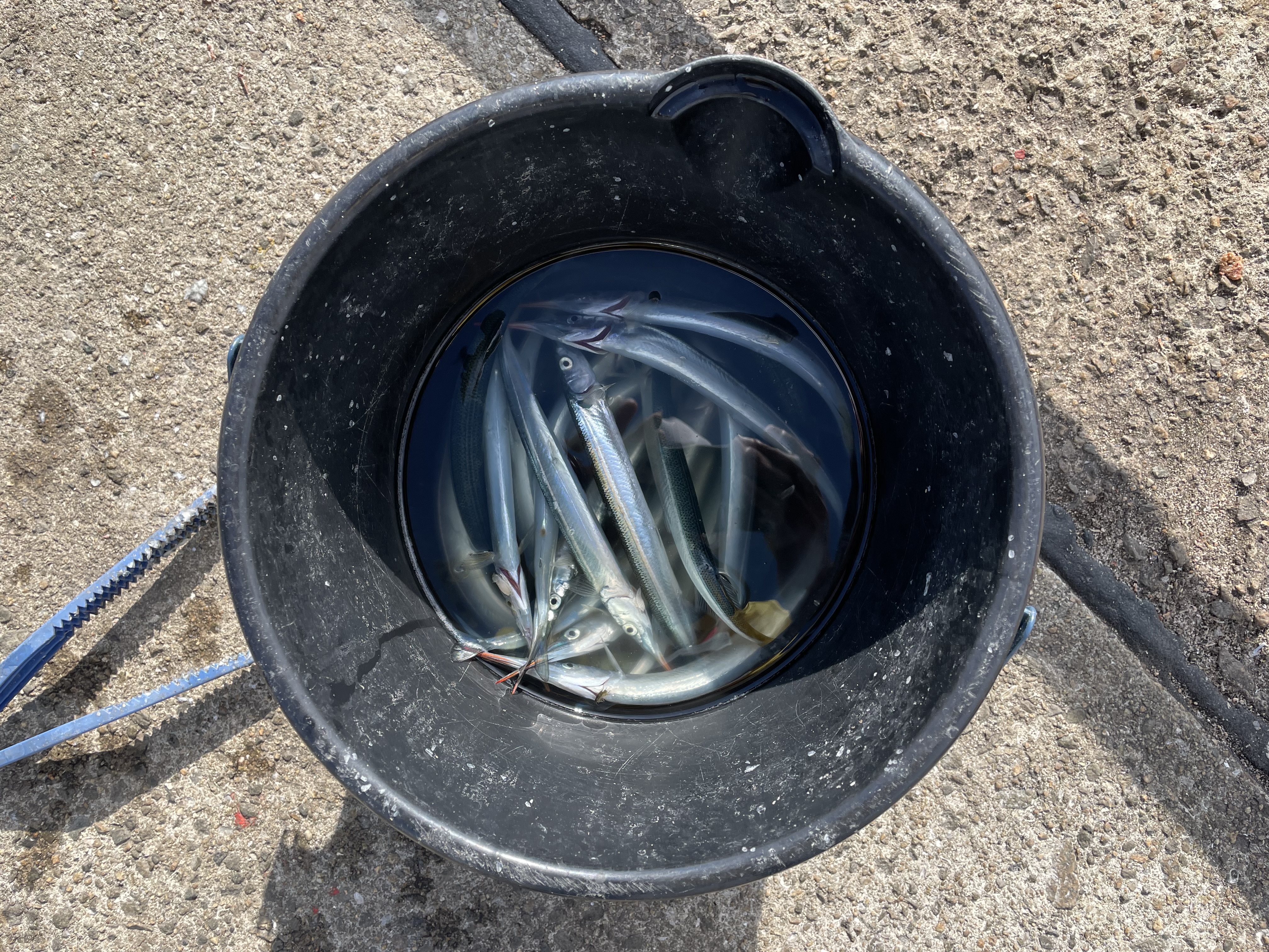 魚の姿も見えるだろうと探すのですが…、残念な事に魚の姿は見えず、サバとサヨリが数匹釣れたのみとなり、皆さん寂しい結果になっています。