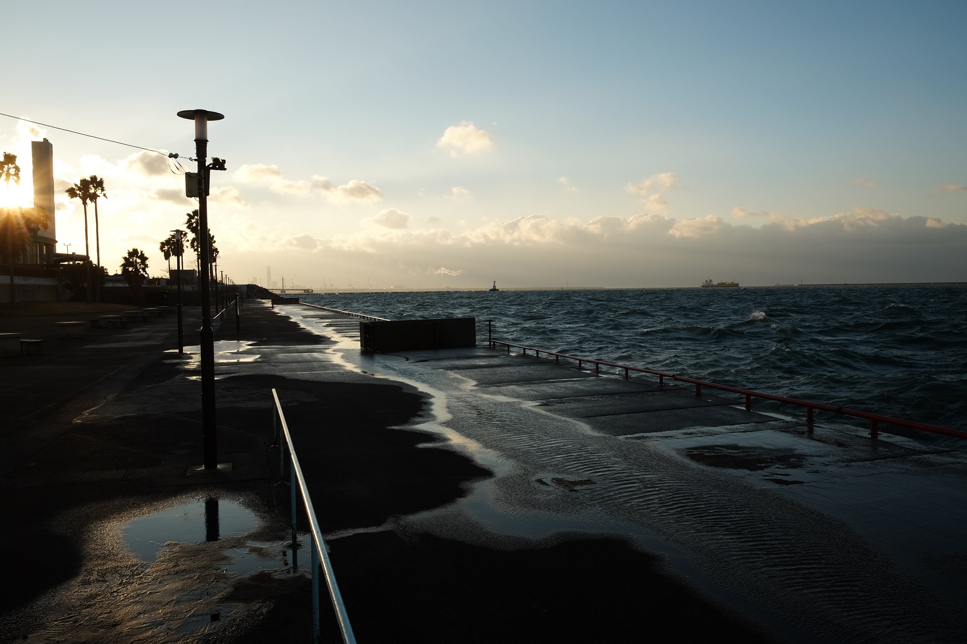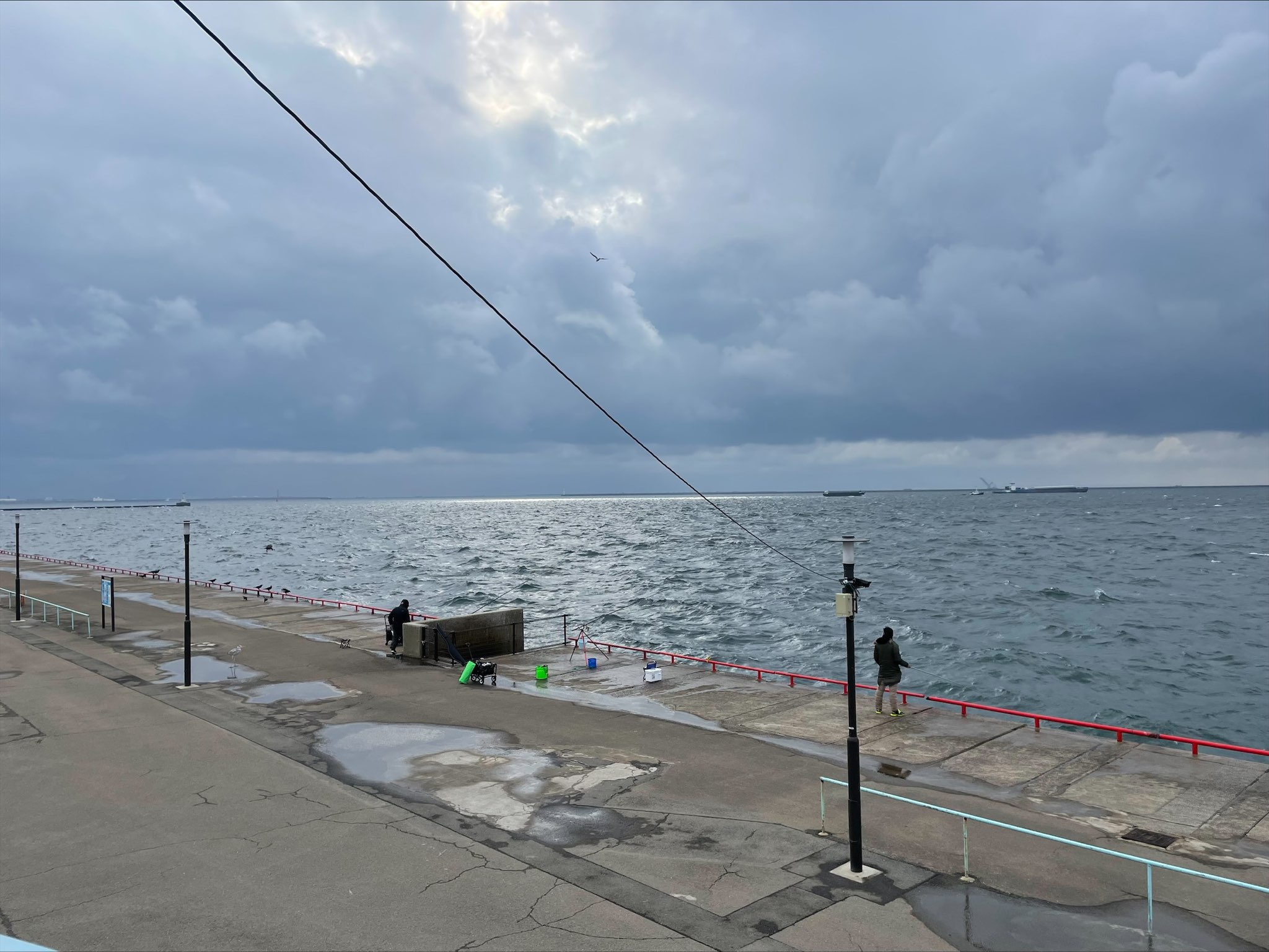 〇明日、12月24日(土曜日)、鳴尾浜海づり広場は西から8m/s前後の強い風が吹く予報となります。