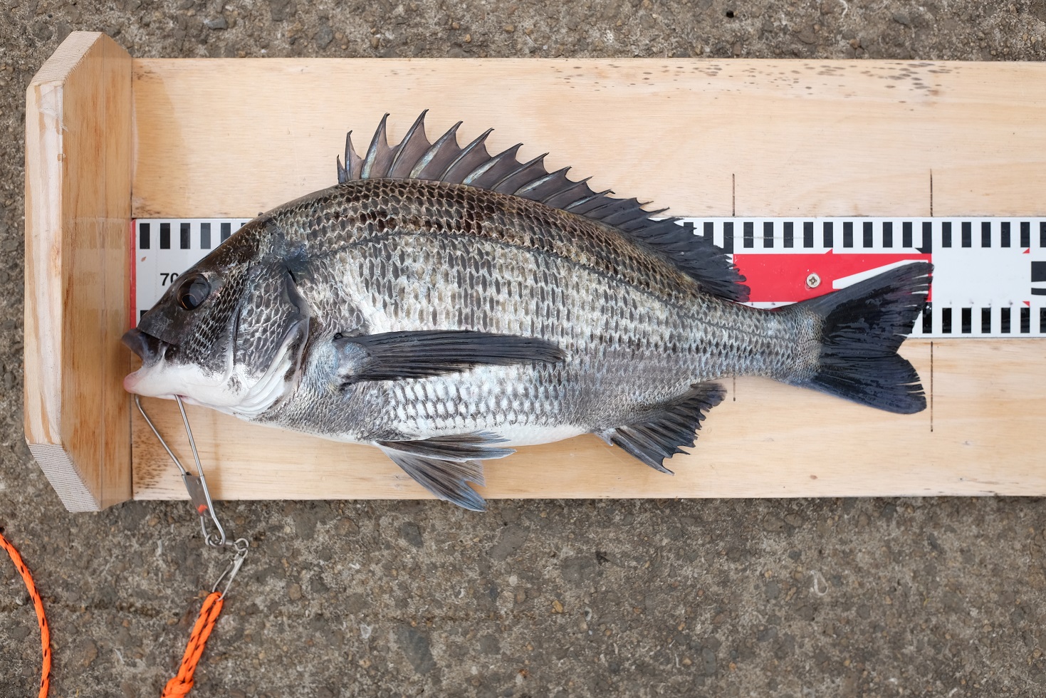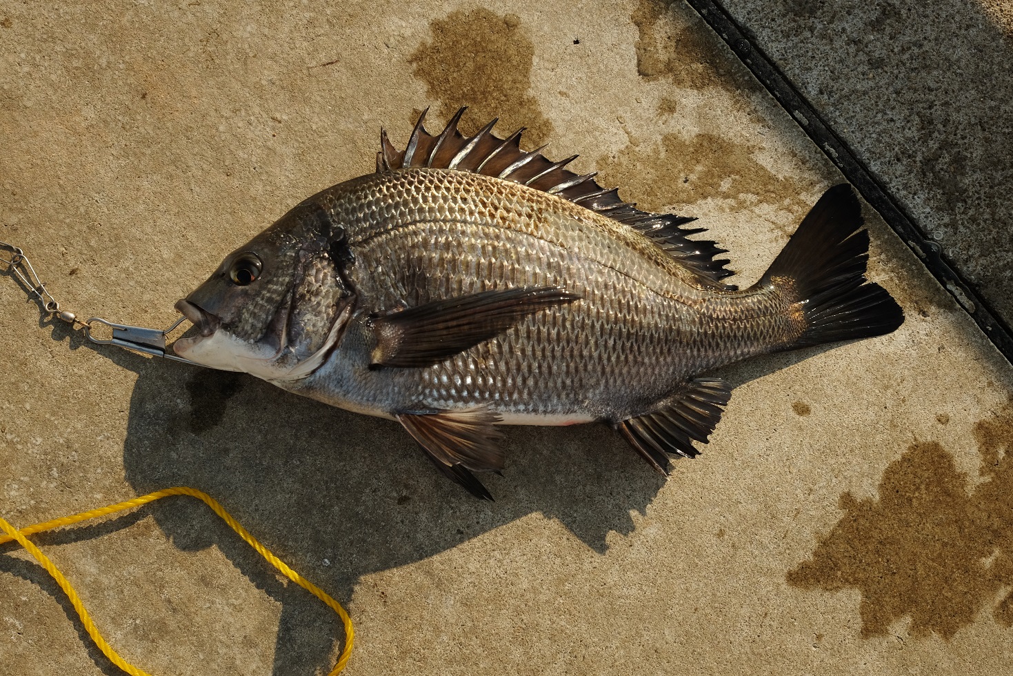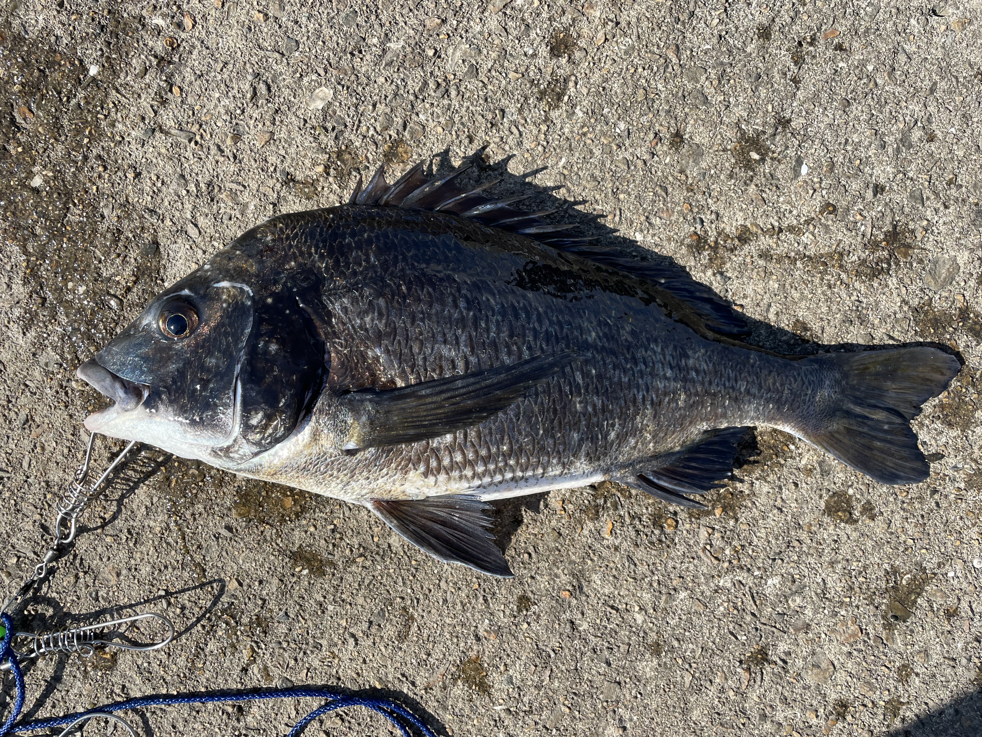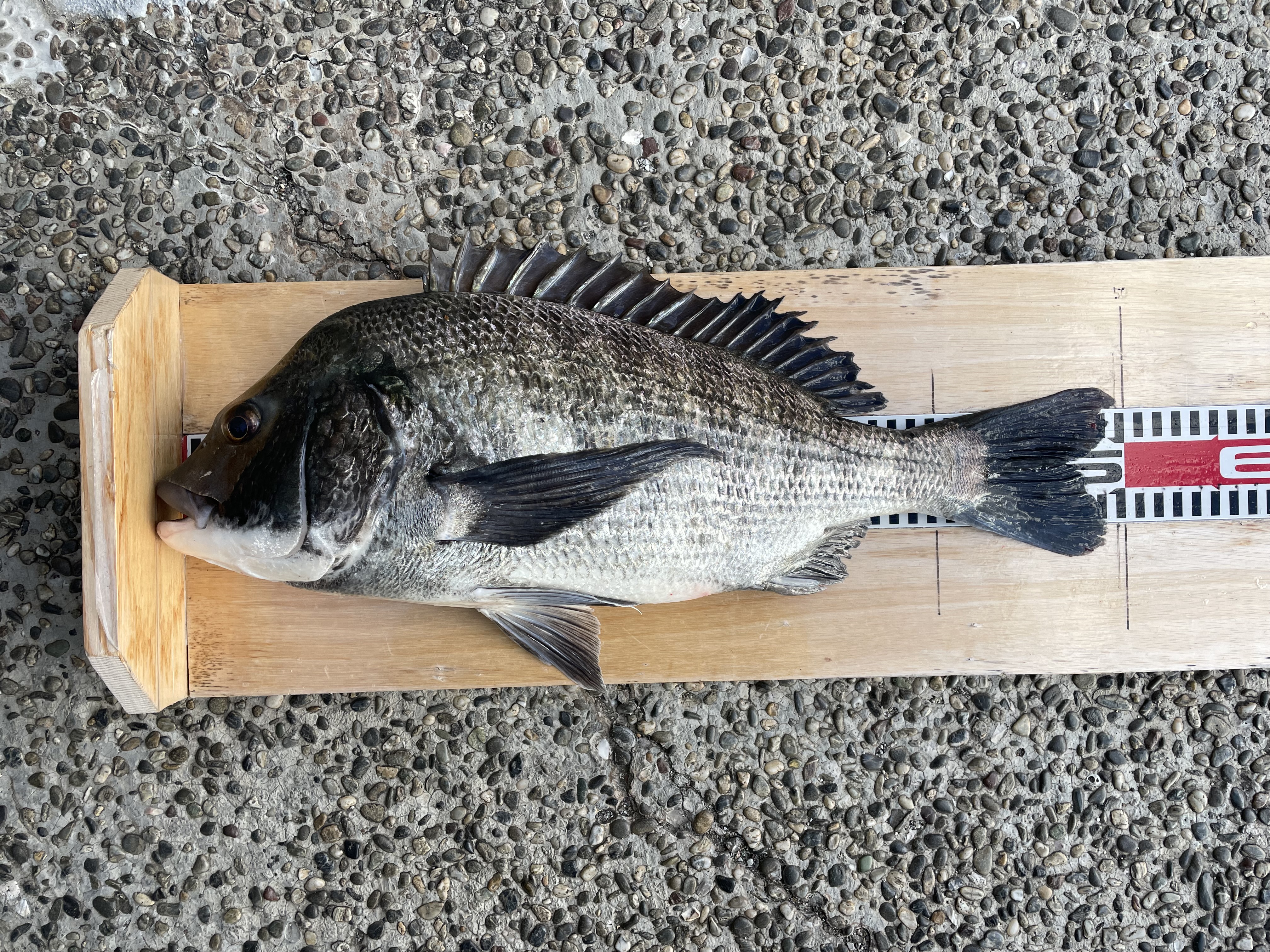 チヌ釣りをされているお客様は、何回かアタリがあったあと、フカセ釣りで30cm程のチヌをあげられました。
