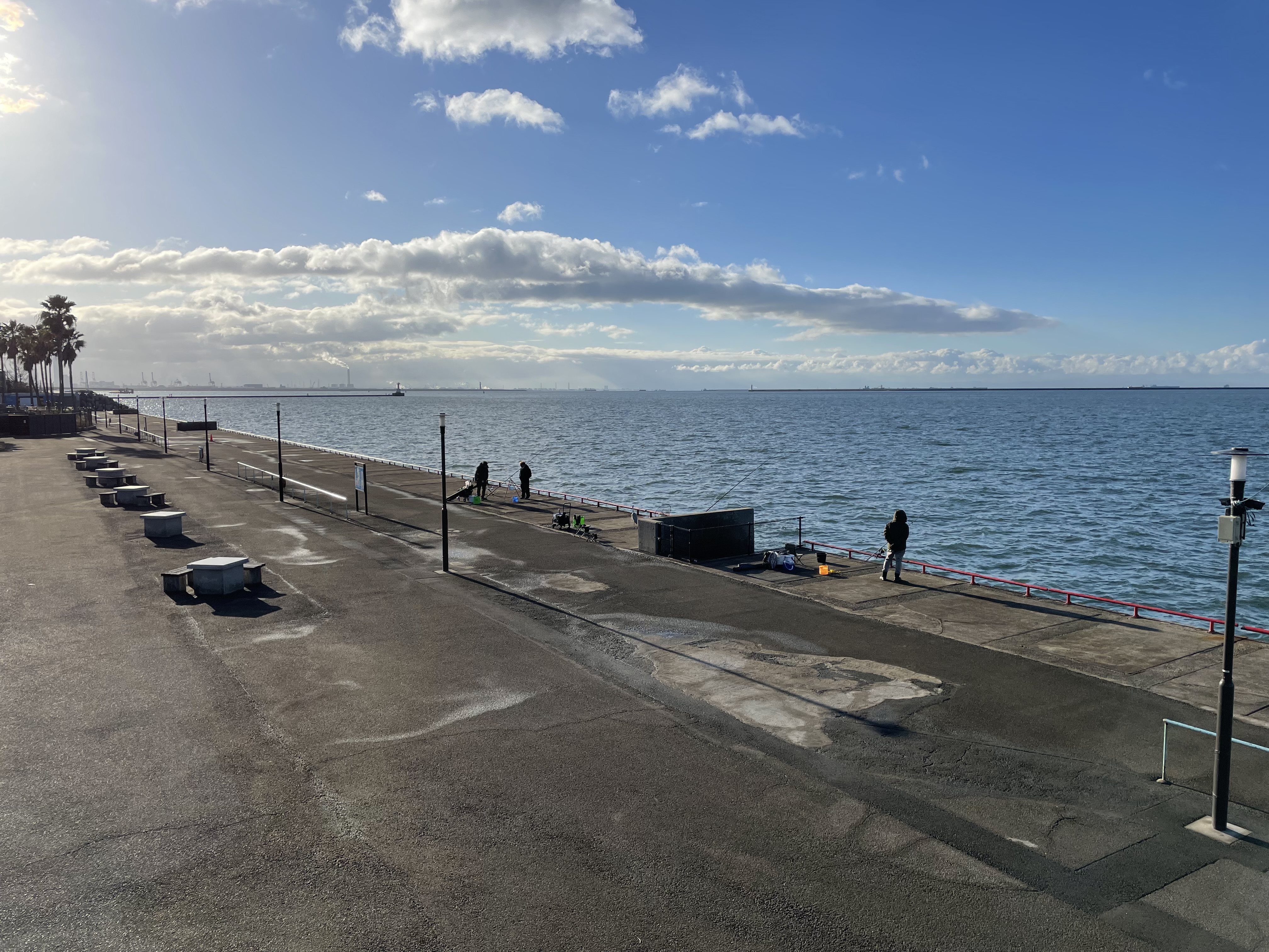 9時現在、風は無く波も穏やかでとても心地の良い鳴尾浜です。絶好の釣り日和なので、これで釣れれば言う事無いので、ぜひ期待しましょう。