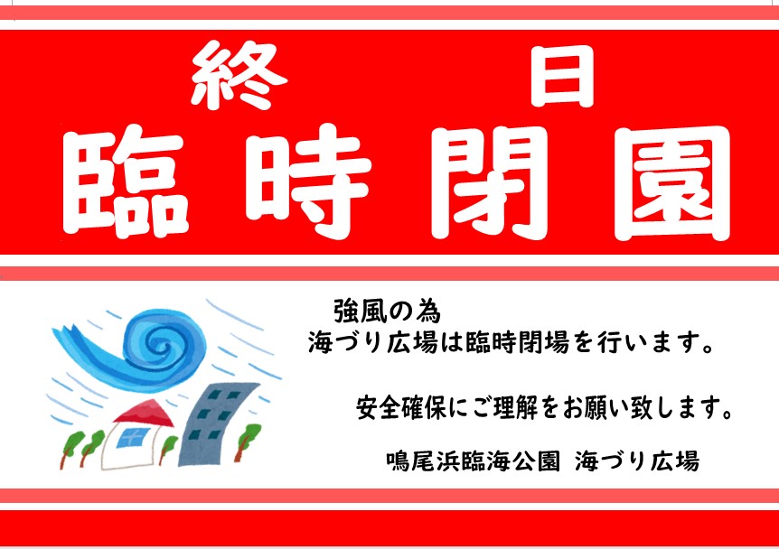 この強風は終日止む気配はなく持続するため、終日臨時閉場を行います。