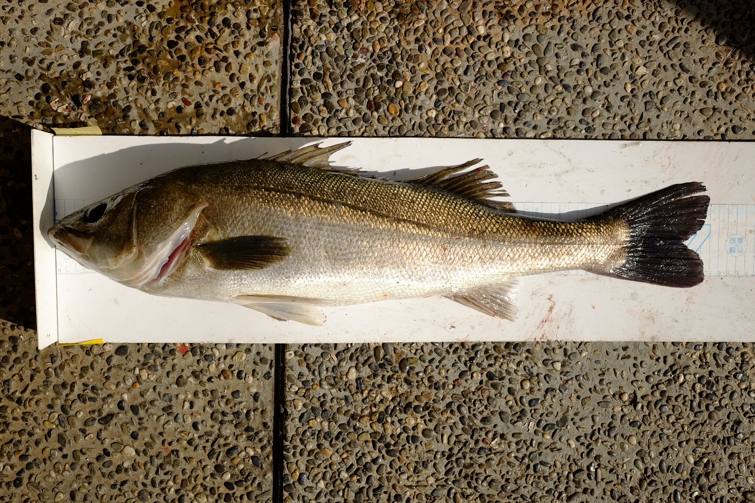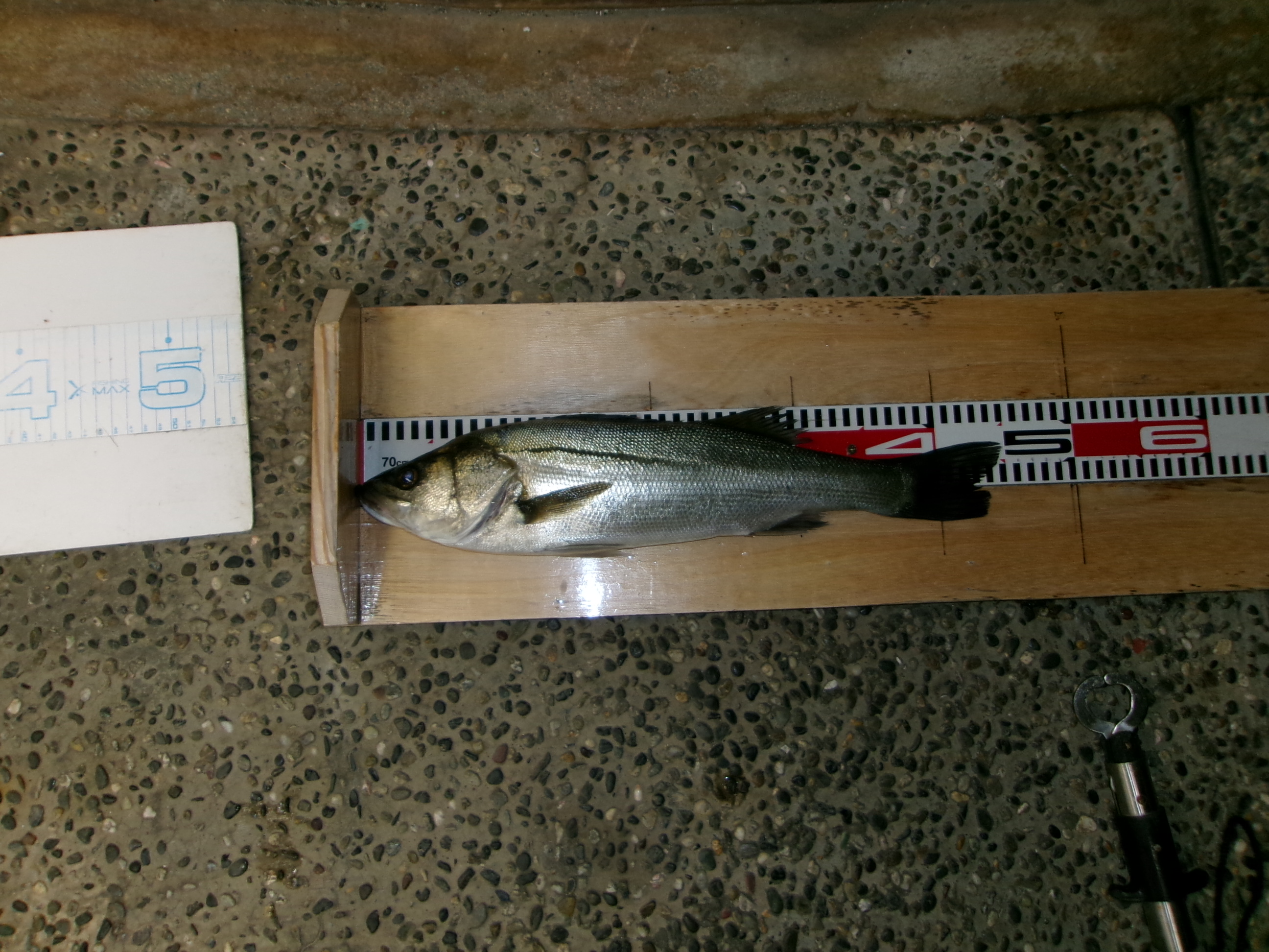 午後から、15時過ぎ頃チヌ48,5㎝(エサ、オキアミ)を釣られました、月間大物賞にエントリーされていました。それとサイズは計って無いのですが西側でスズキ70cm位を釣られたそうです。計った所73㎝ありました、月間大物賞エントリーされていました。同じお客様がハネ53cmも釣られました。 -