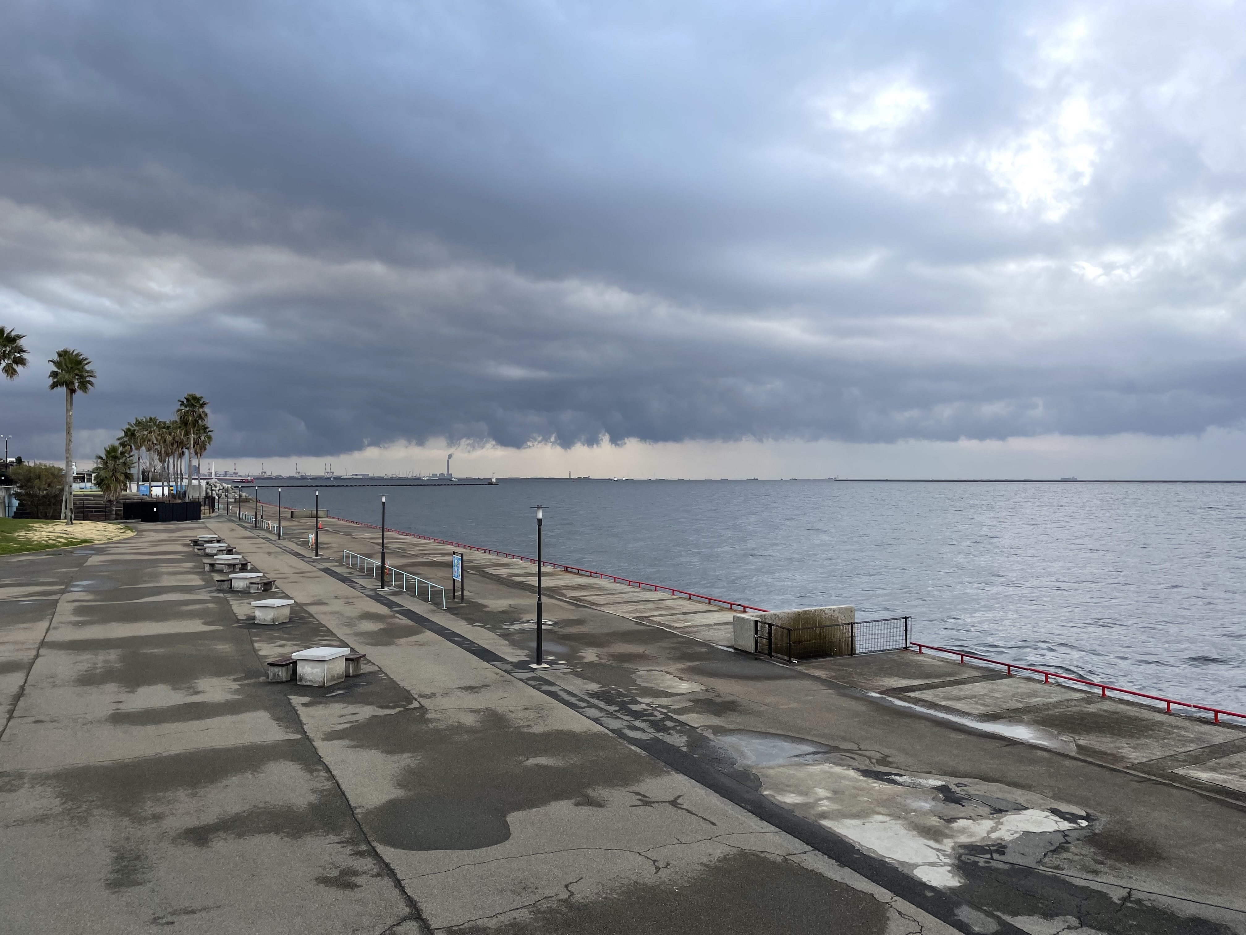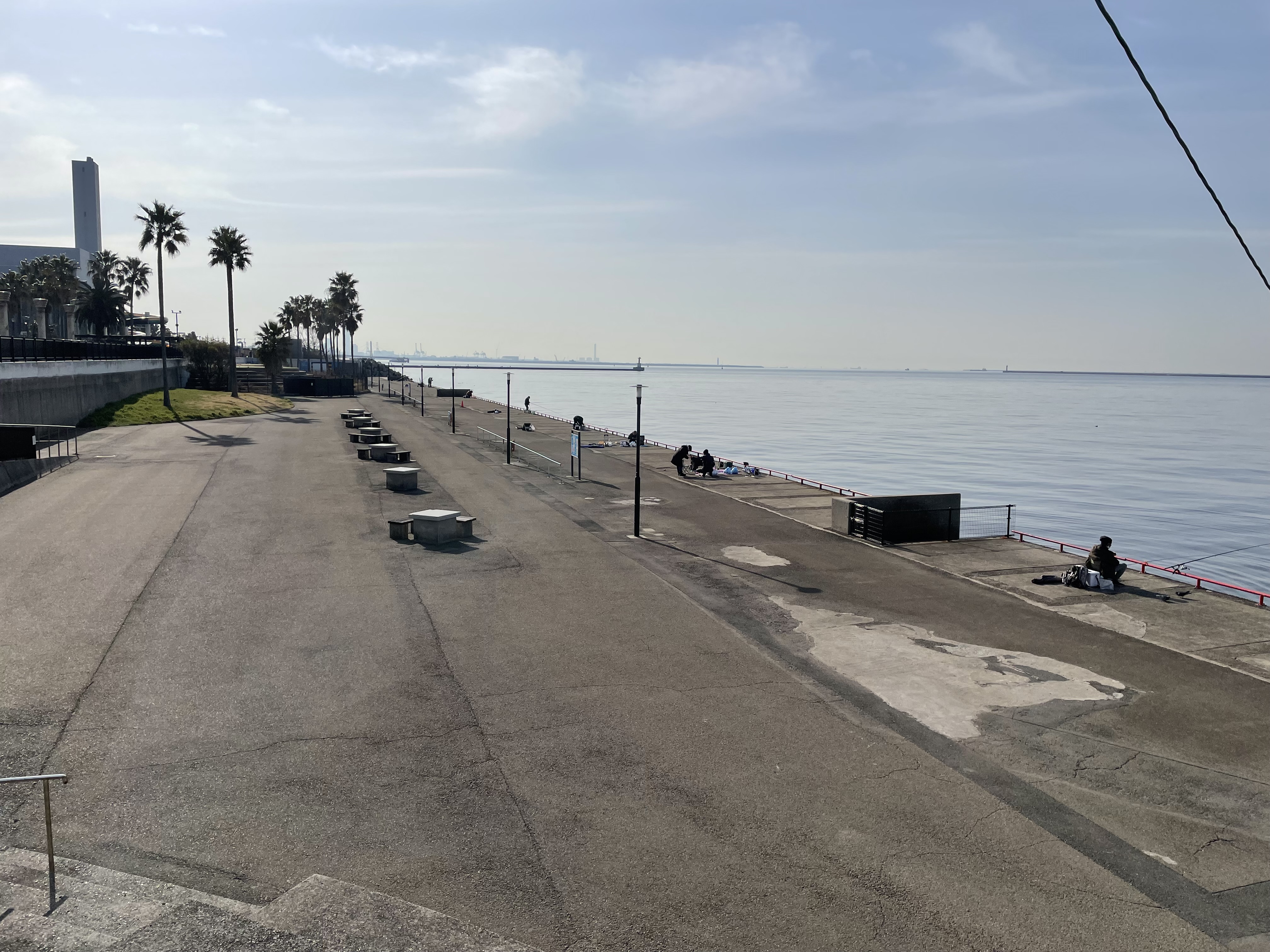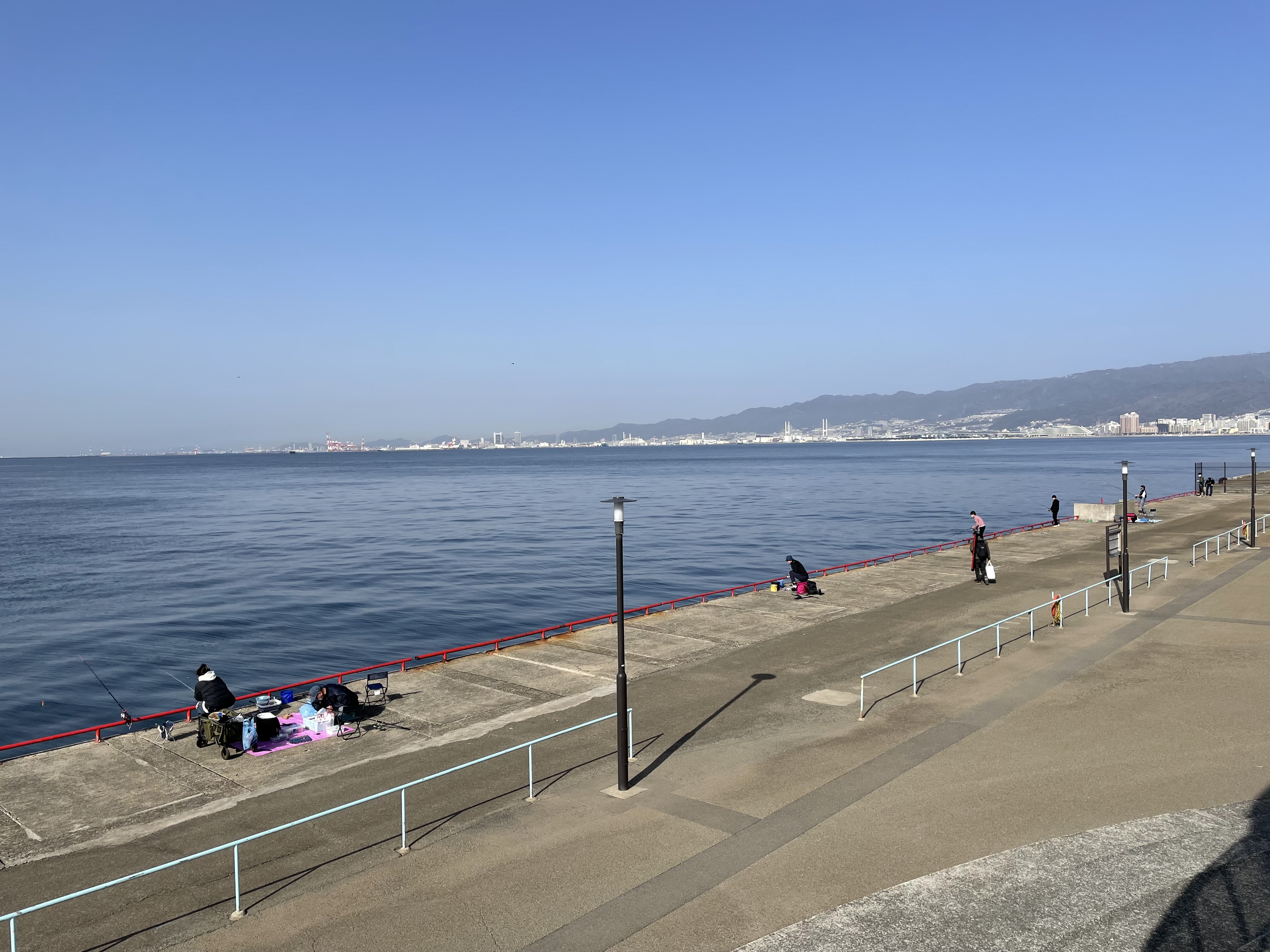只今、18時です。鳴尾浜は、風速南西5m/s、気温7℃となっています。誰もいない海です。見学のお客様が多く、今日は釣果はありません。
