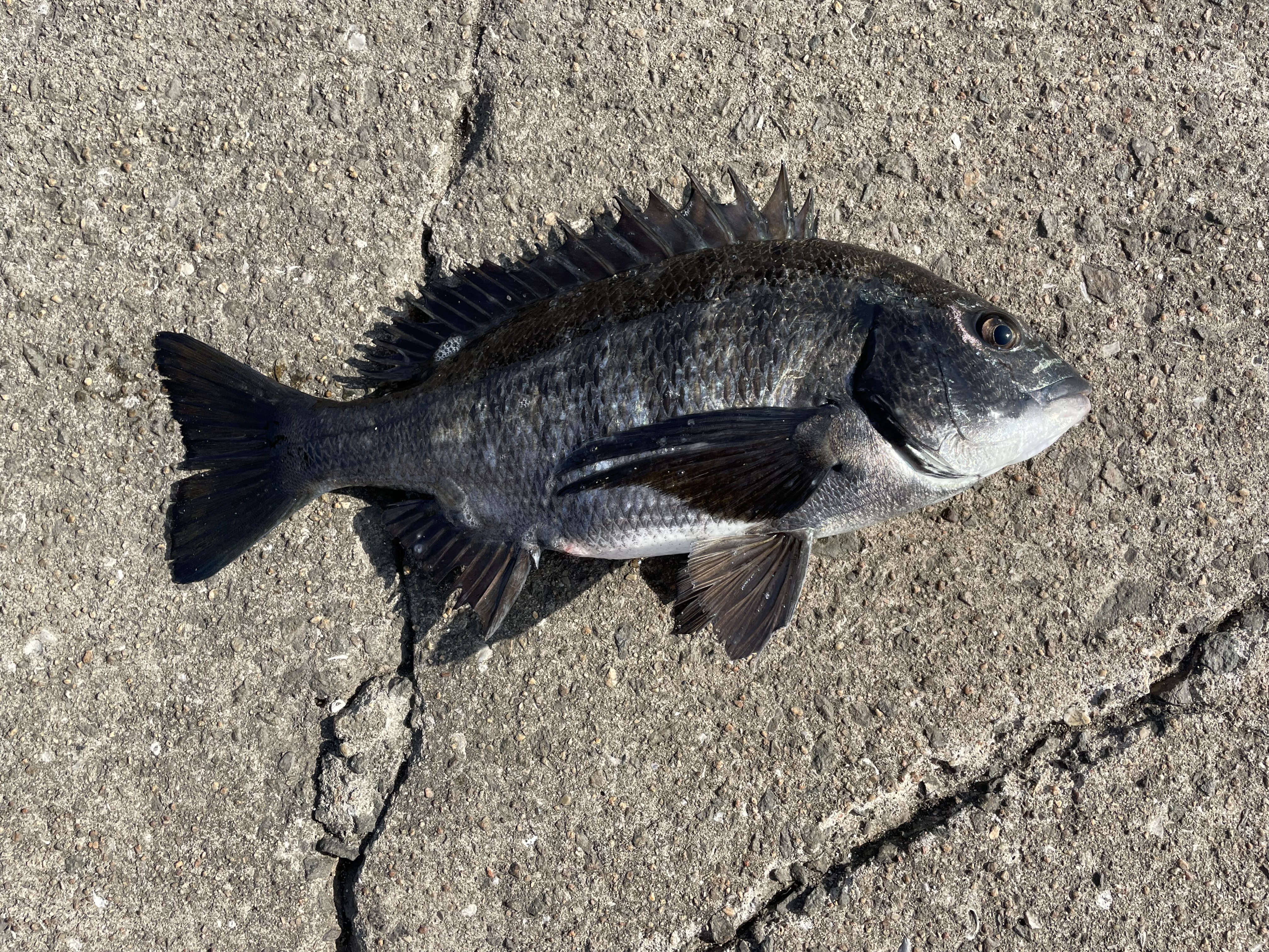 釣果の方は9時頃、フカセ釣りの刺し餌がオキアミで46cmのチヌの釣果があがりました。