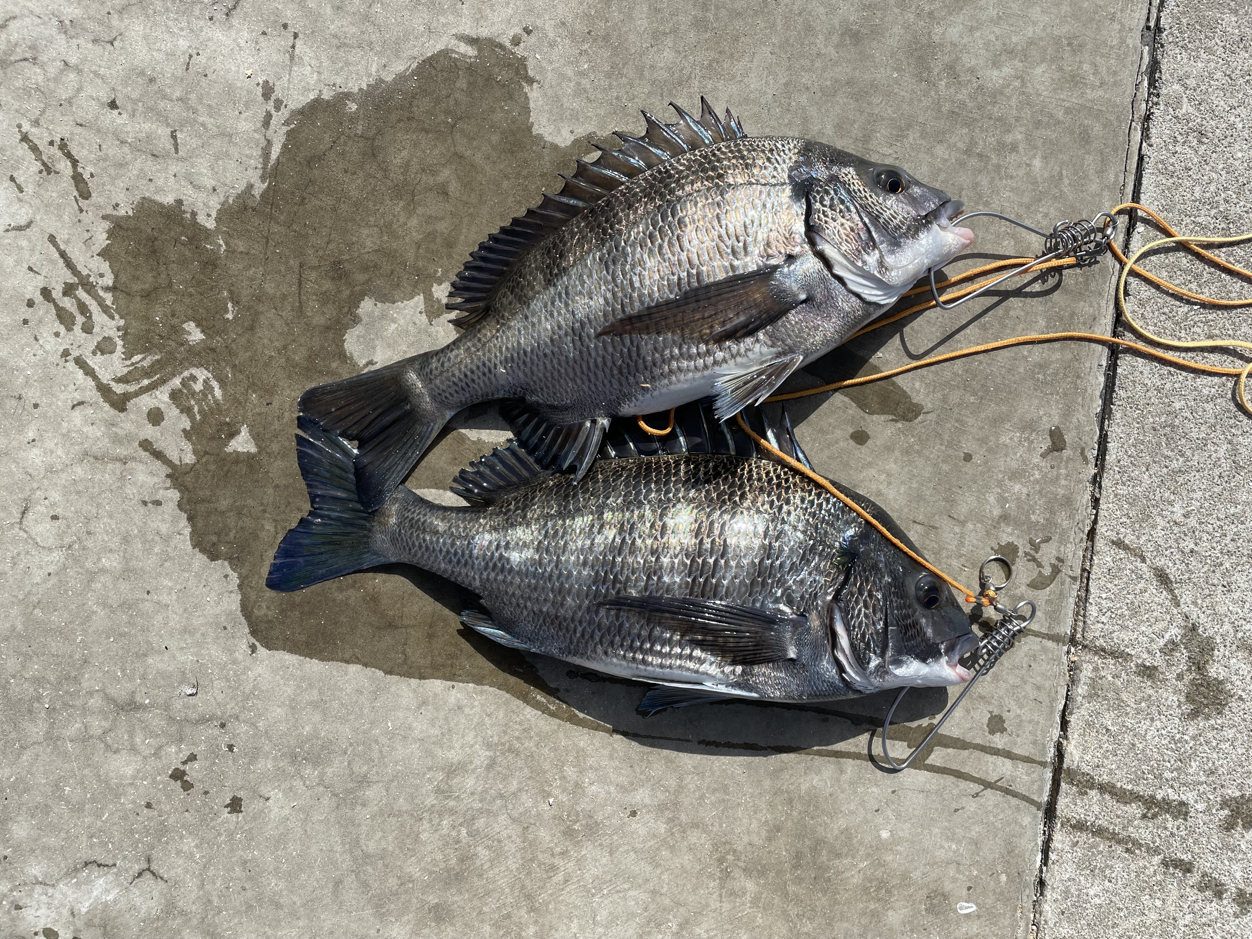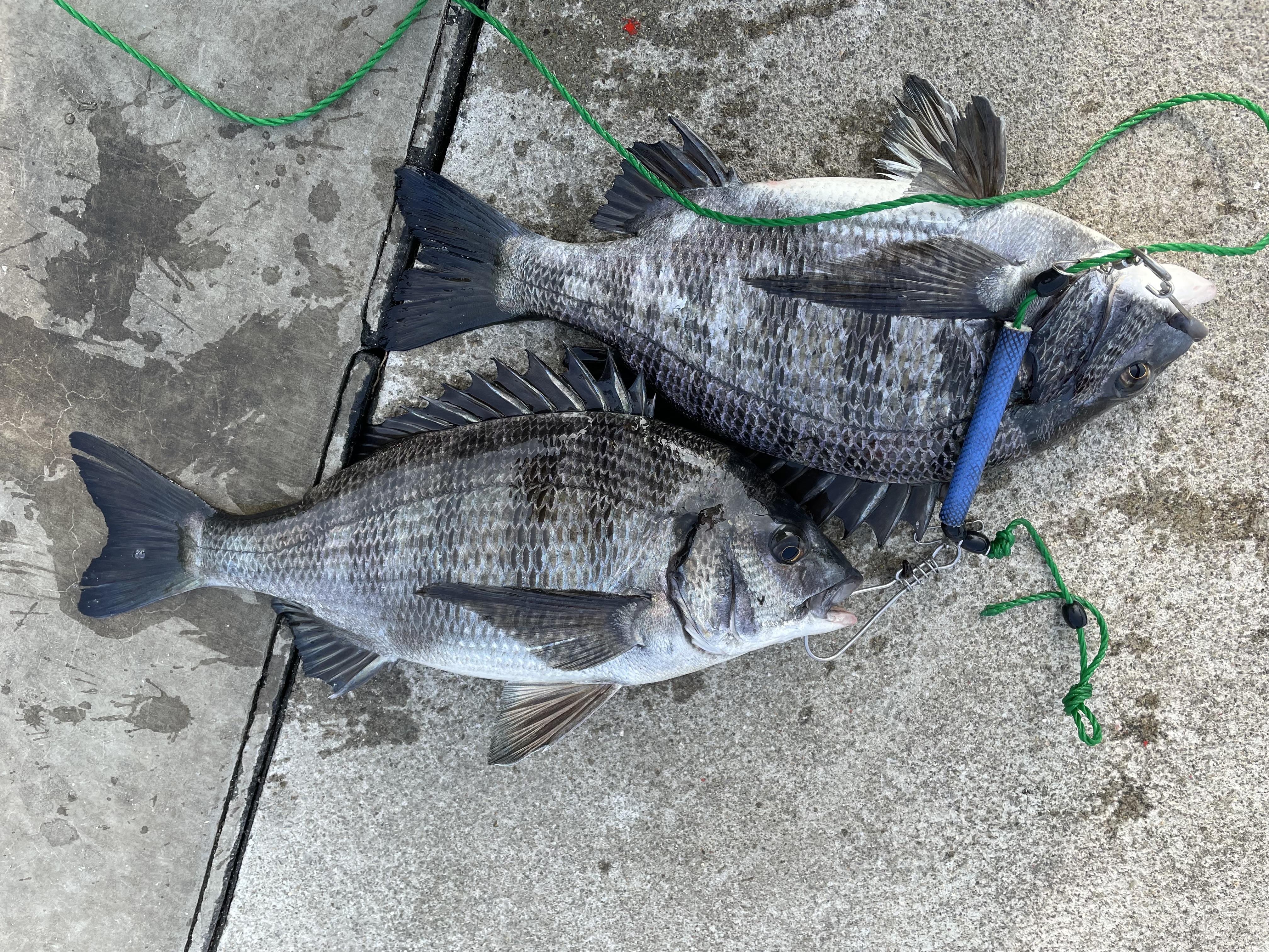 午前中は、結果エビ撒き釣りで45cm,43cm,42cm40cmと計4枚のチヌがあがりました。フカセ釣りでも狙われていたのですが、こちらの方は厳しい結果となりました。日によってはフカセ釣りの方が釣果が良かったりもするため、難しい選択になりますね。