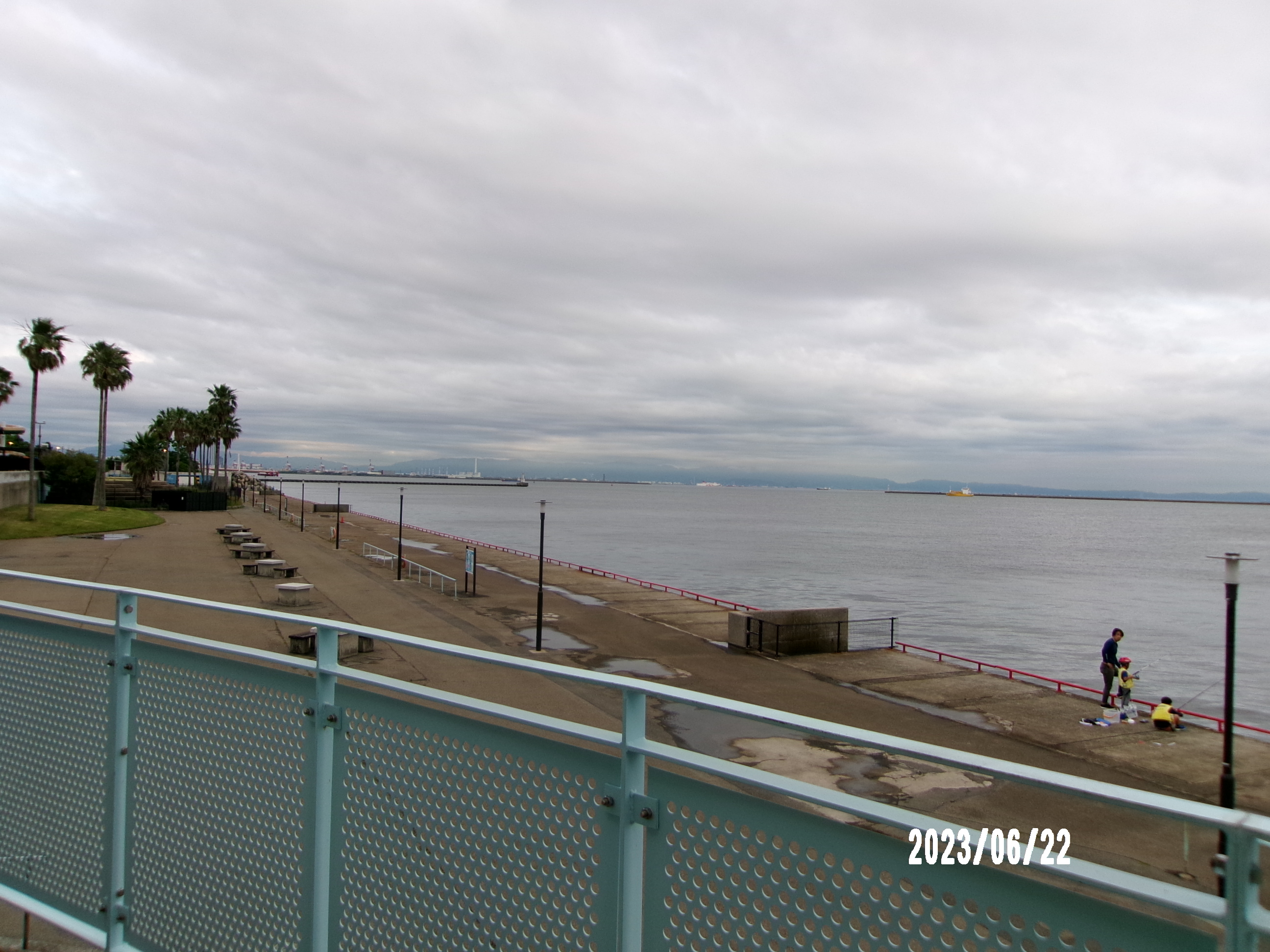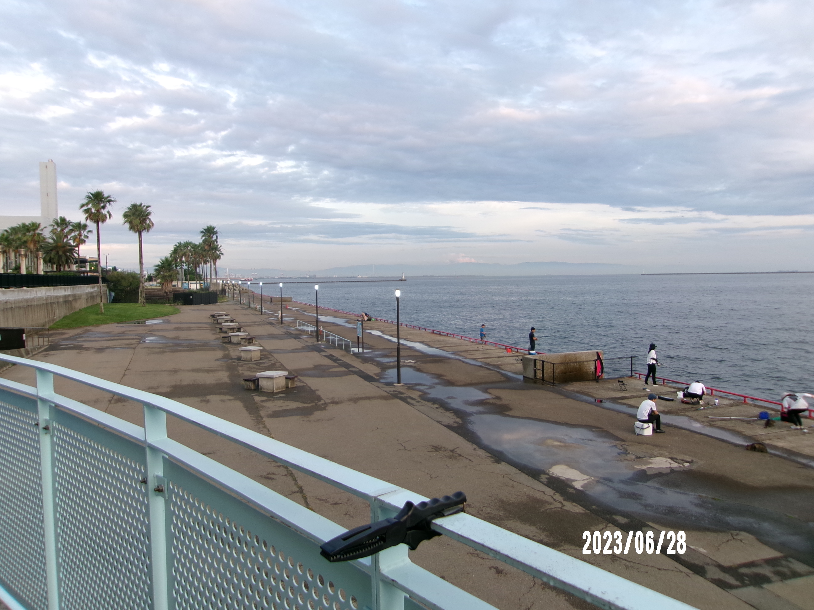 19時、雨も止んで「今から再開や」と言わんばかりに皆さん釣りを楽しんでおられます。今鳴尾浜は、風速、4m/s西で、気温25℃です。サッパが釣れました。5匹釣れました。