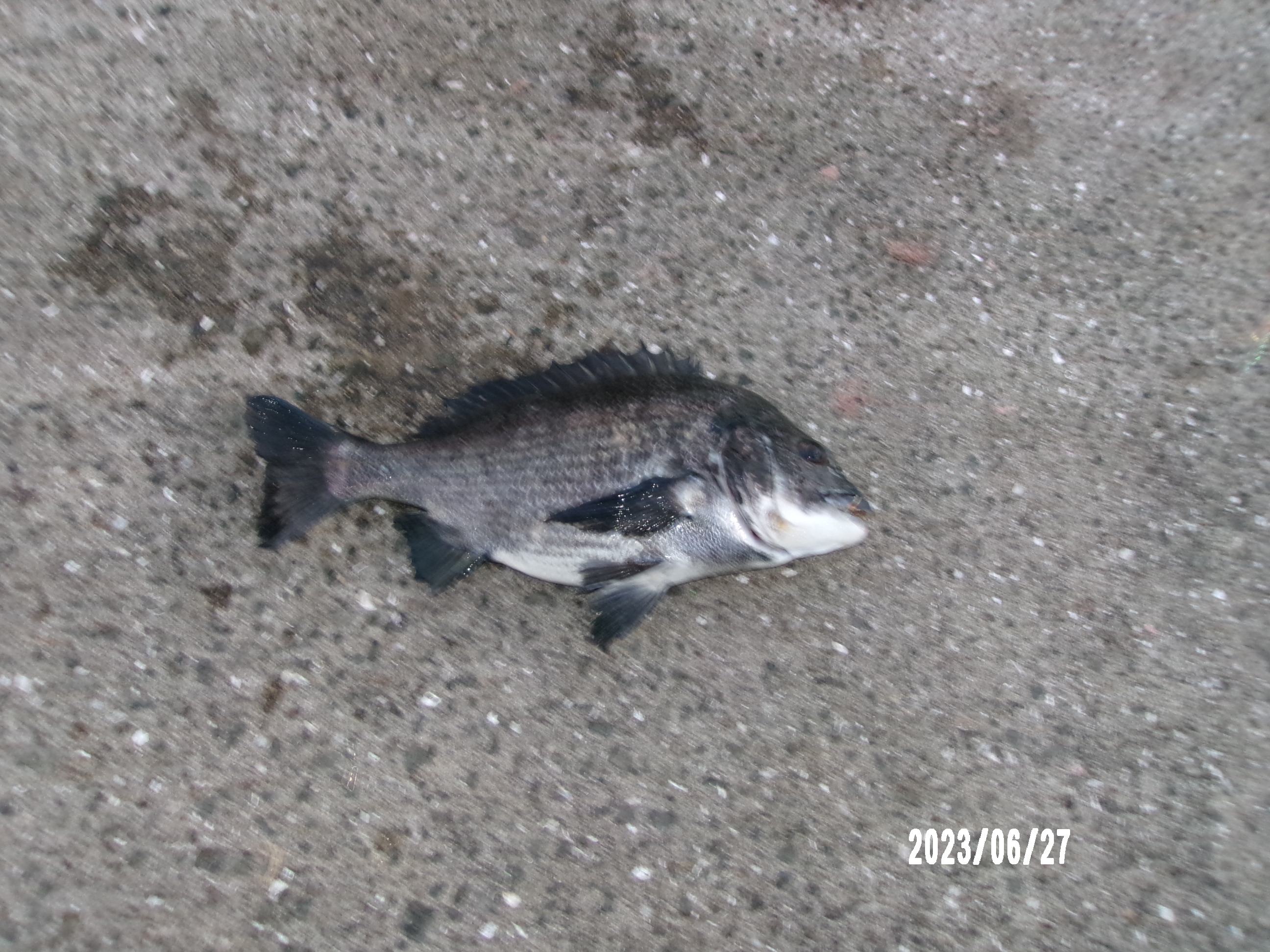 15時頃、雨が降る前に、東端でチヌが釣れました。40㎝と45㎝で餌はサナギとコーンです。キビレもいっしょの場所で釣れました。30㎝で餌は同じです。