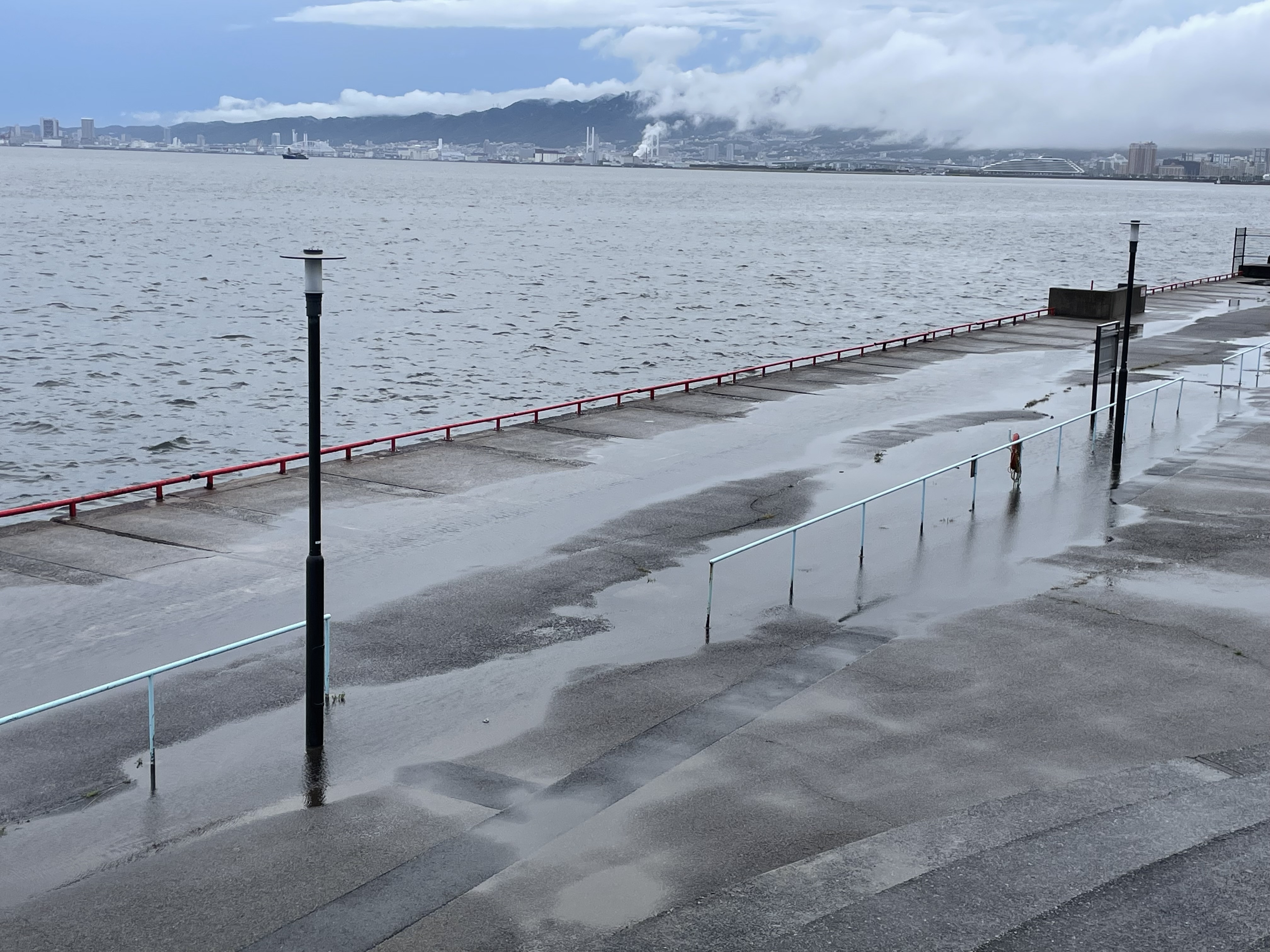 時々雨が降りお客様も少ない鳴尾浜です。10時前から風が強くなって来て、波も高くなり初めました。