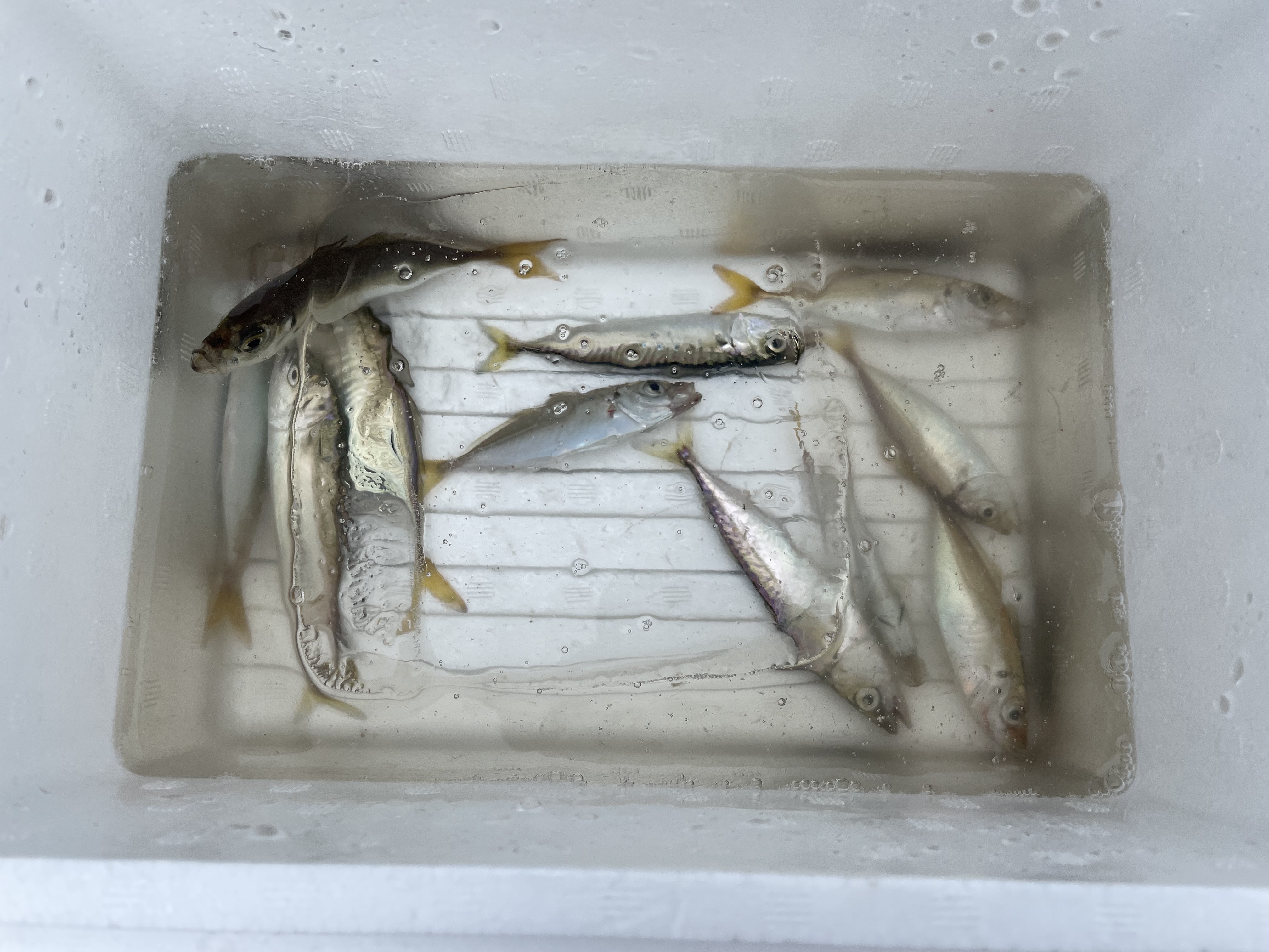 サビキ釣りではアジとサバが釣れています。やっと調子が上がってきたようです。サイズは小さいのですが、やっぱり釣れると嬉しいですね。