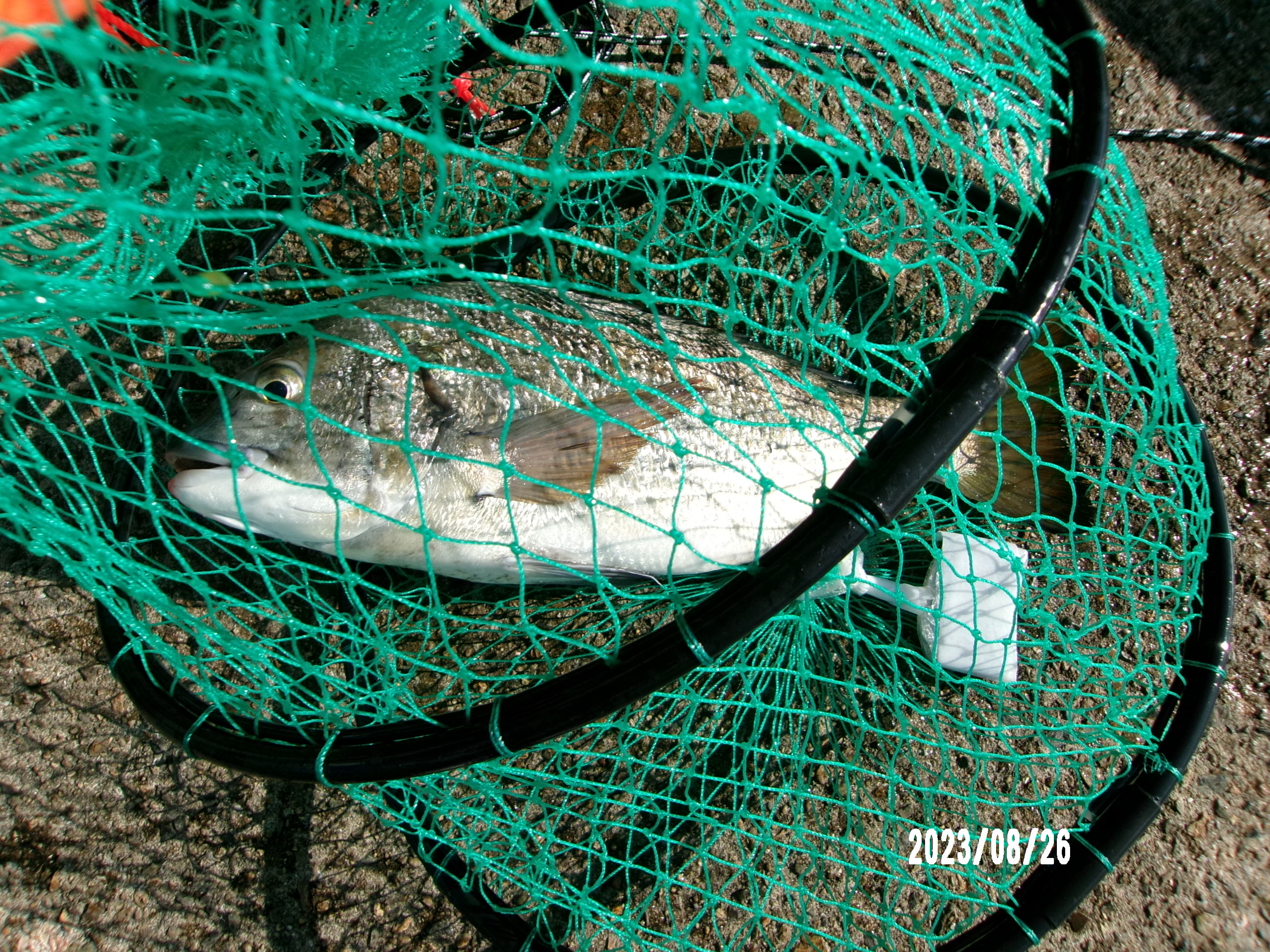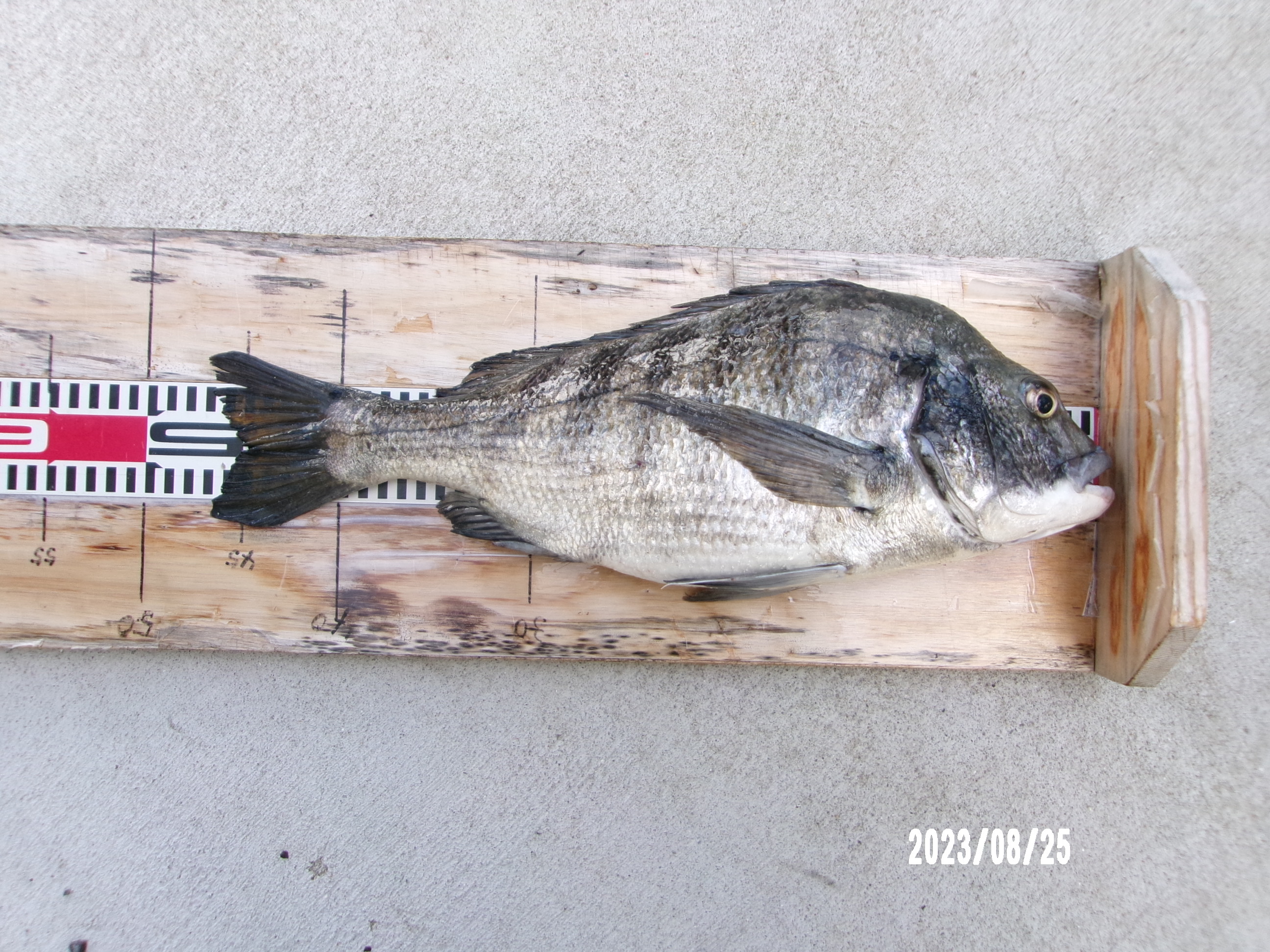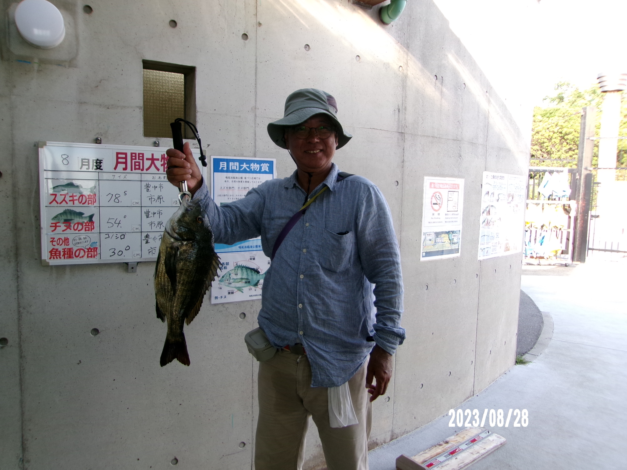 17時、チヌが上がりました。50㎝で、ウキ釣りで、餌は、青イソメだそうです。 -