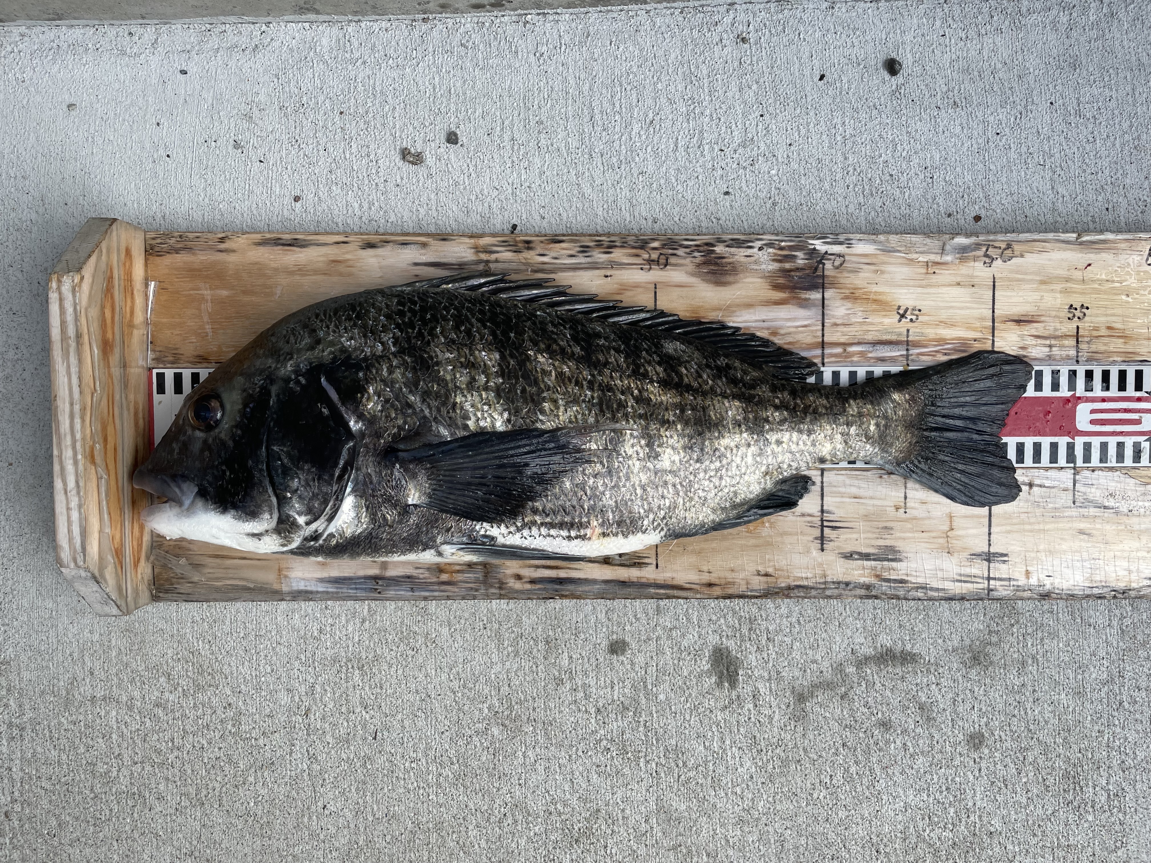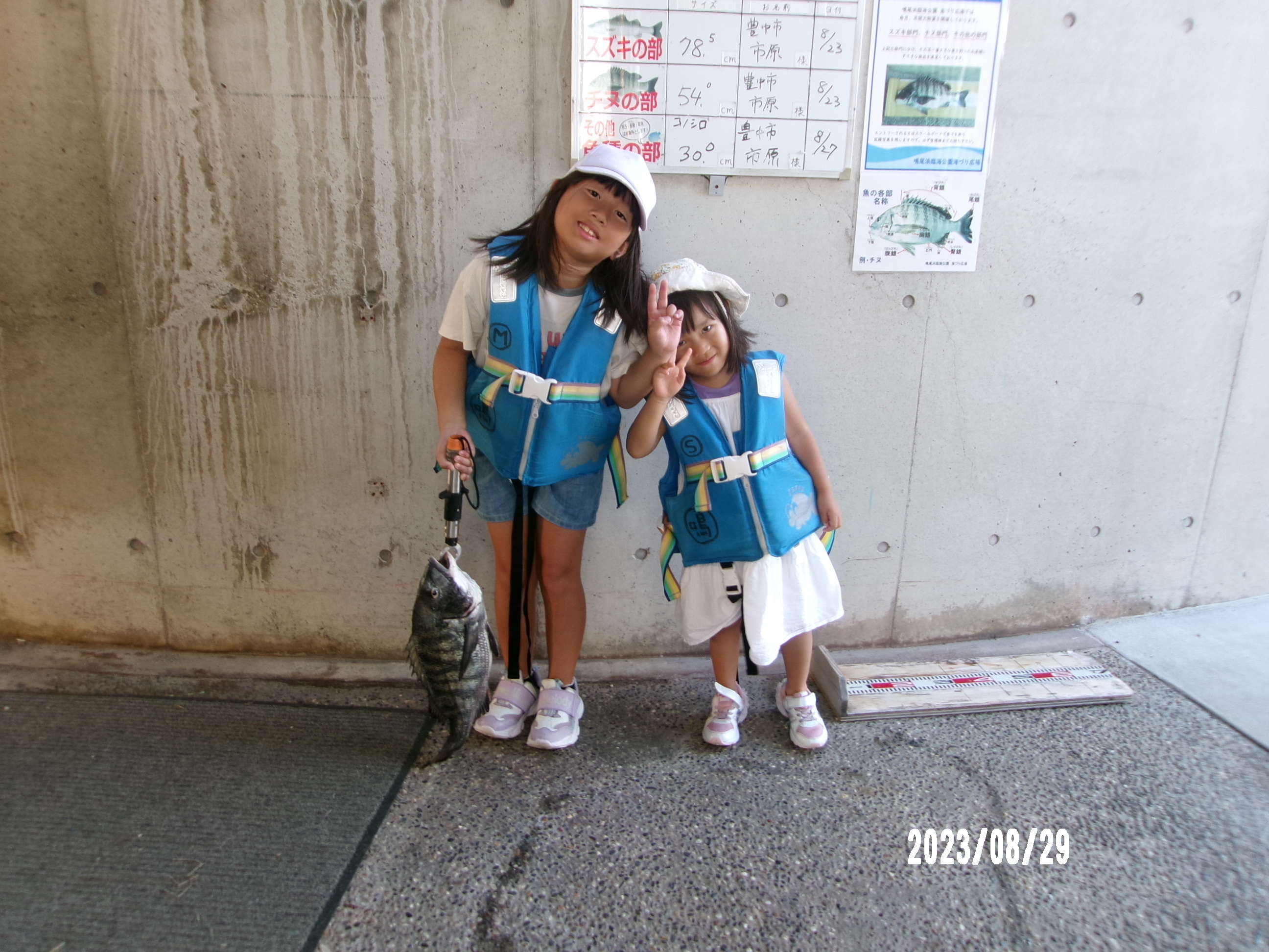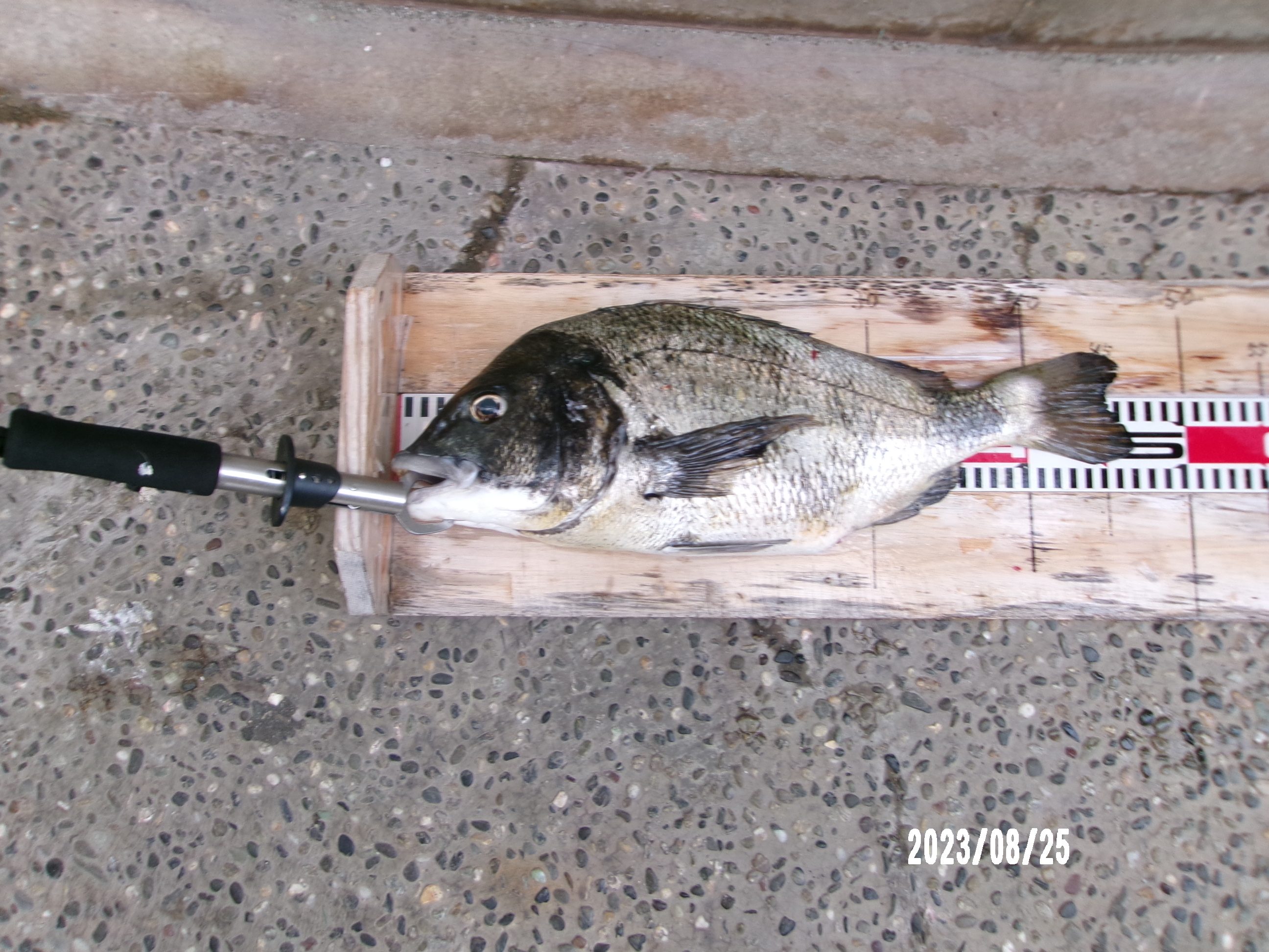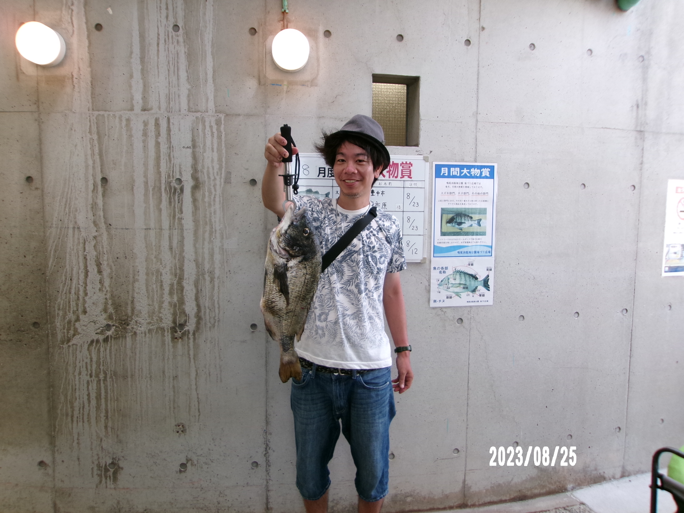 17時、チヌが上がりました。50㎝で、ウキ釣りで、餌は、青イソメだそうです。 -