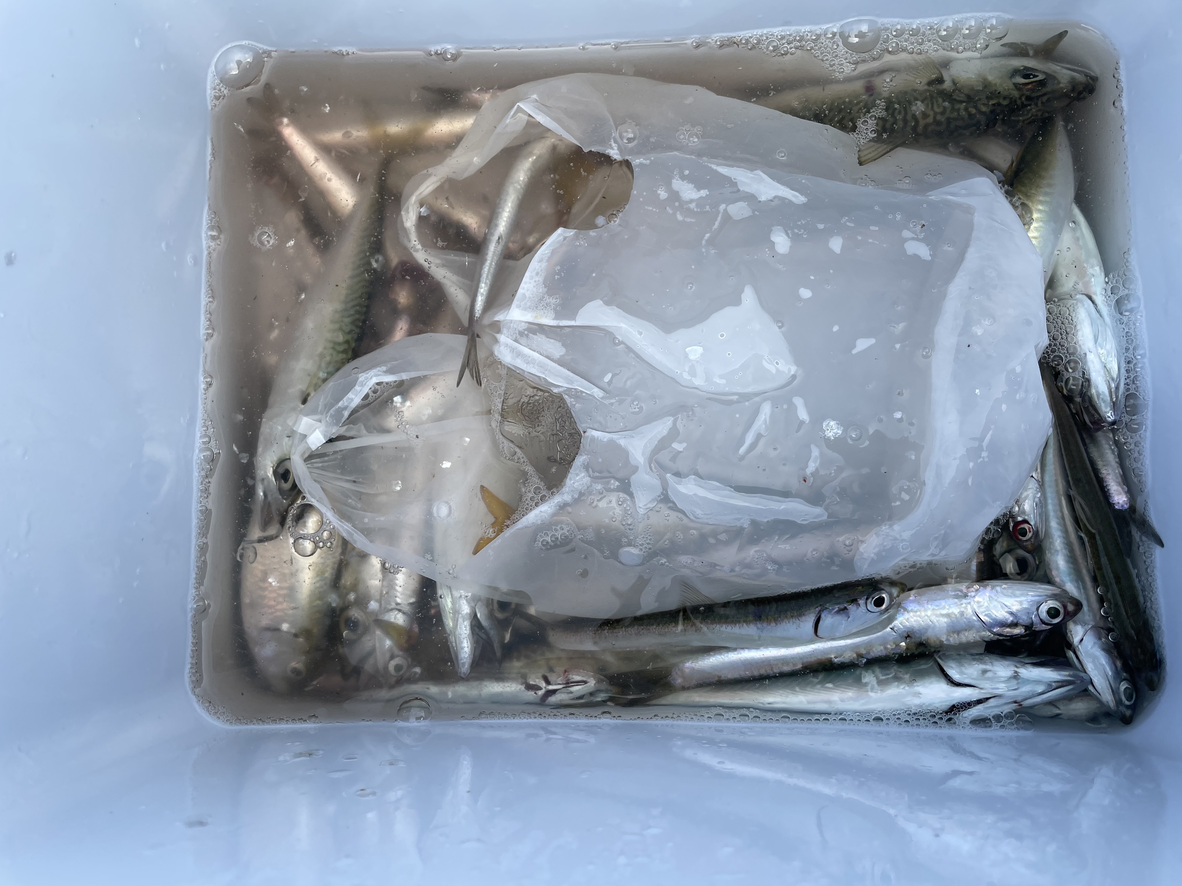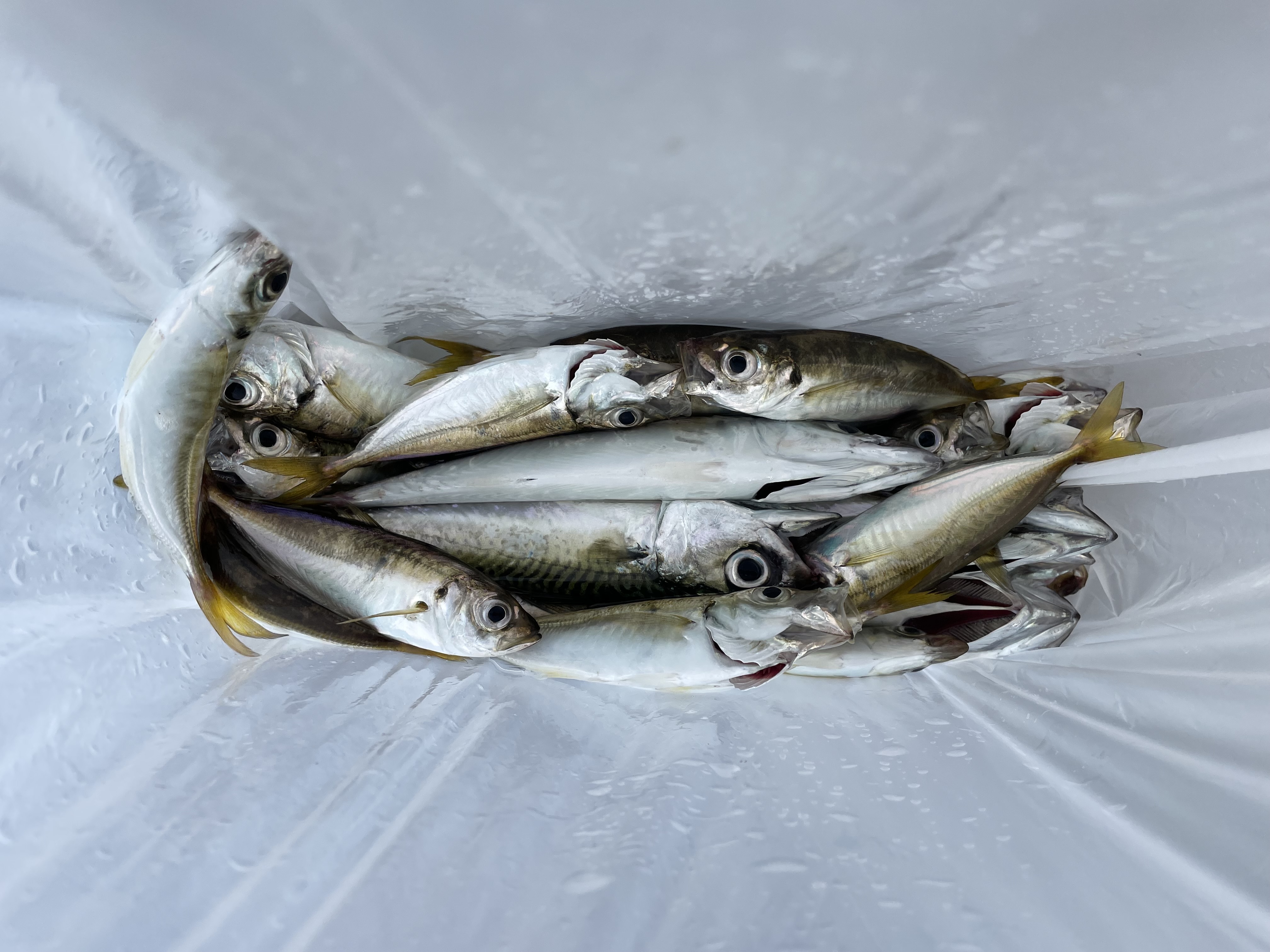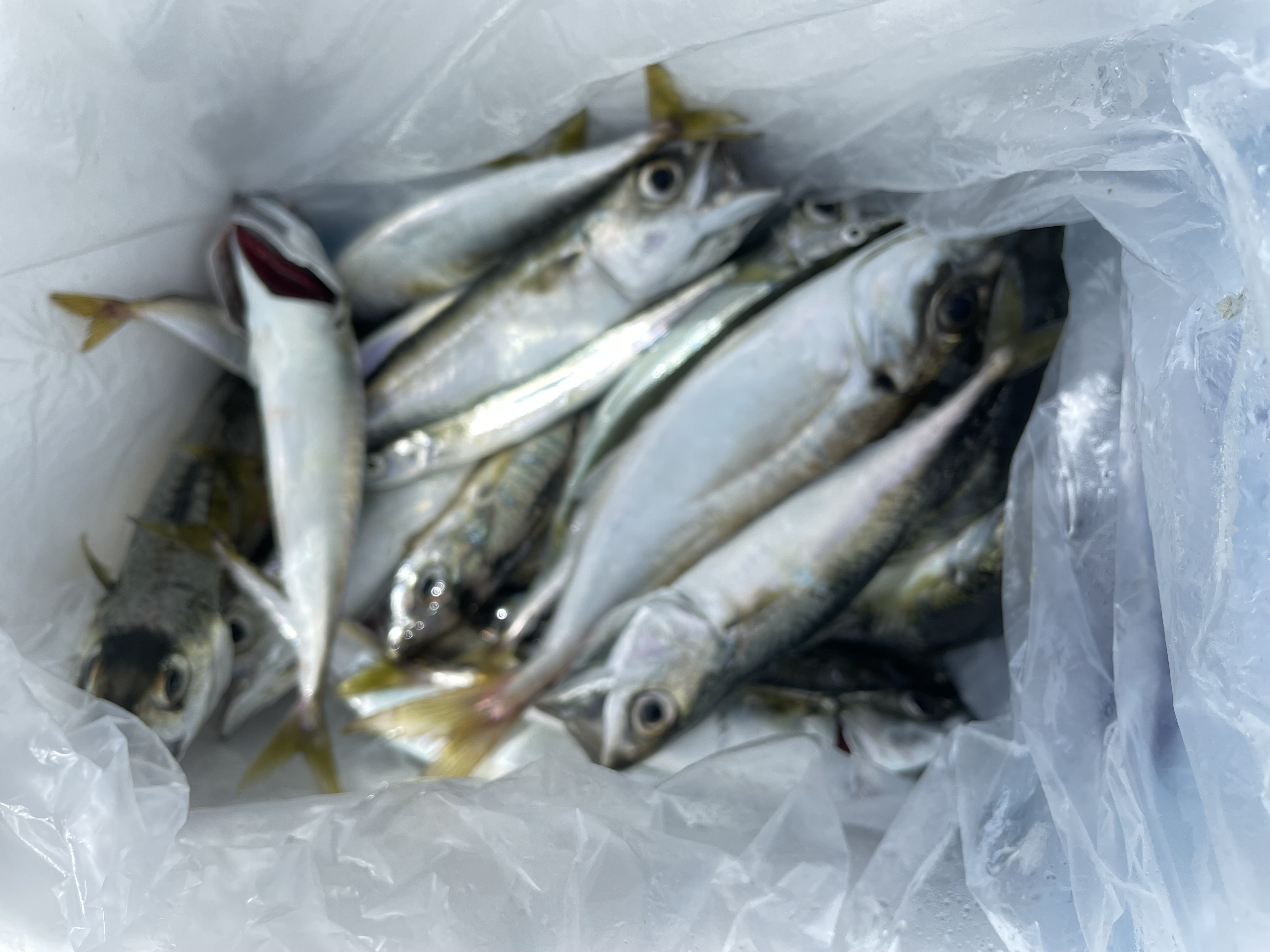 ただ、サイズが以前より少し小さくなったのか20cm越えの姿は見当たらず、小アジサイズをお一人30匹ほど釣っておられました。