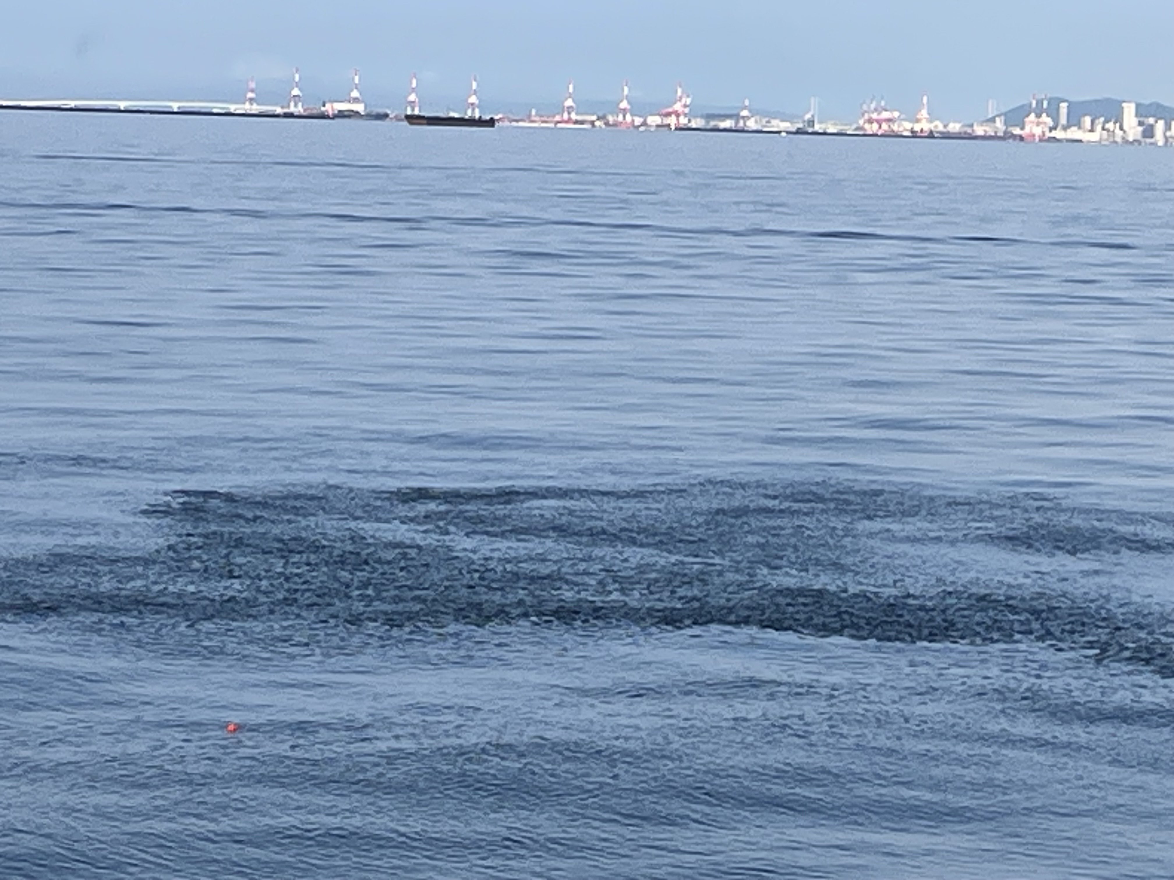 今日はサッパの群れが岸壁に沿ってたくさん回遊しているのが見えます。釣果も良く、サッパが一番多いという方も多くおられます。サッパは、酢漬けにしたママカリや天ぷら等で美味しく食べられる魚なので、嬉しいお土産になりますね。