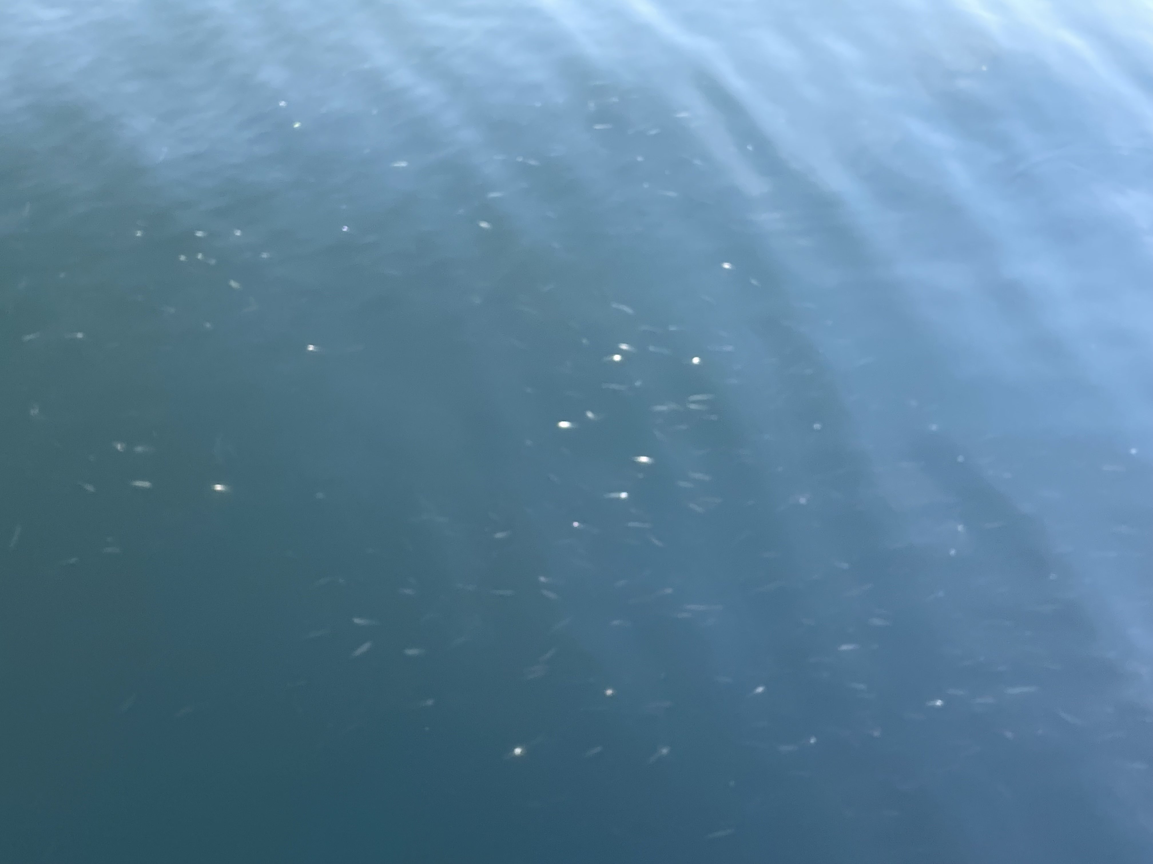 岸際で、カタクチイワシの群れ・ナブラが起こっていました。