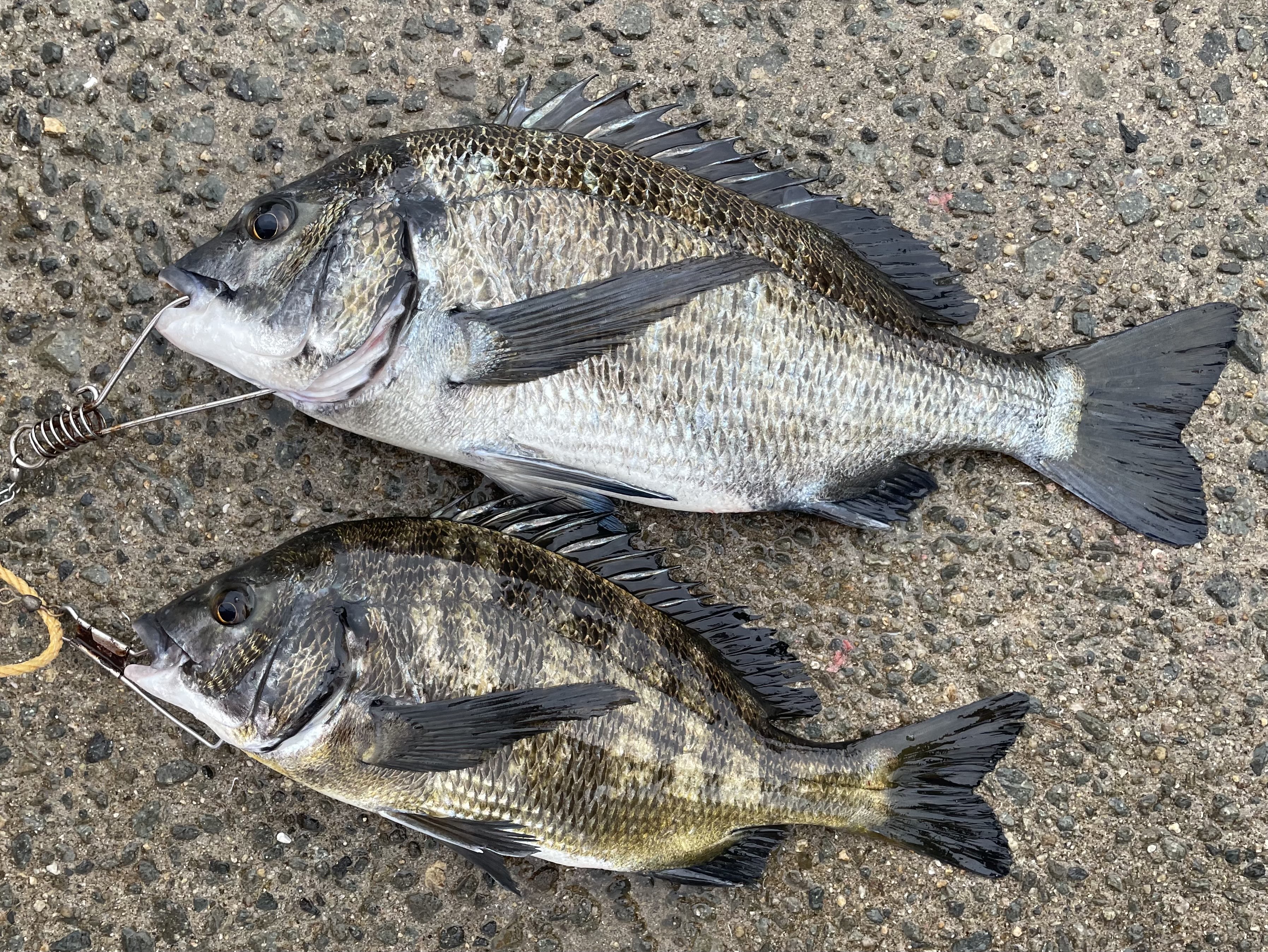 オキアミ餌のフカセやズボ釣りでチヌが釣れています。